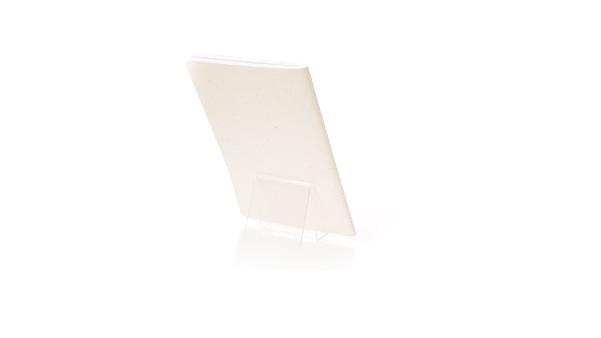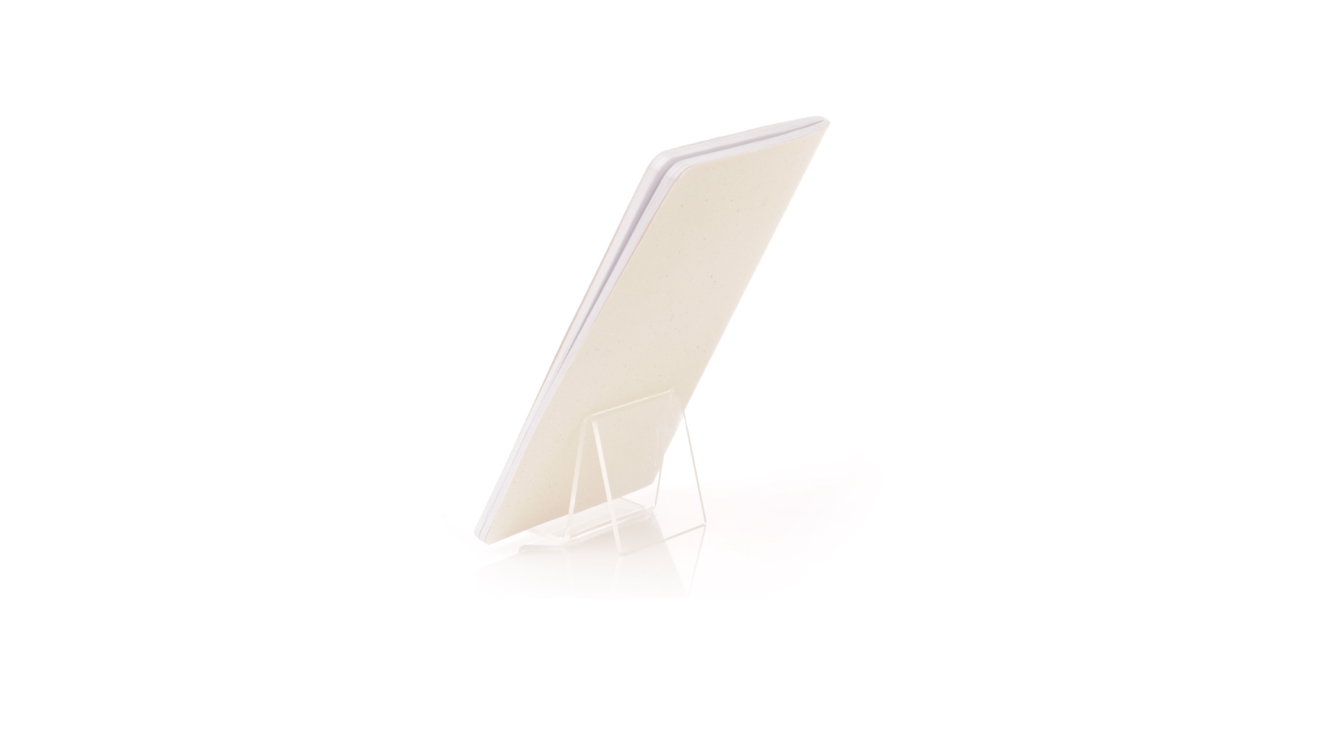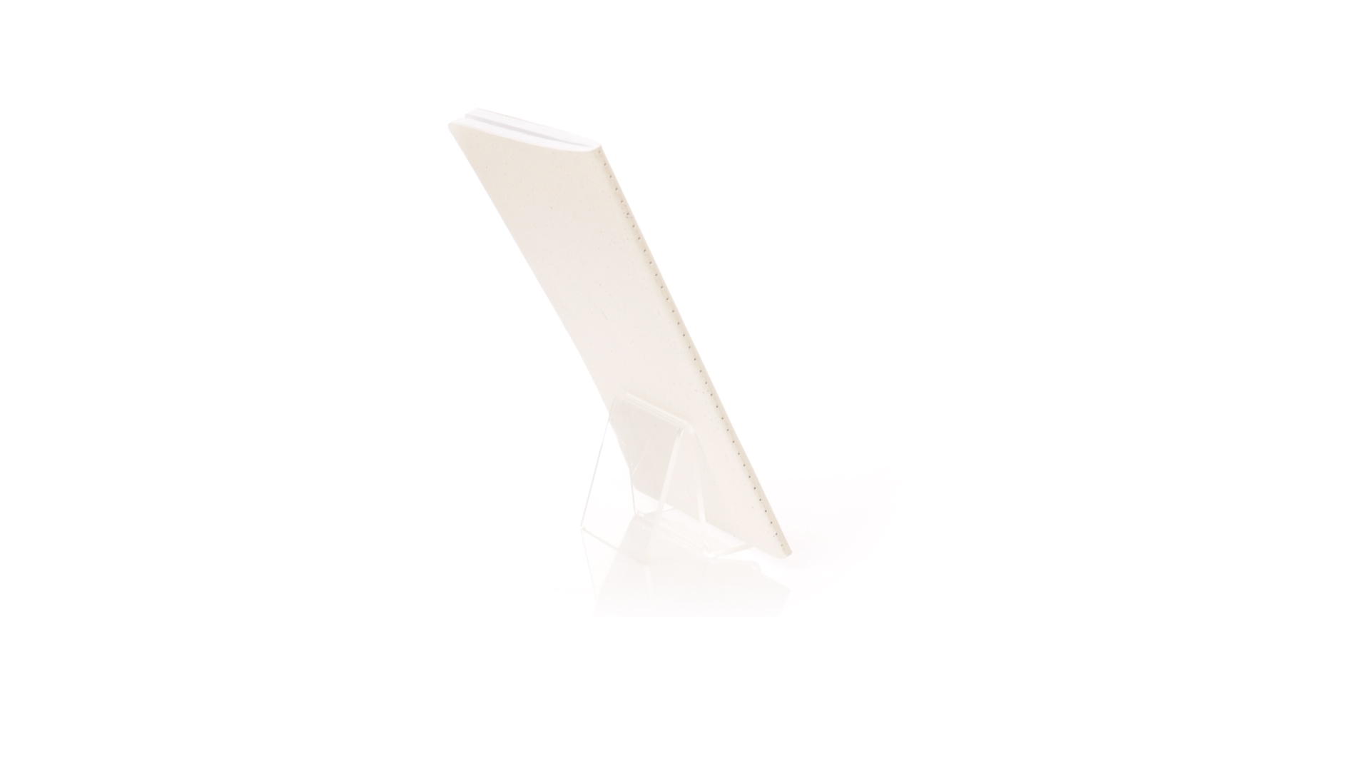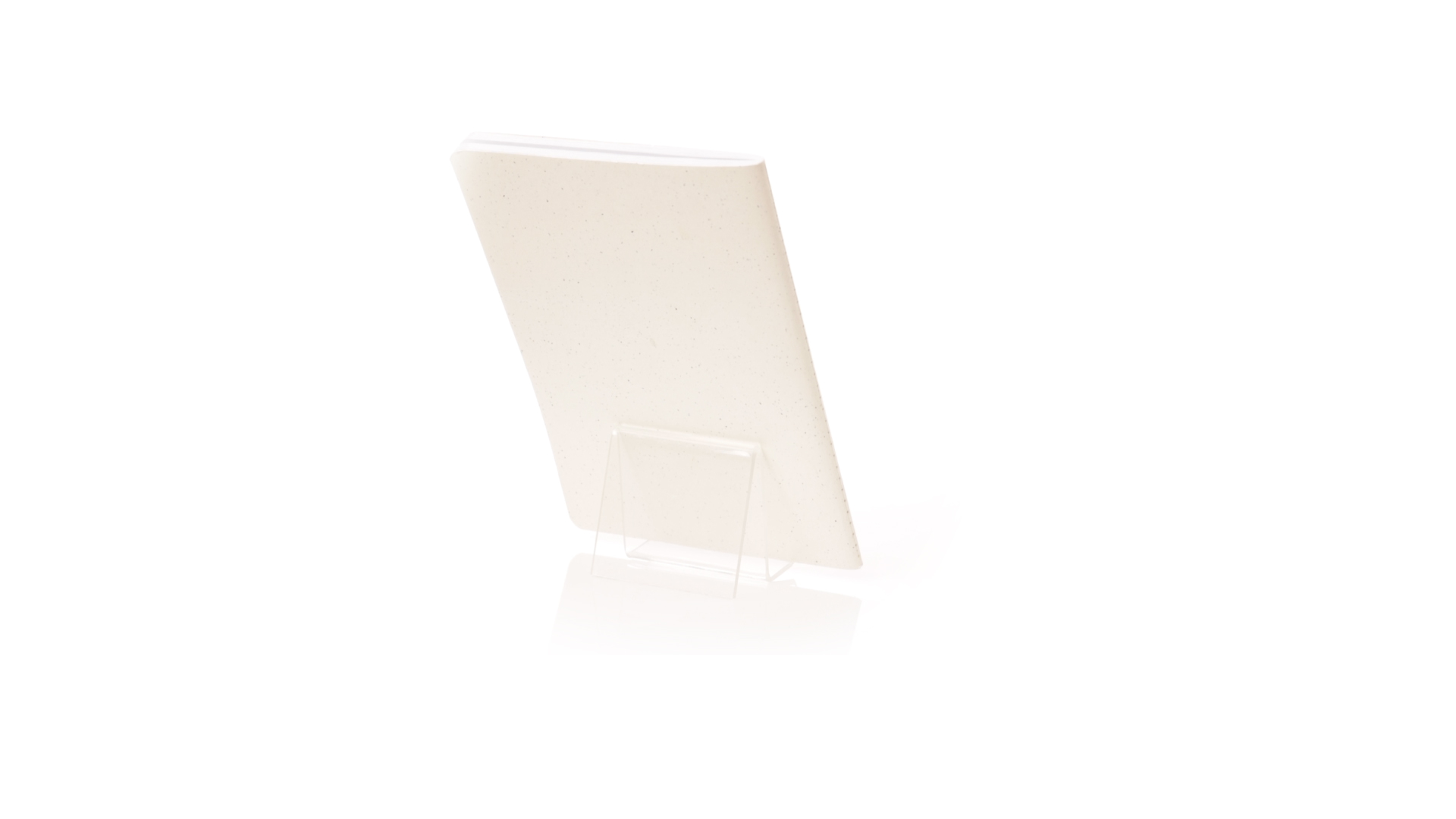 Notizbuch mit Einband aus recyceltem Karton und passender Heftung am Rücken. Innen mit 60 einfachen weissen Seiten. Präsentiert in einer individuellen, recycelten Tasche.