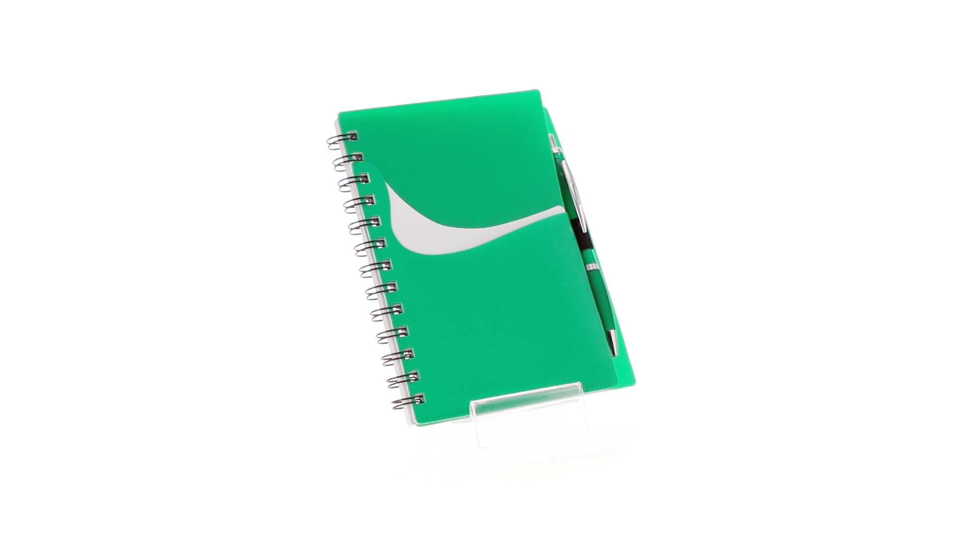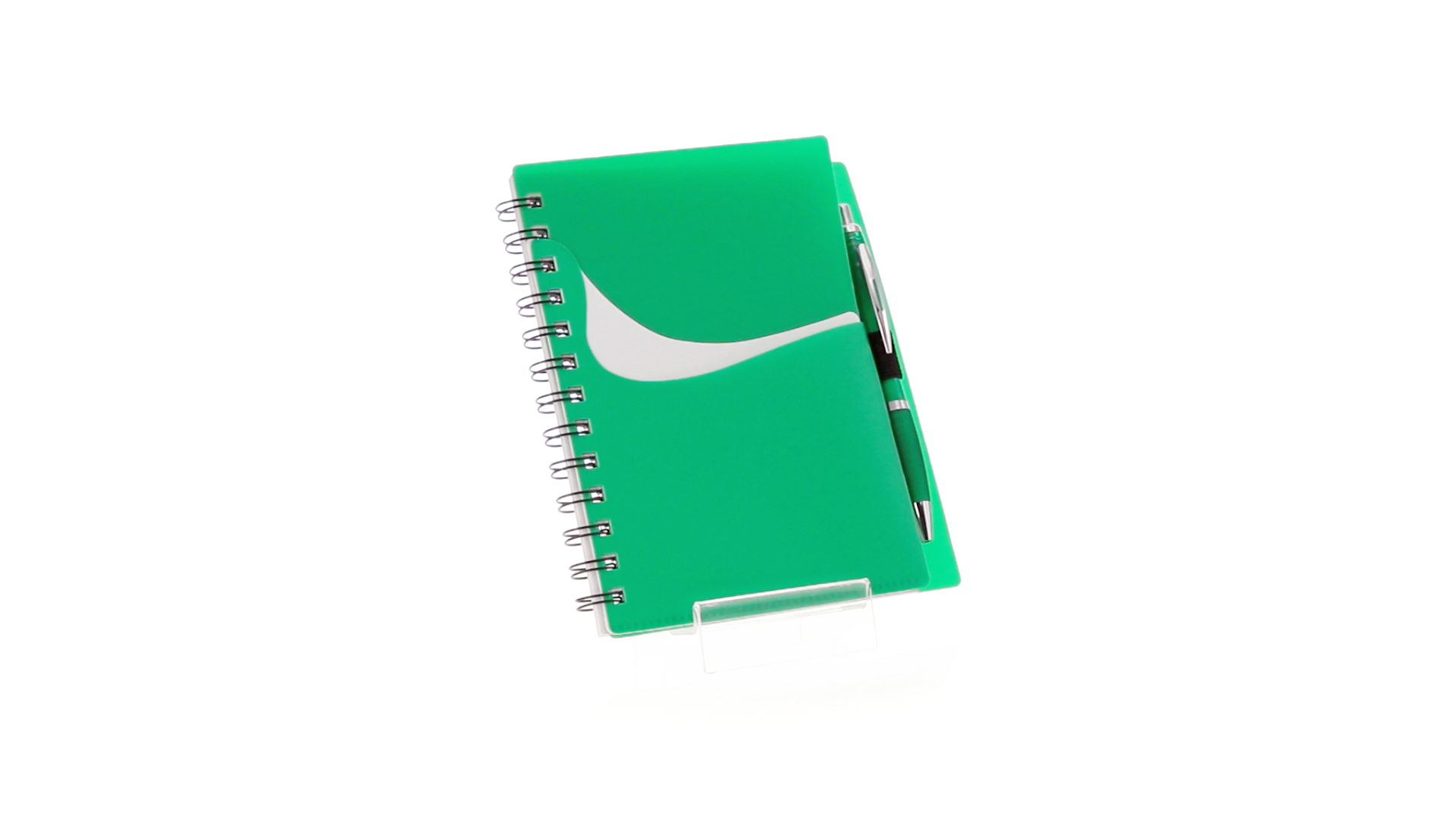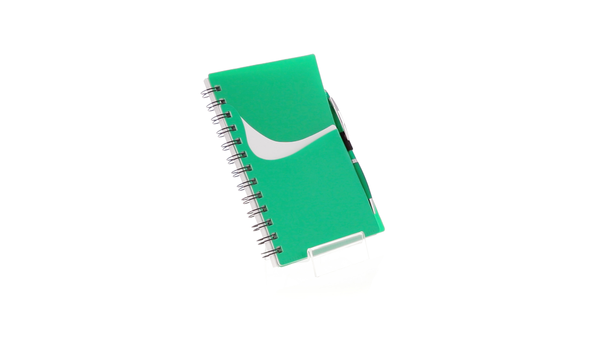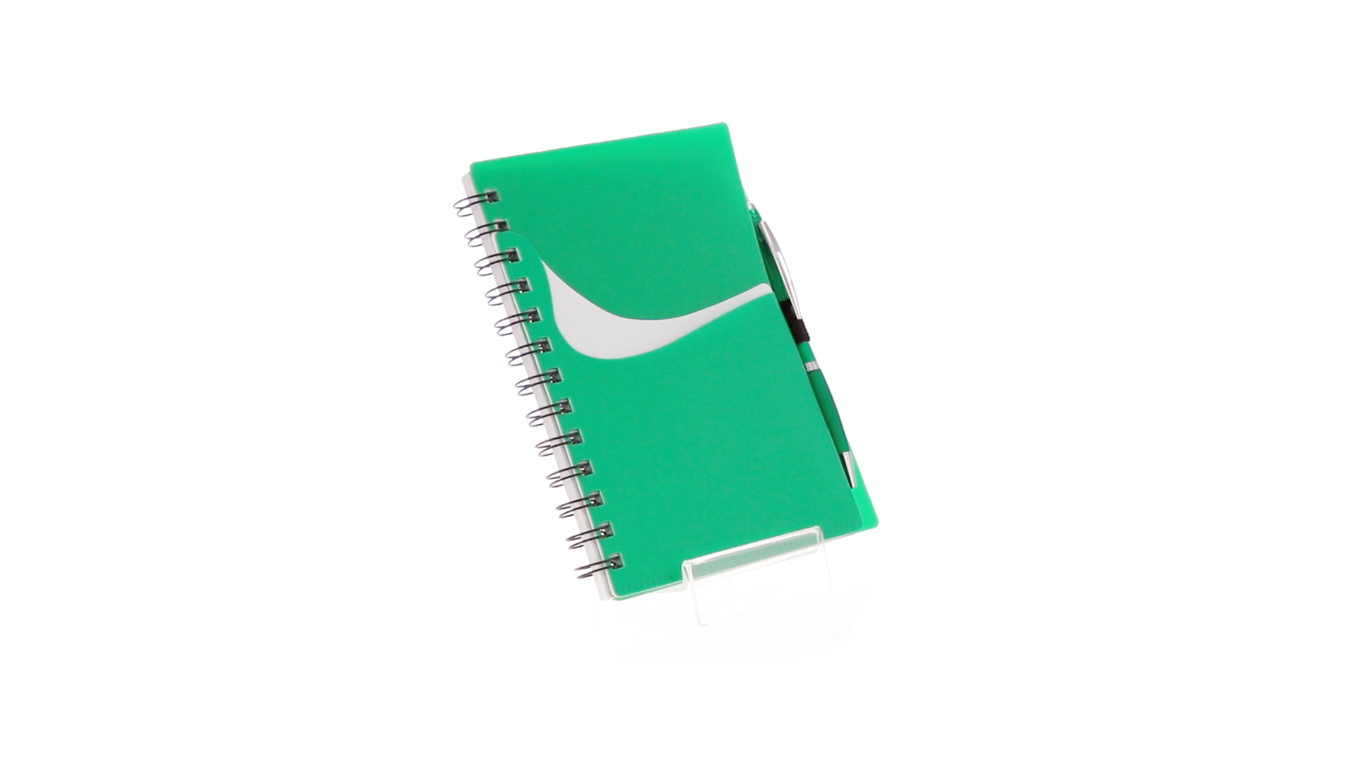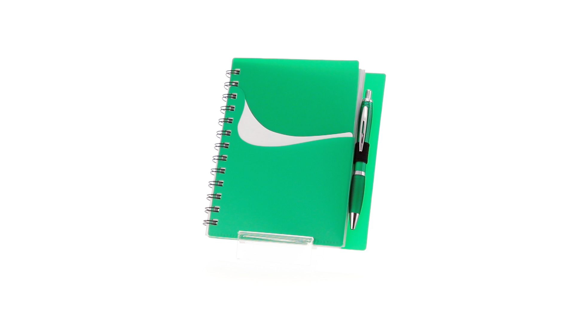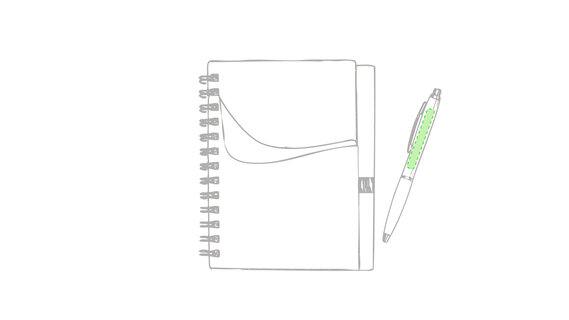 Ring-Notizbuch in originellen Farben mit farblich passendem Kugelschreiber mit Jumbo-Patrone. Mit 70 linierten Blättern, integrierter Tasche und Stifthalter auf dem Cover.