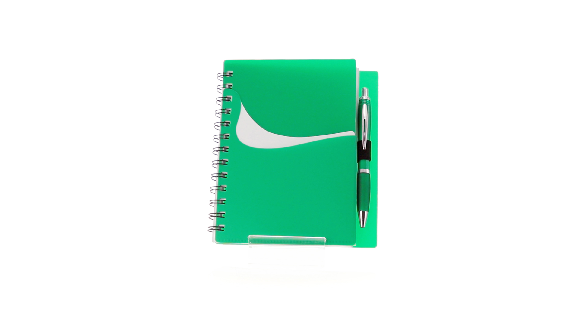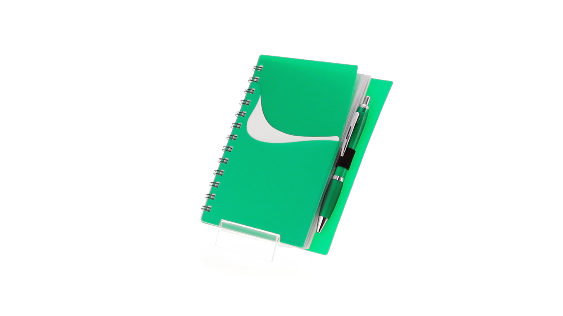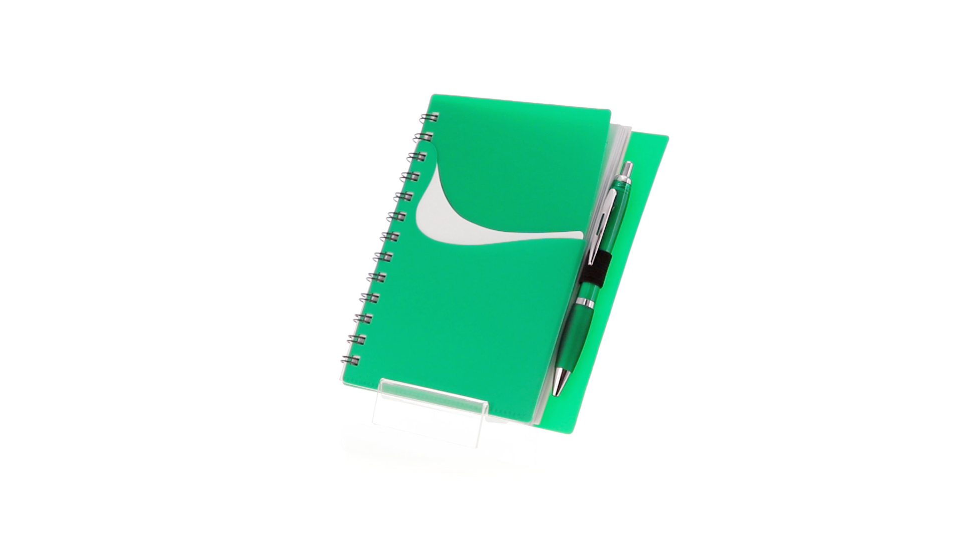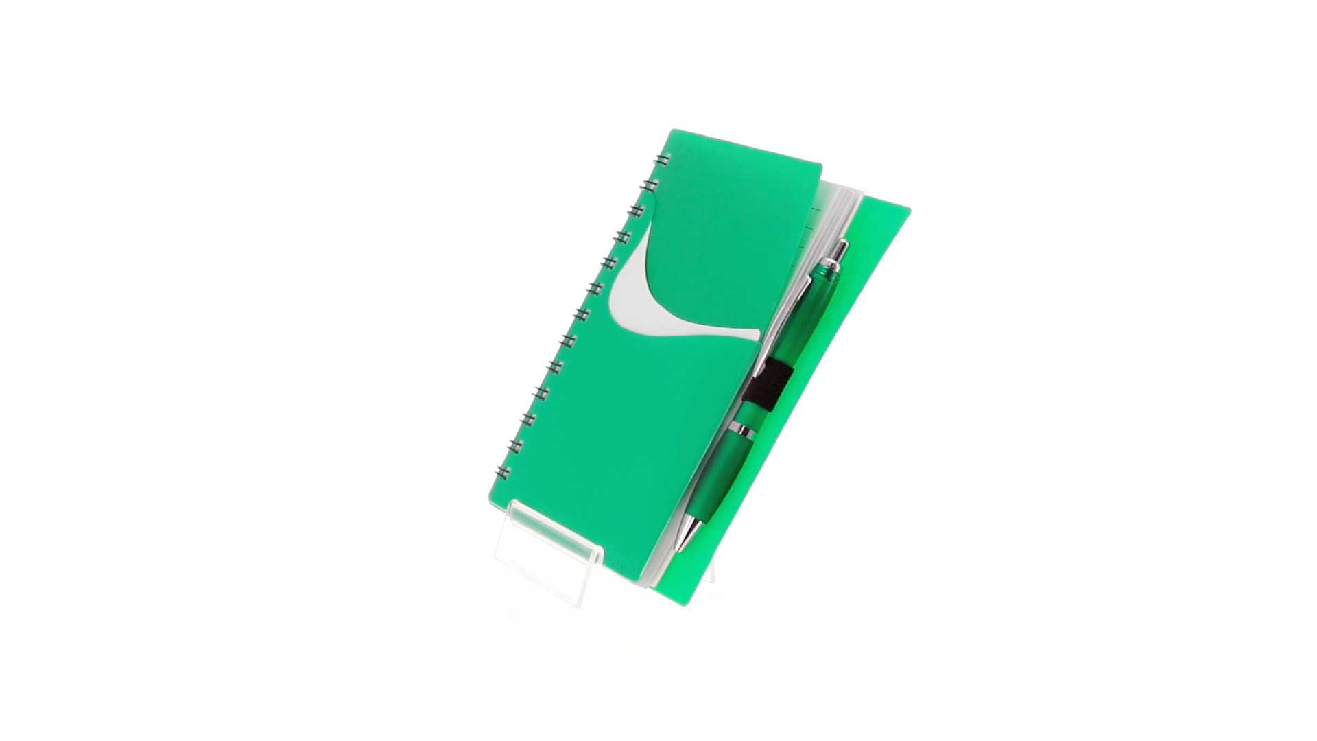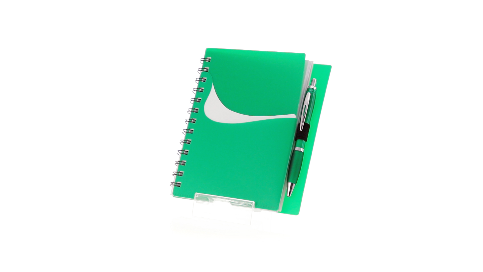 Ring-Notizbuch in originellen Farben mit farblich passendem Kugelschreiber mit Jumbo-Patrone. Mit 70 linierten Blättern, integrierter Tasche und Stifthalter auf dem Cover.