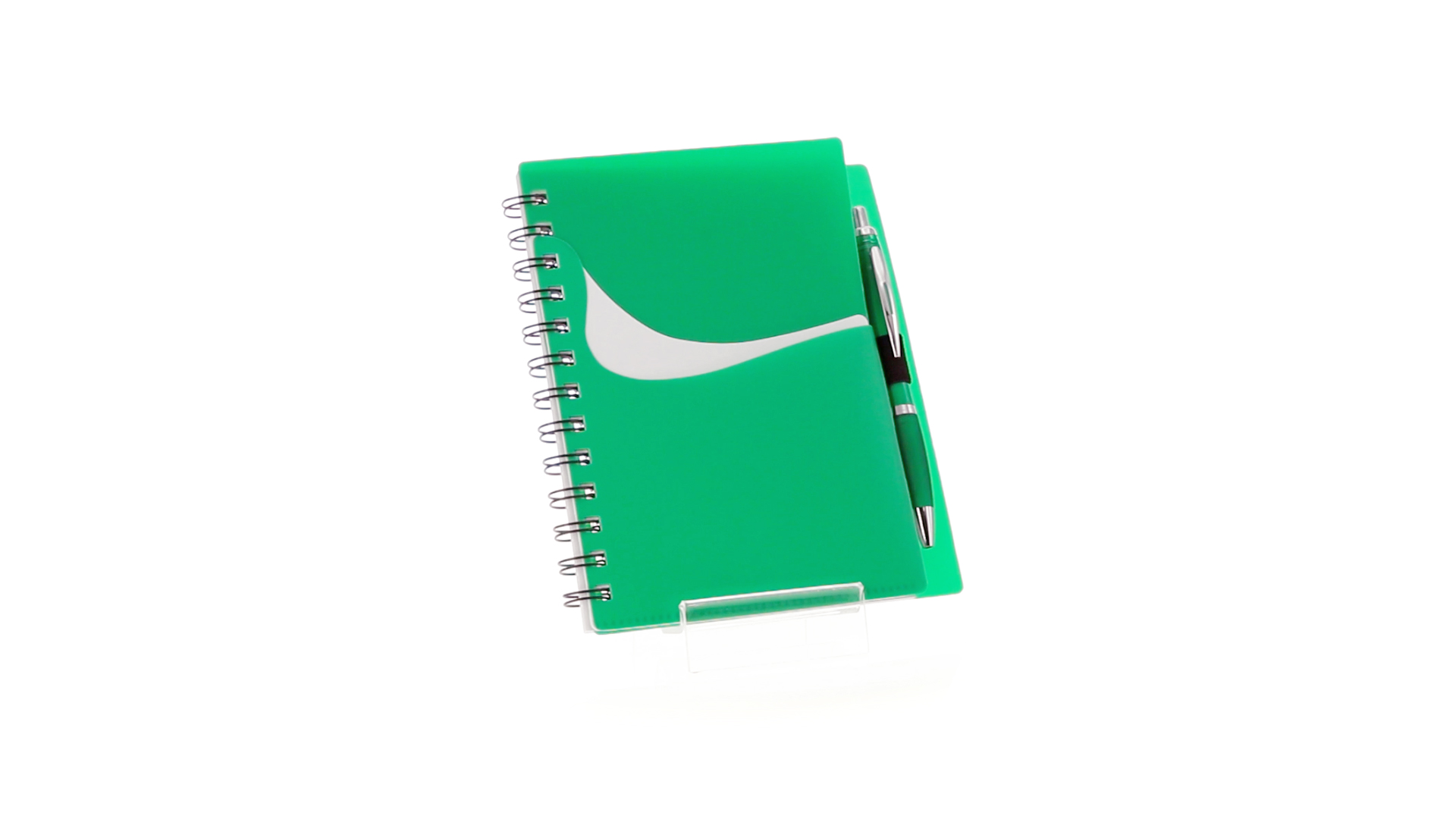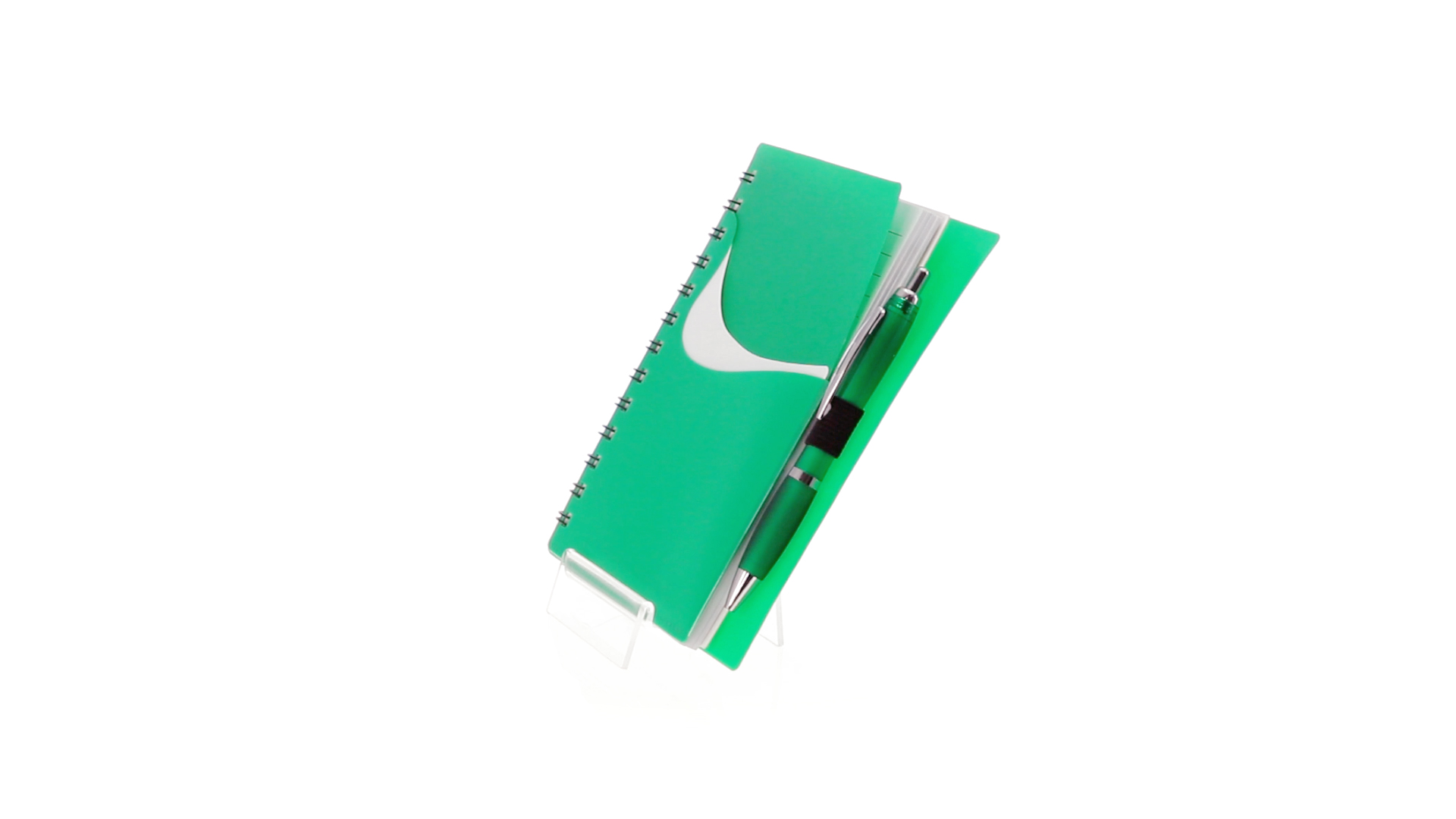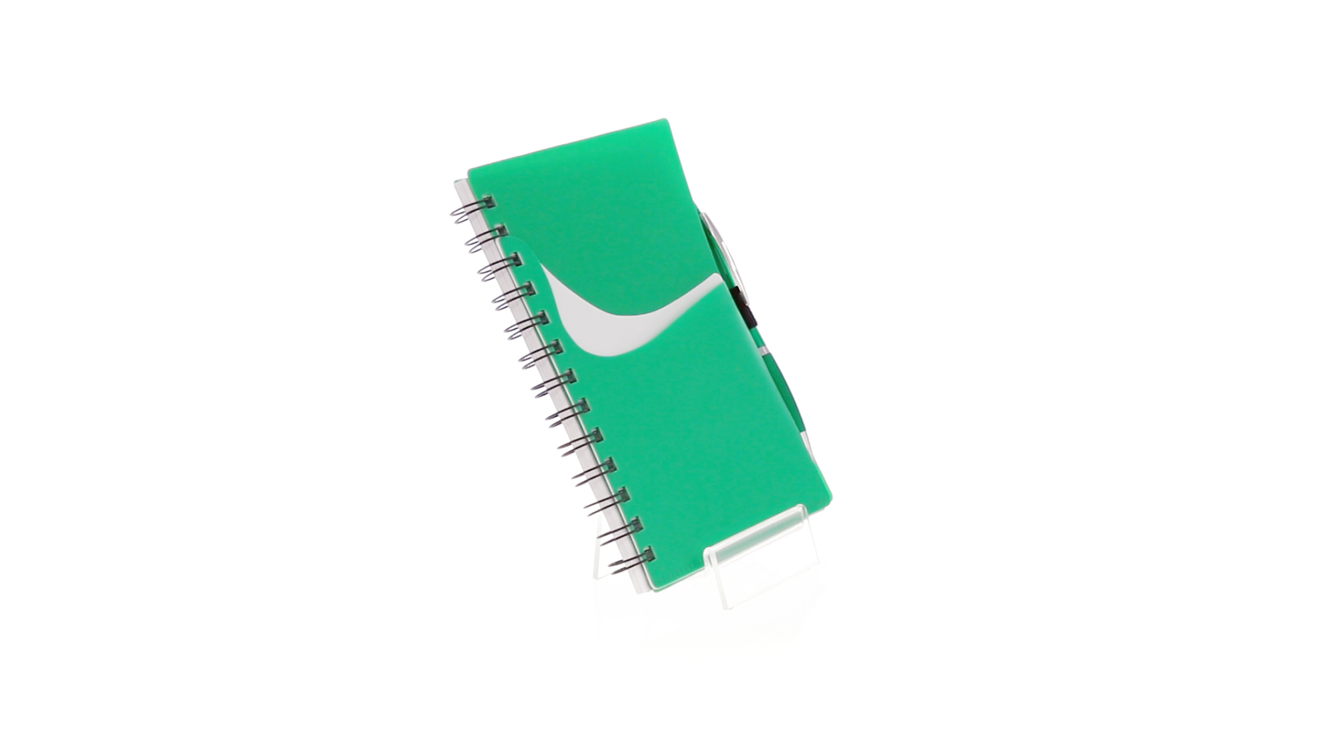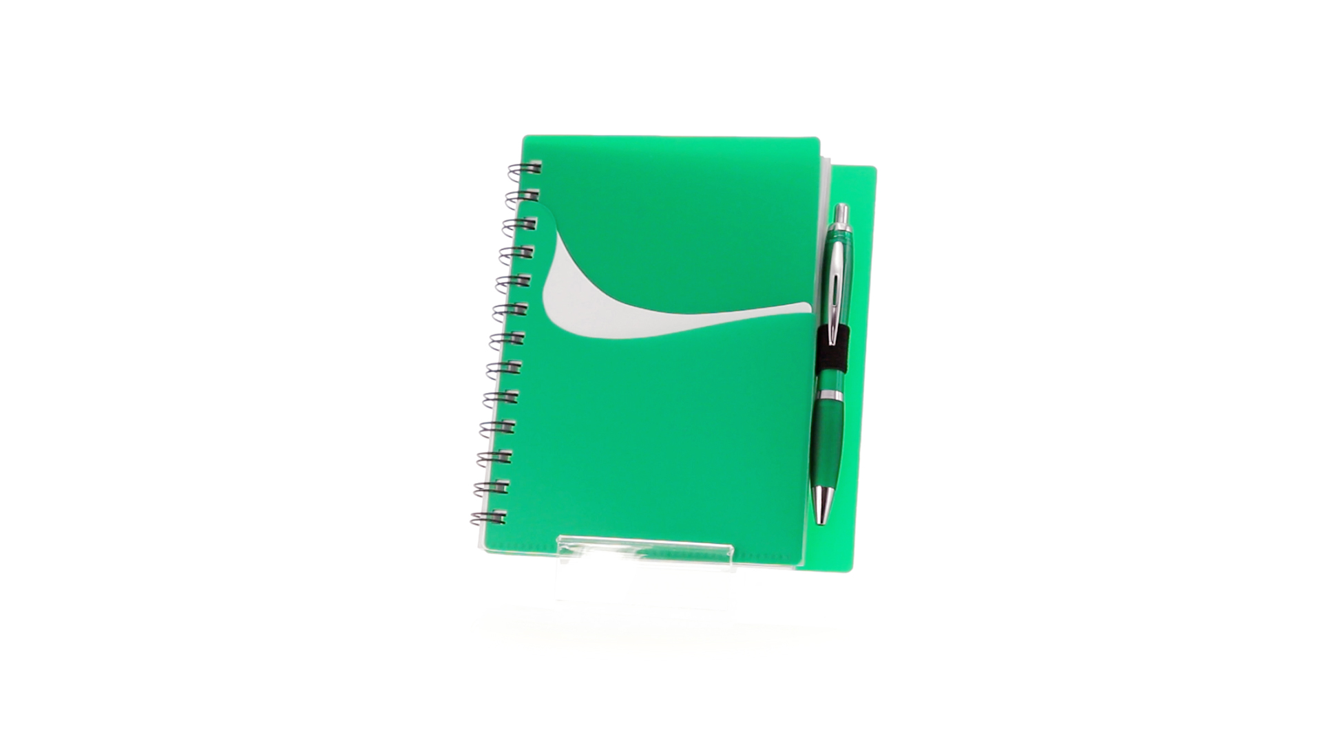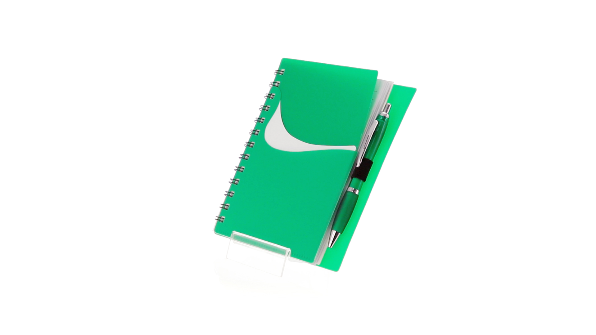 Ring-Notizbuch in originellen Farben mit farblich passendem Kugelschreiber mit Jumbo-Patrone. Mit 70 linierten Blättern, integrierter Tasche und Stifthalter auf dem Cover.