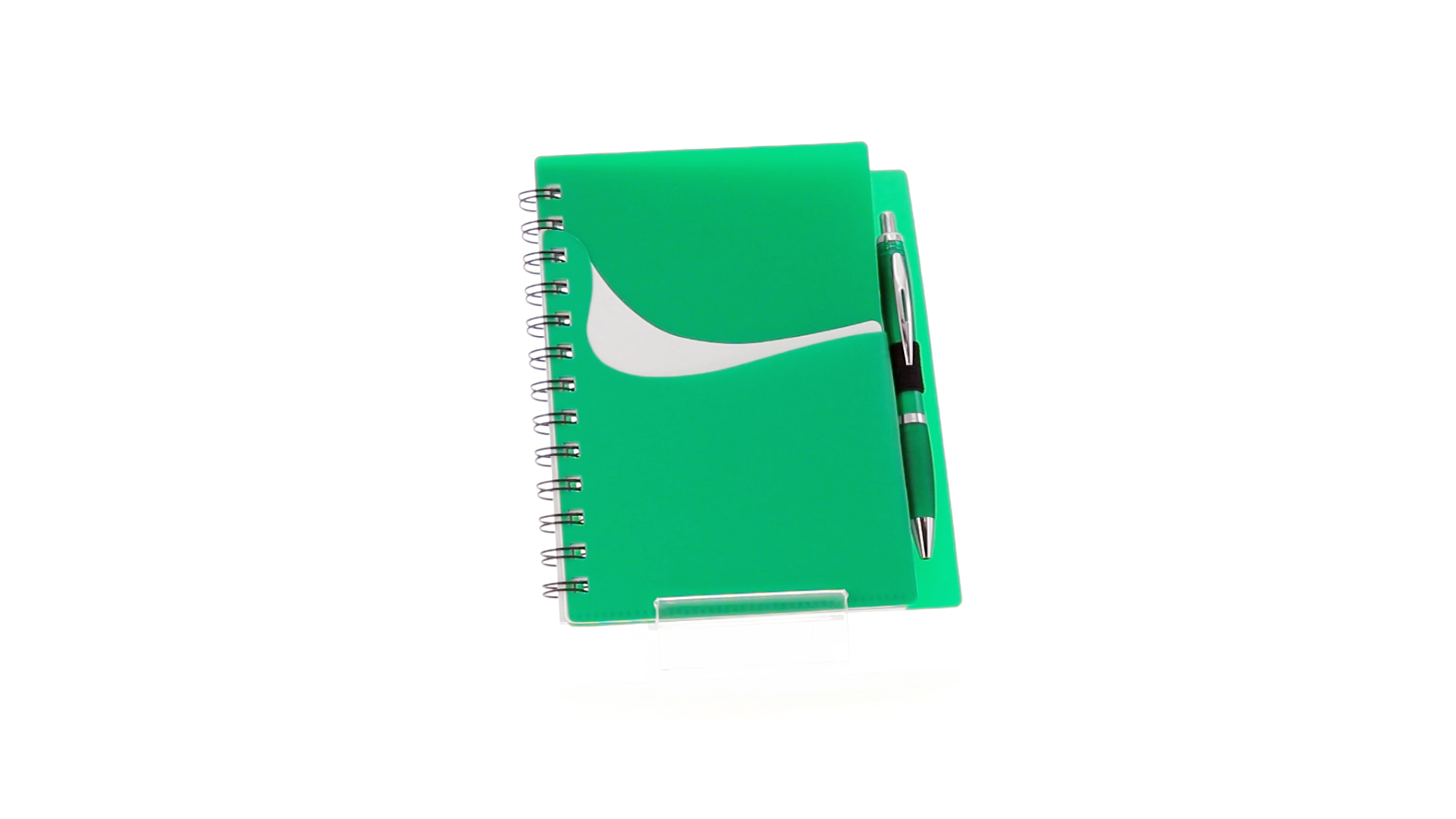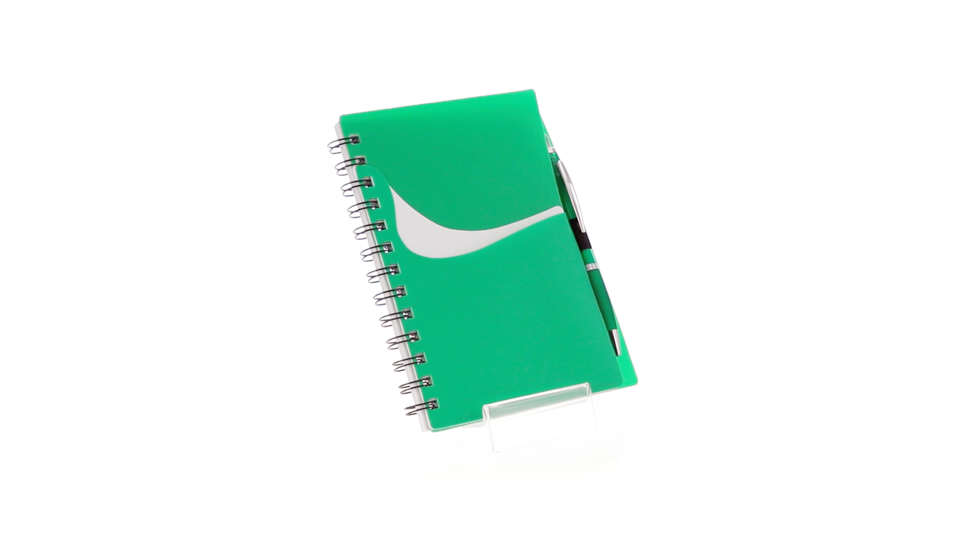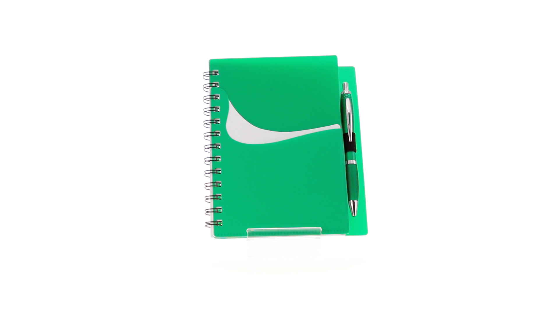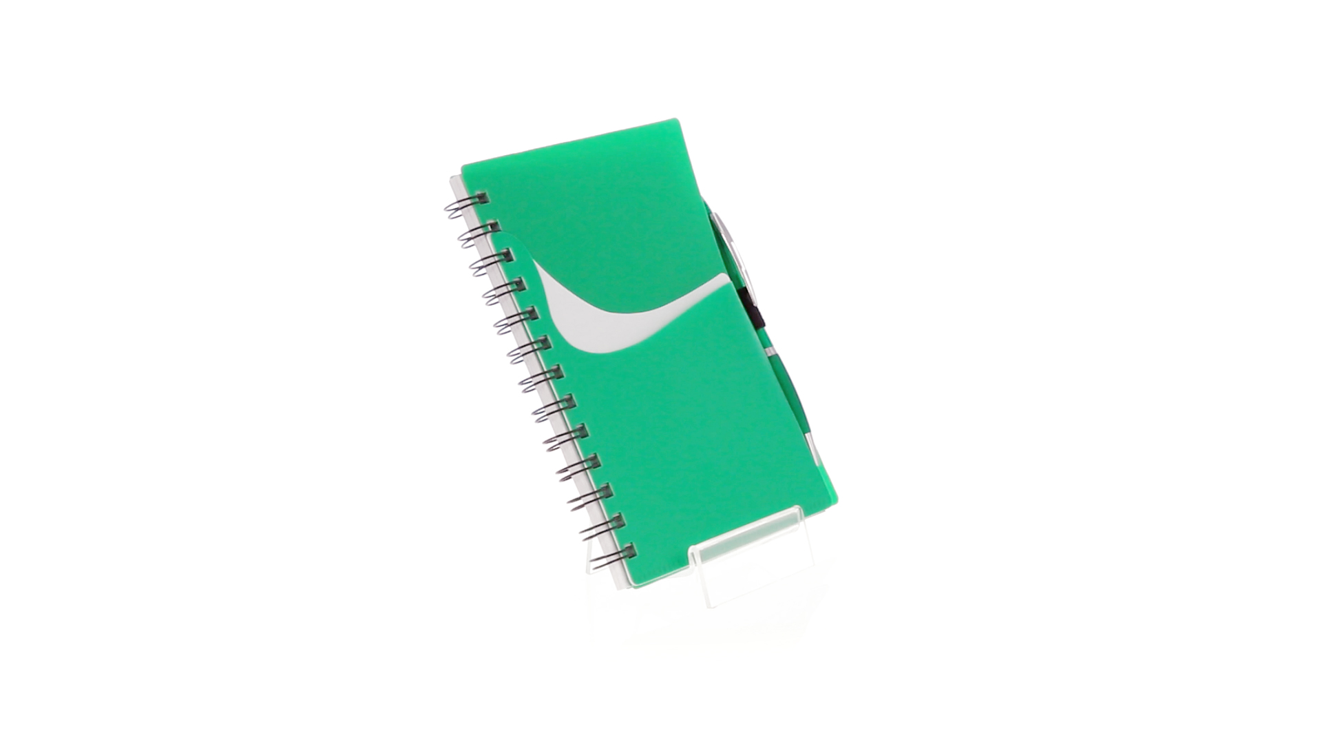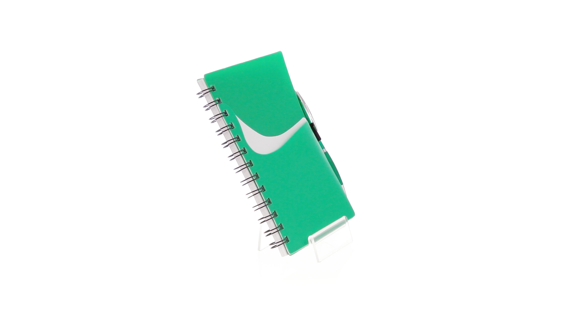 Ring-Notizbuch in originellen Farben mit farblich passendem Kugelschreiber mit Jumbo-Patrone. Mit 70 linierten Blättern, integrierter Tasche und Stifthalter auf dem Cover.