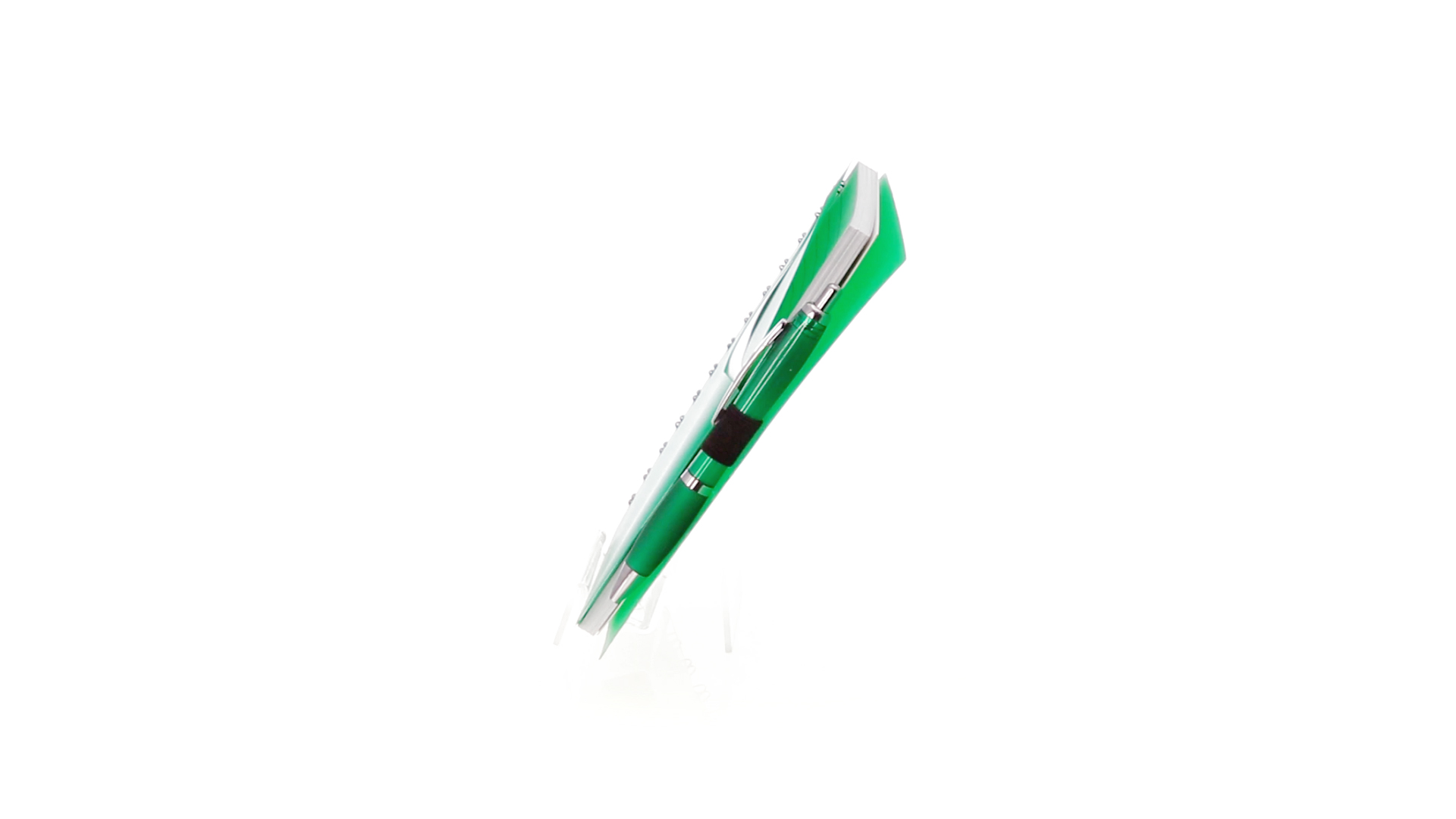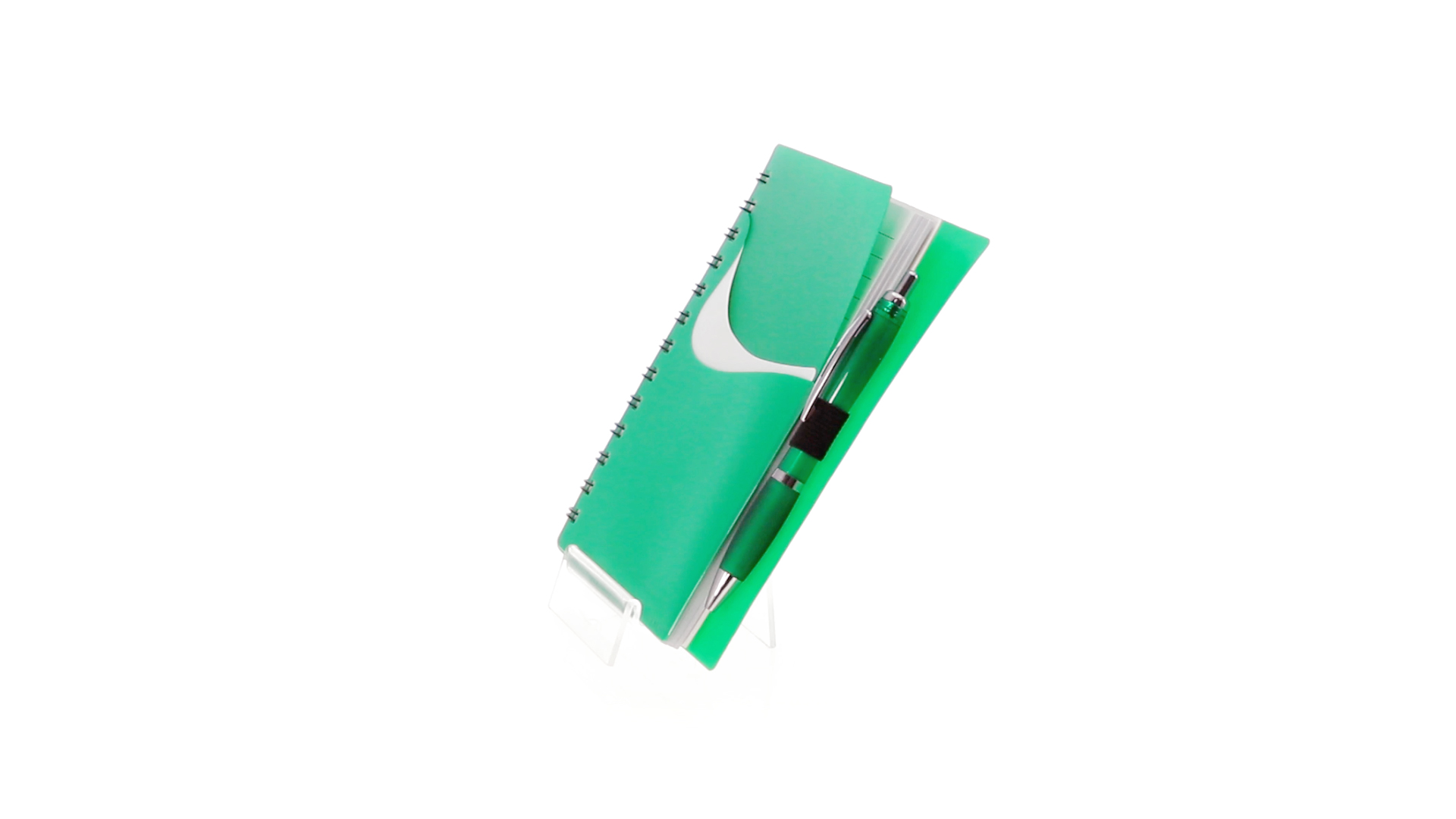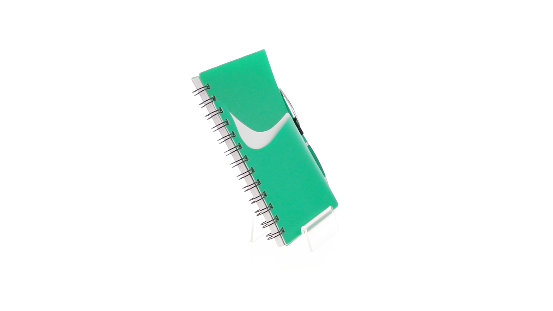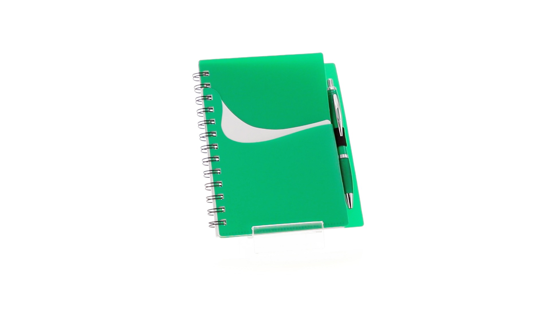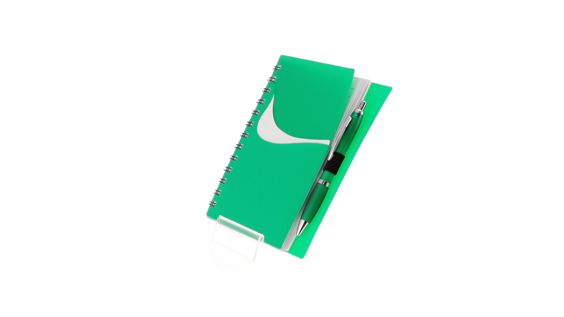 Ring-Notizbuch in originellen Farben mit farblich passendem Kugelschreiber mit Jumbo-Patrone. Mit 70 linierten Blättern, integrierter Tasche und Stifthalter auf dem Cover.