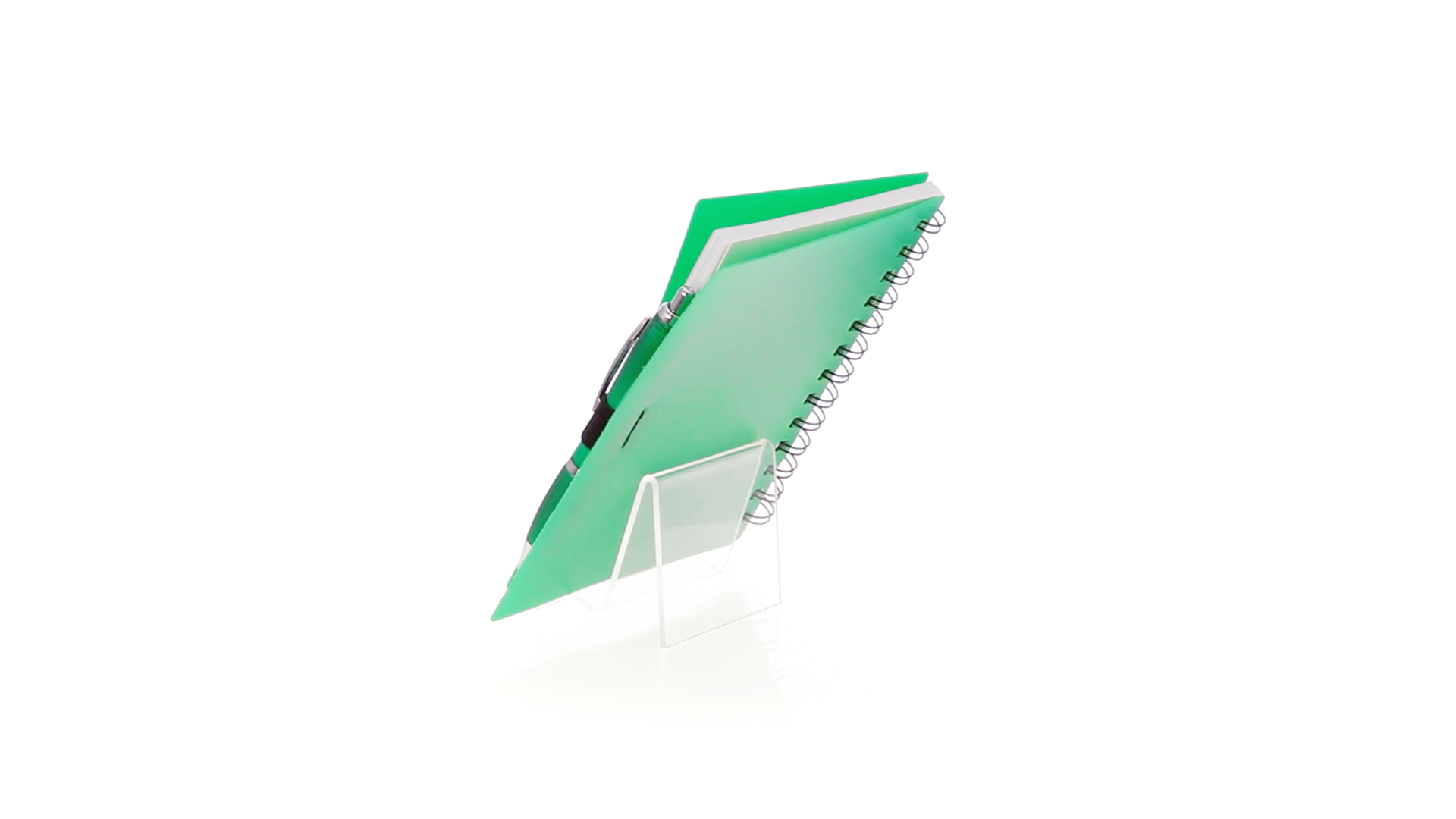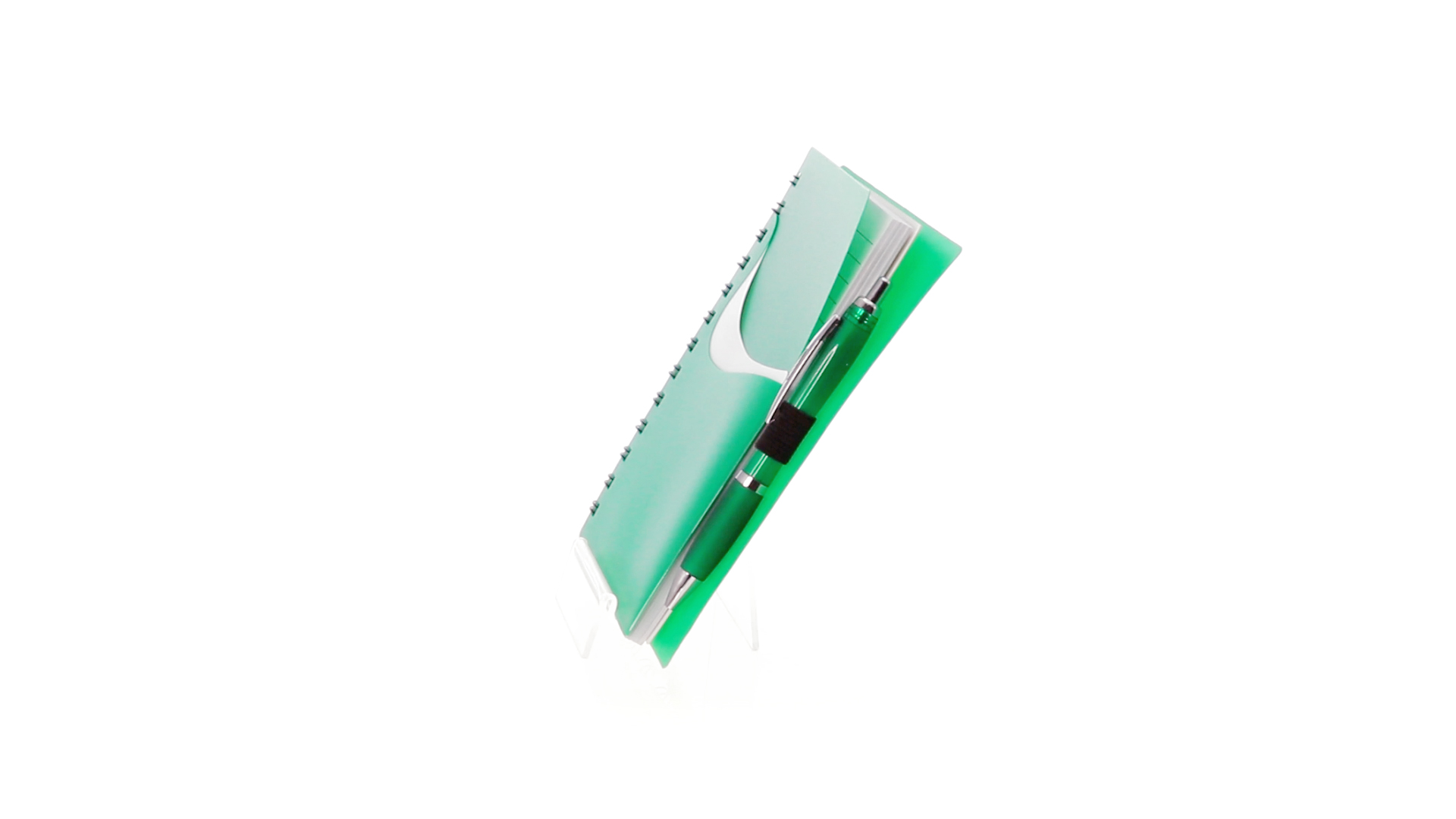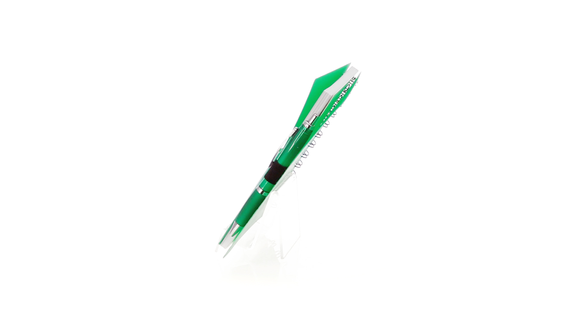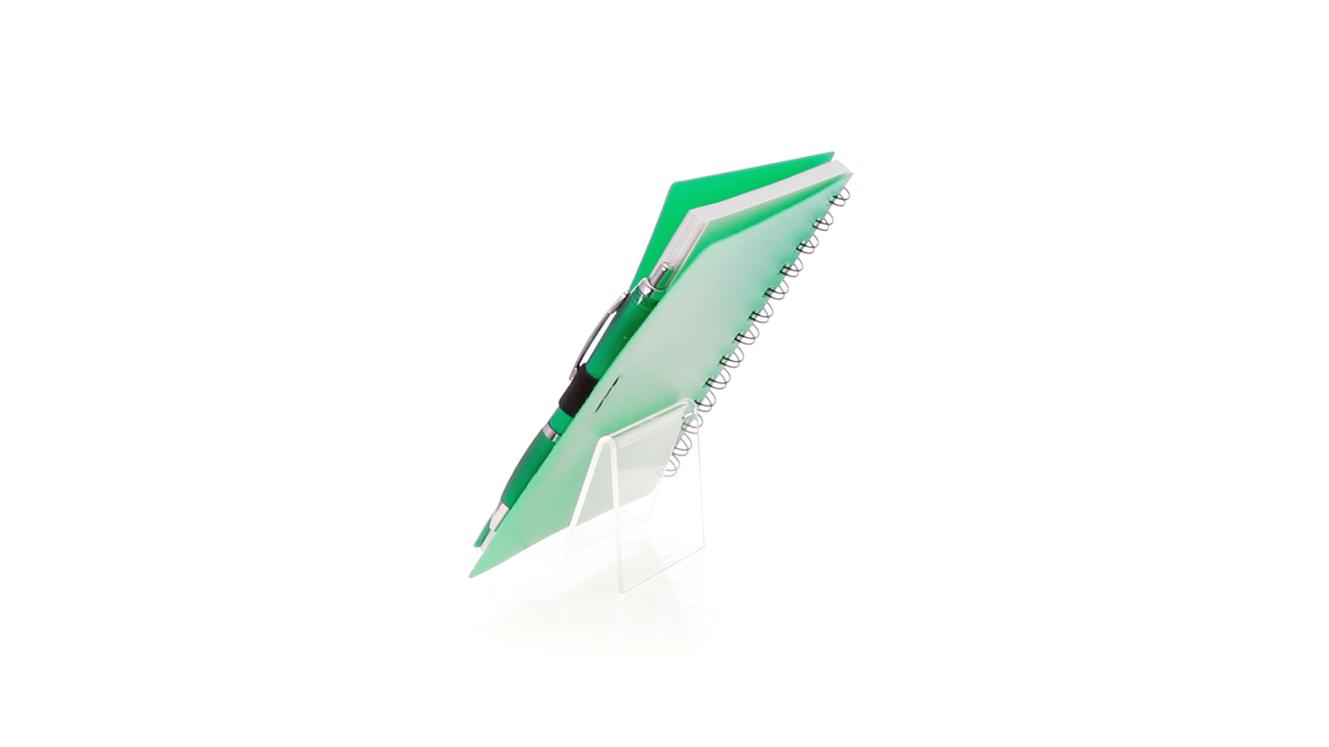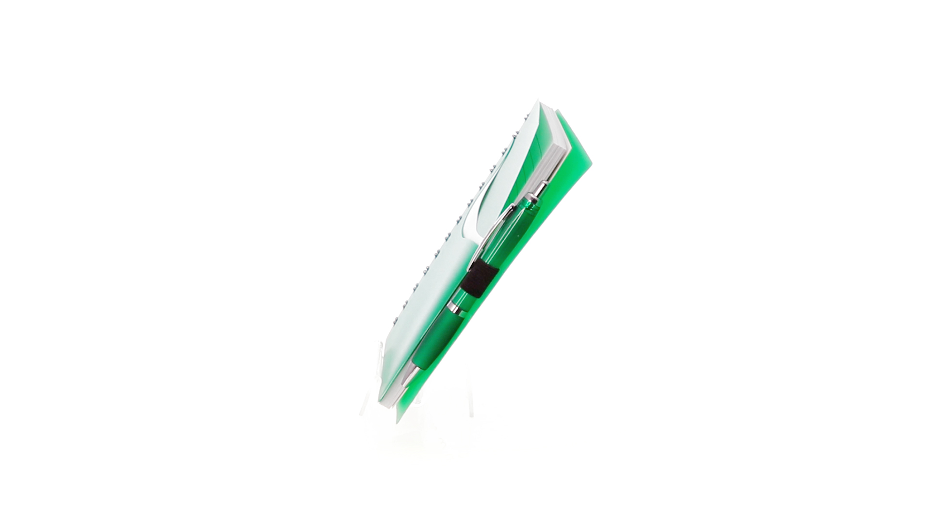 Ring-Notizbuch in originellen Farben mit farblich passendem Kugelschreiber mit Jumbo-Patrone. Mit 70 linierten Blättern, integrierter Tasche und Stifthalter auf dem Cover.