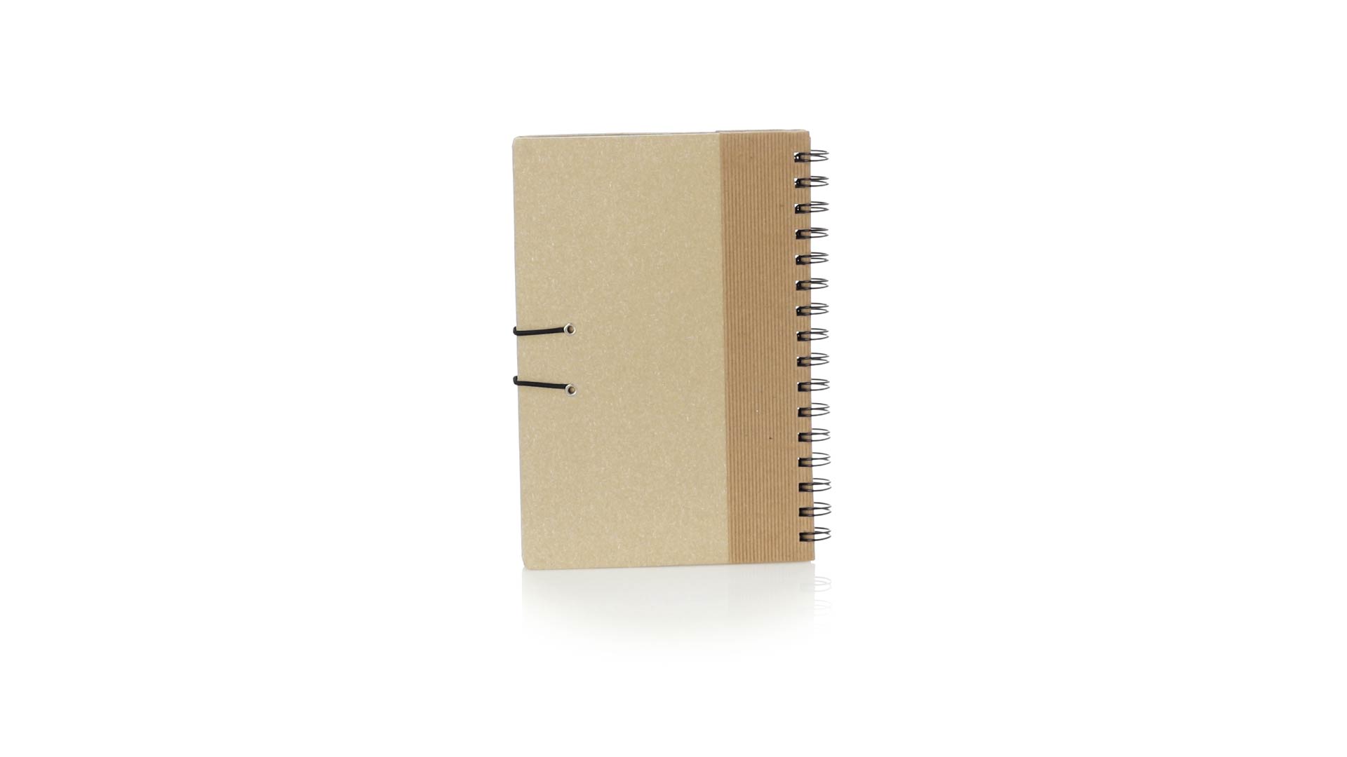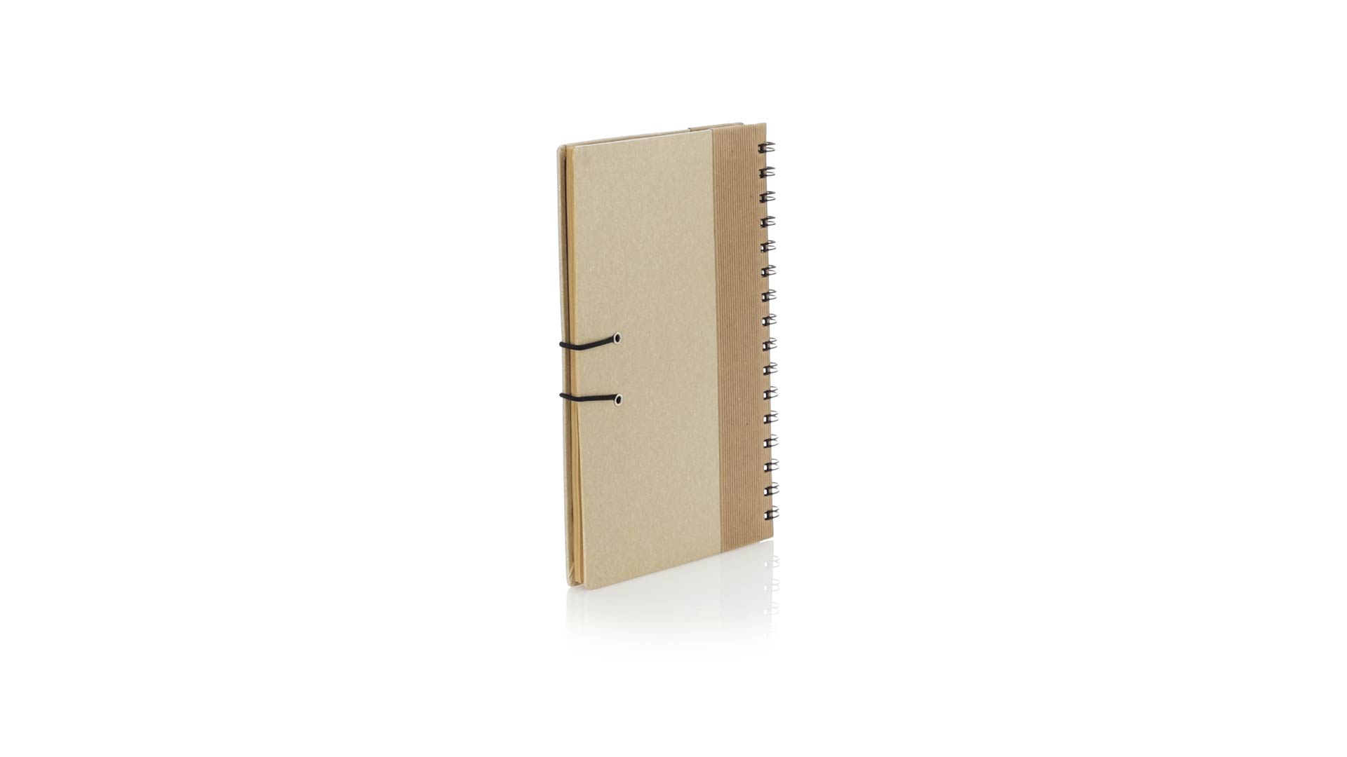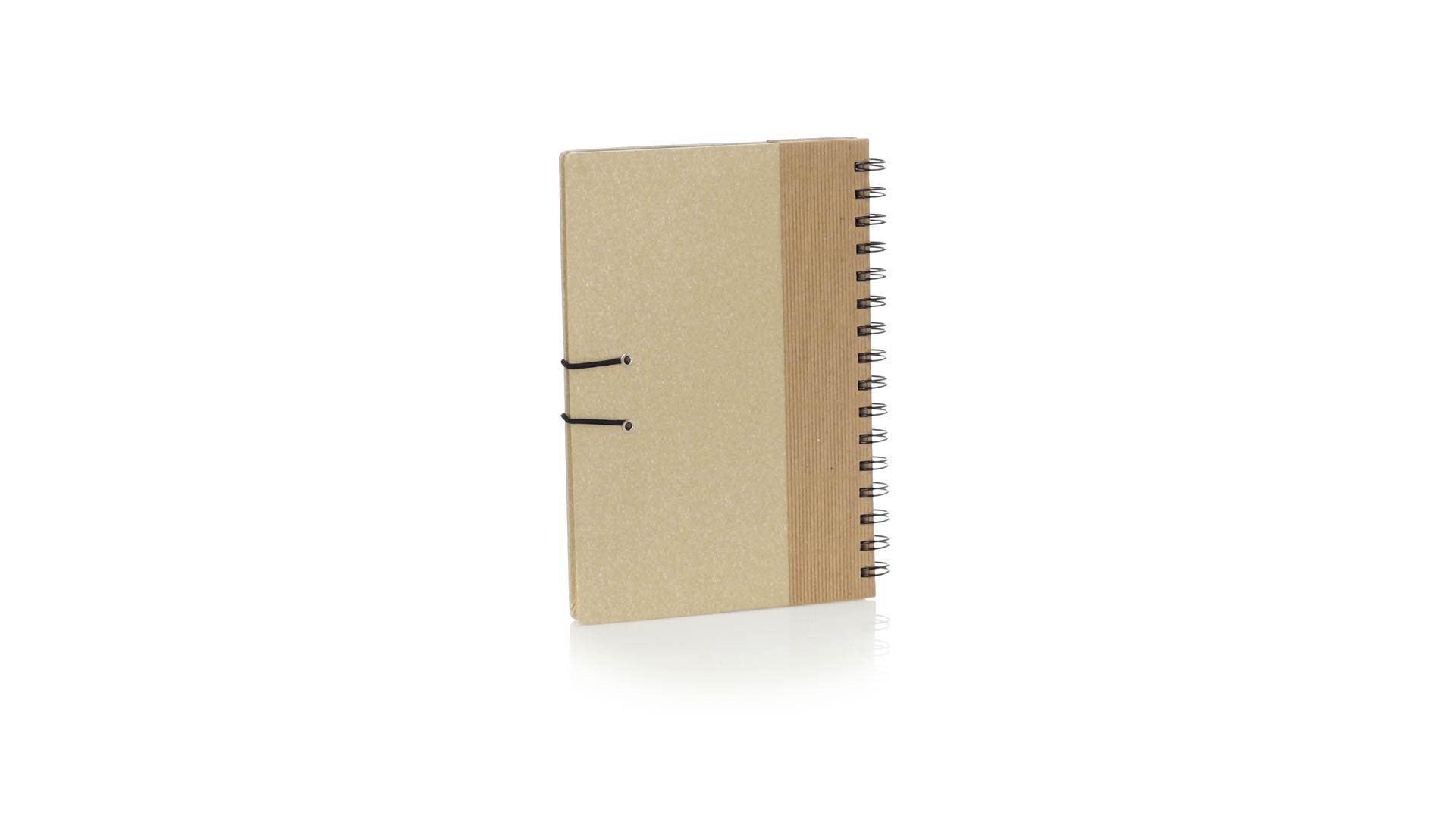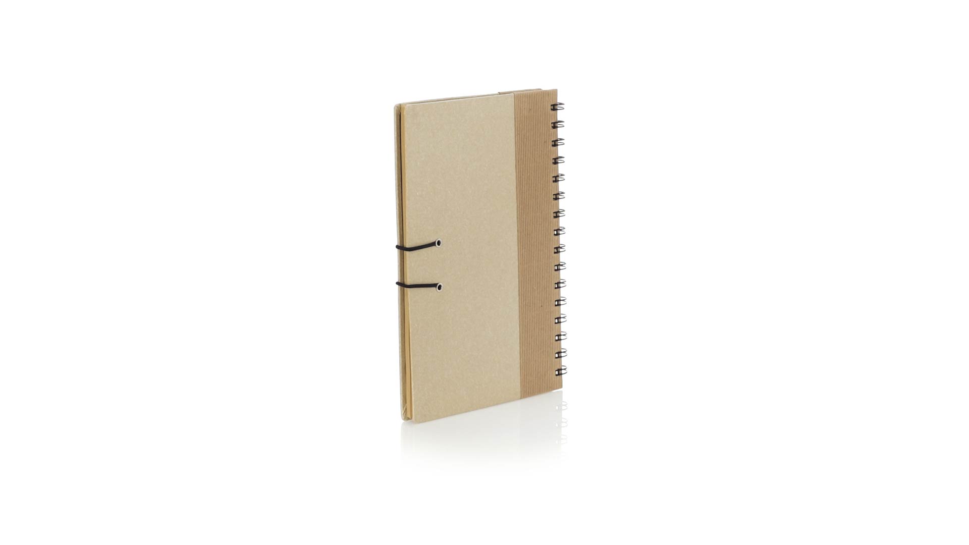 Geringtes Notizbuch aus unserer Naturlinie. Harte Einbände, aus recycelter Pappe. 80 Blätter im Streifen-Layout und Öko-Design.