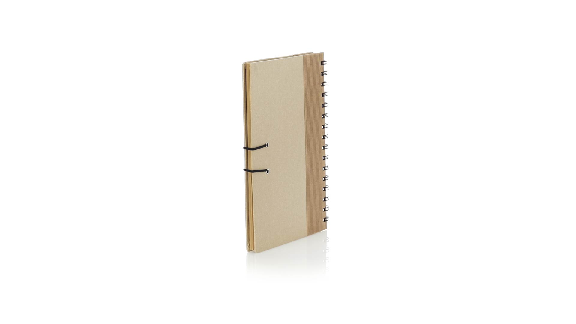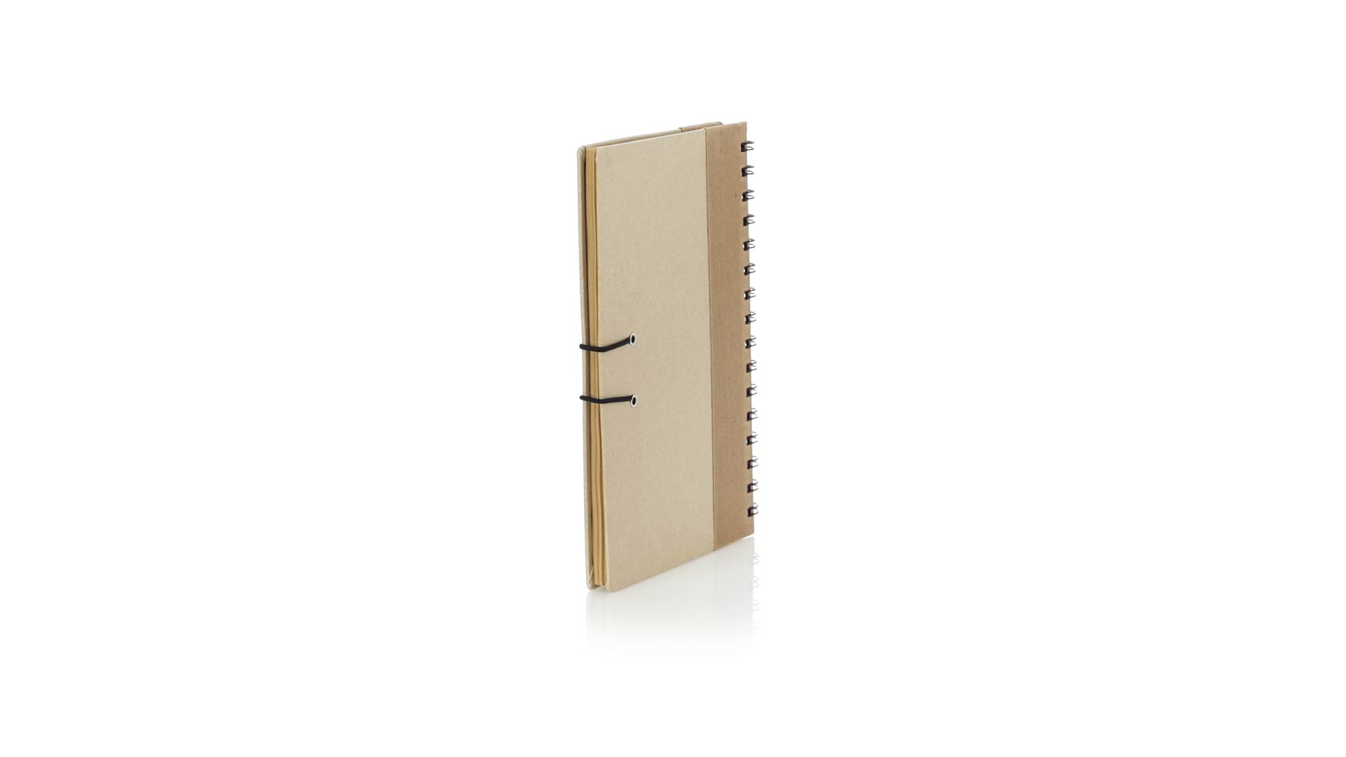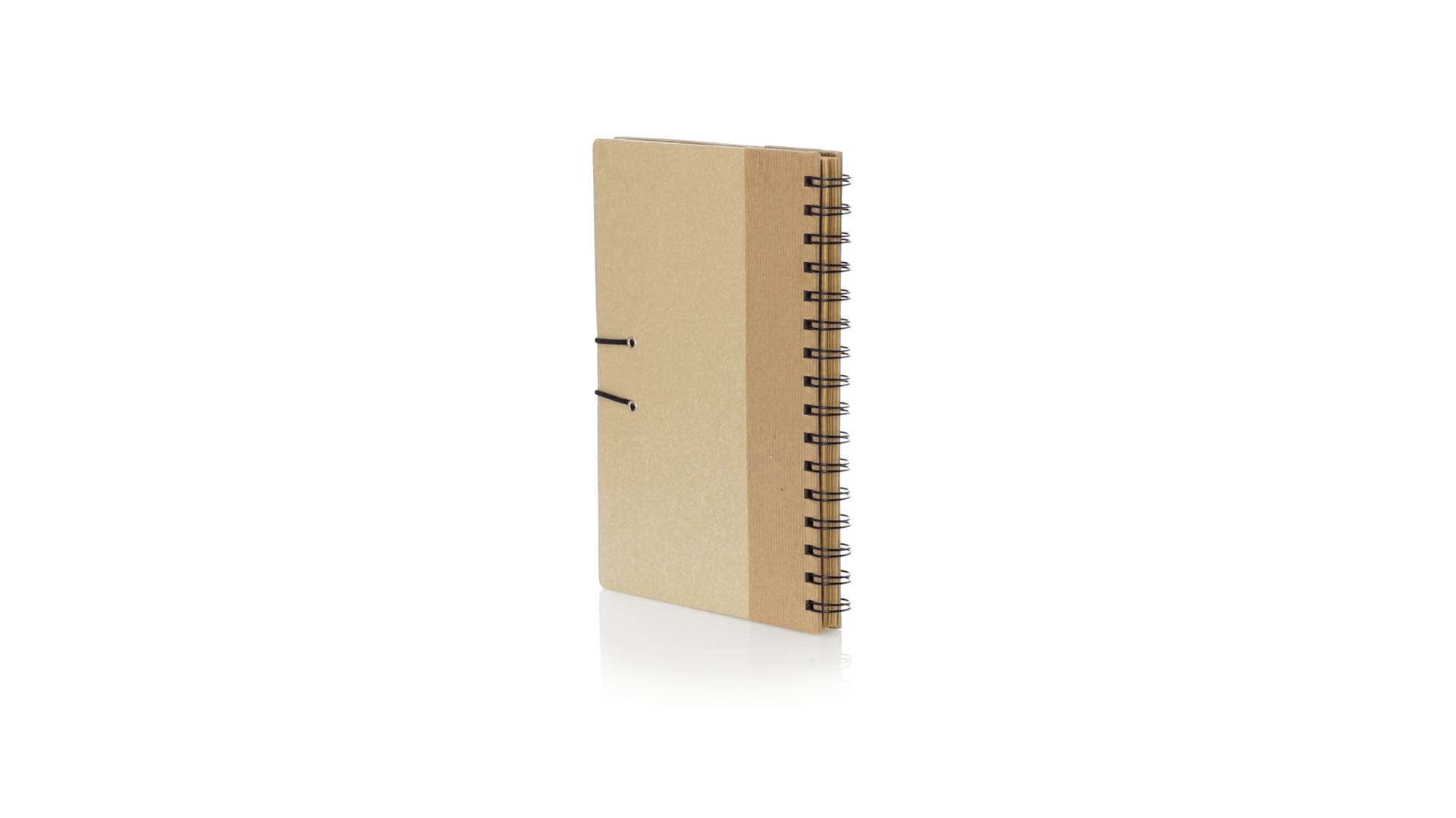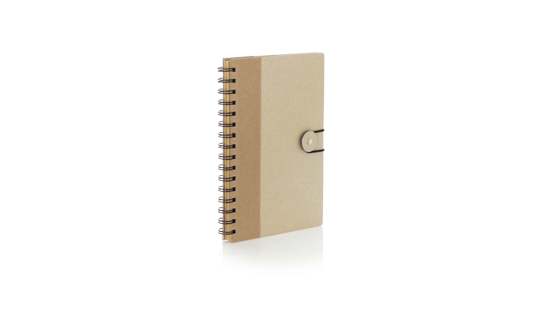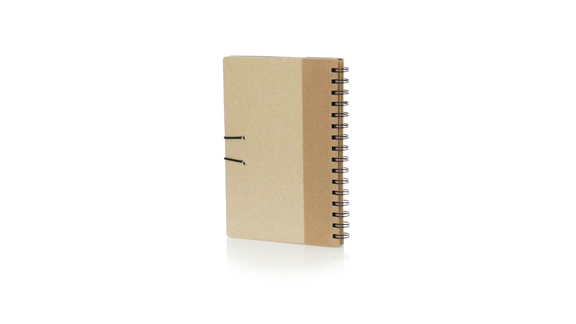 Geringtes Notizbuch aus unserer Naturlinie. Harte Einbände, aus recycelter Pappe. 80 Blätter im Streifen-Layout und Öko-Design.