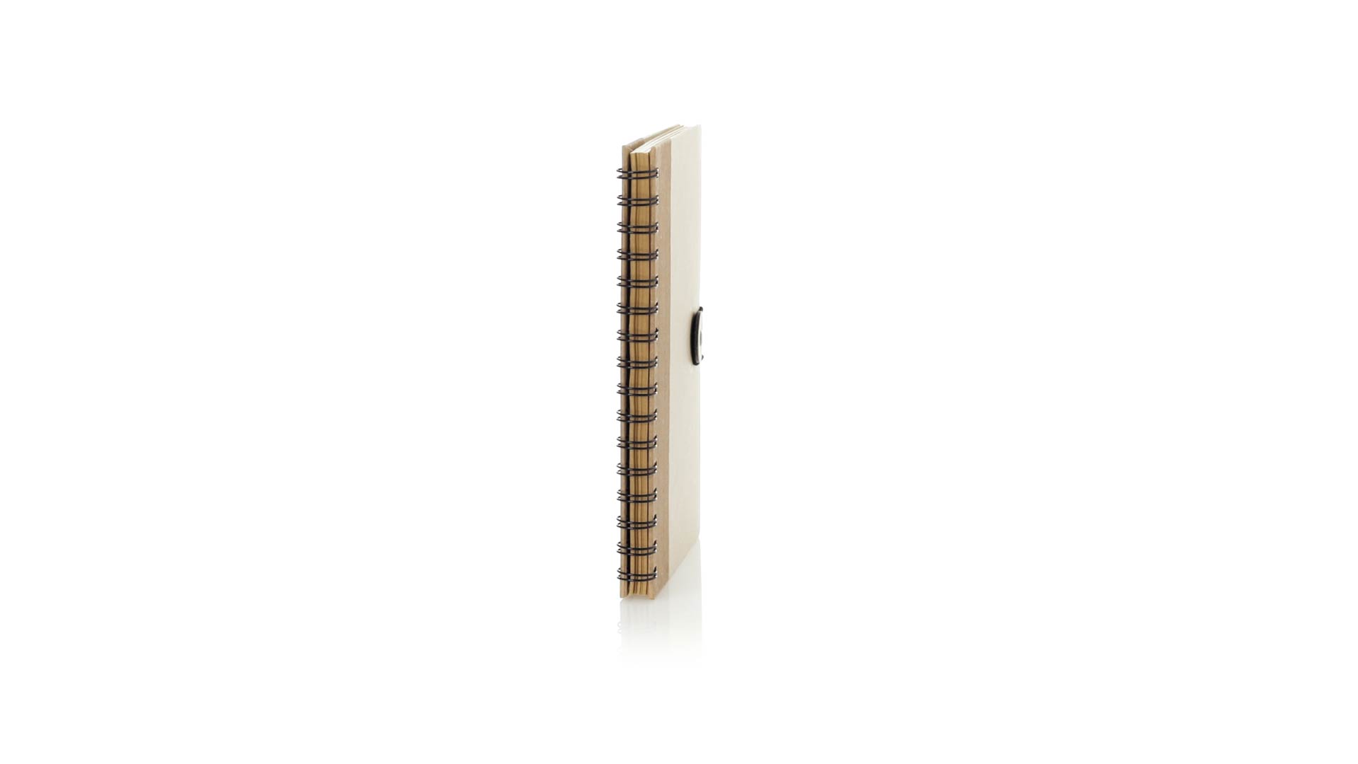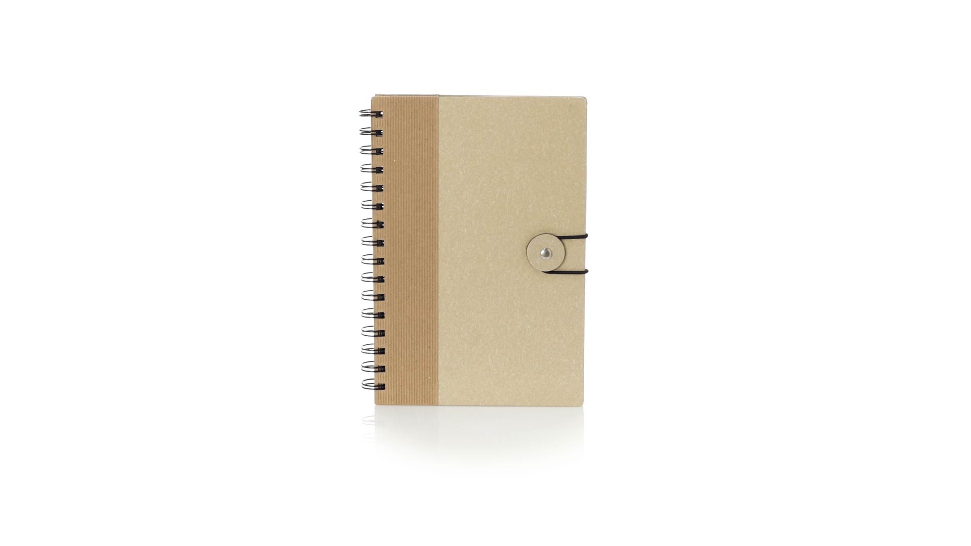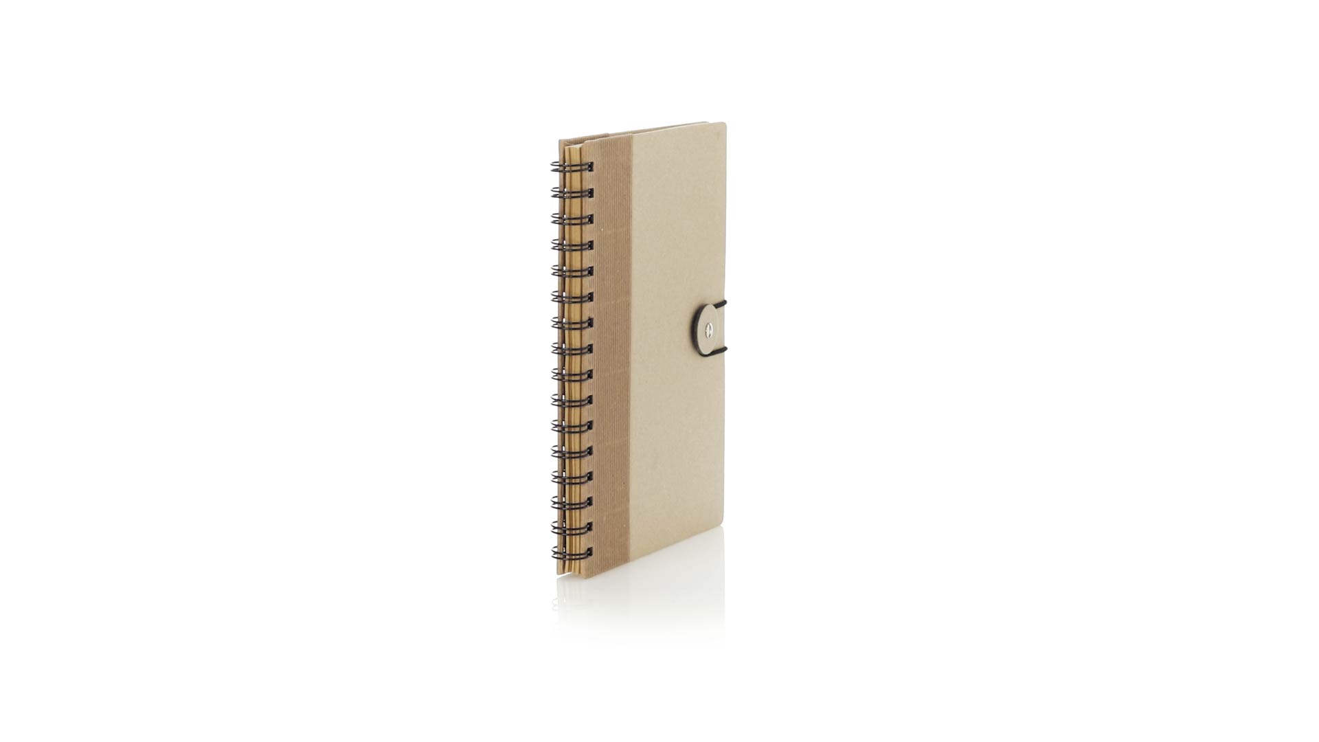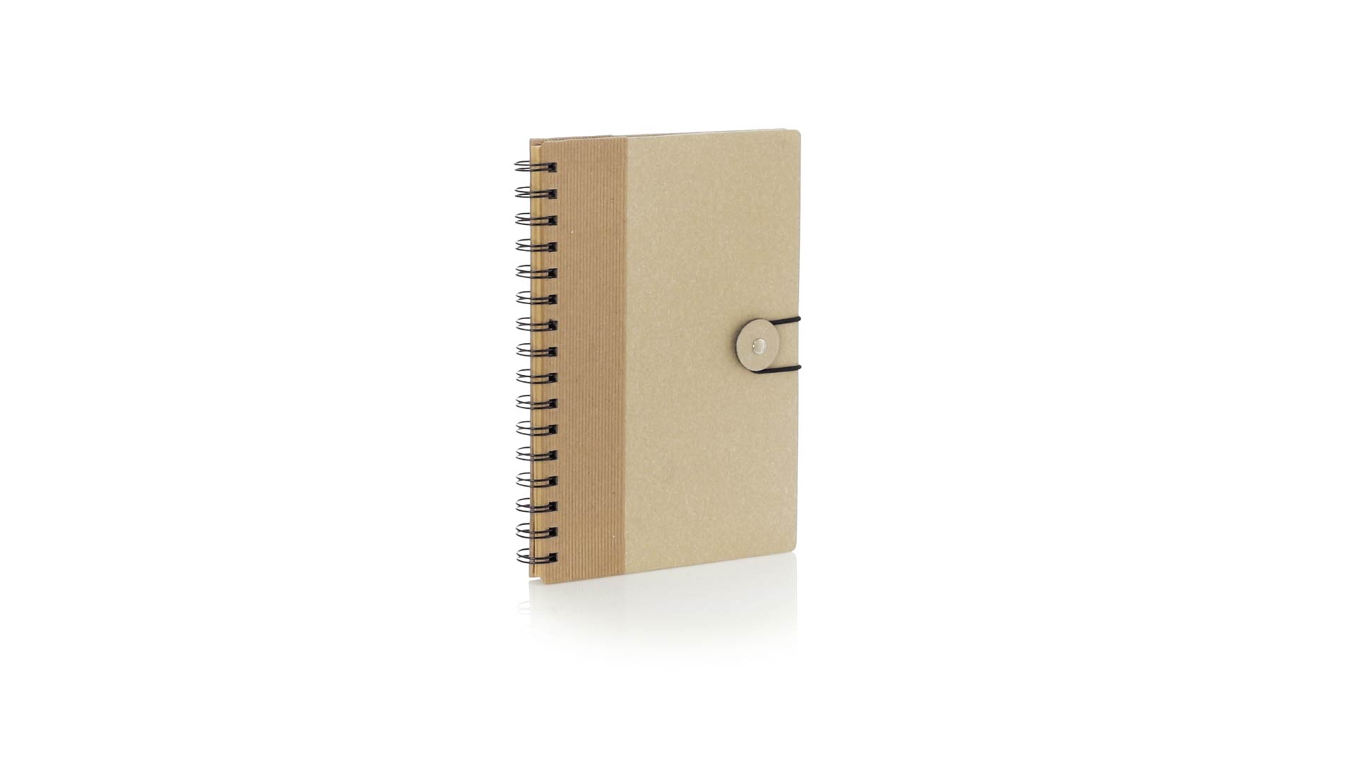 Geringtes Notizbuch aus unserer Naturlinie. Harte Einbände, aus recycelter Pappe. 80 Blätter im Streifen-Layout und Öko-Design.