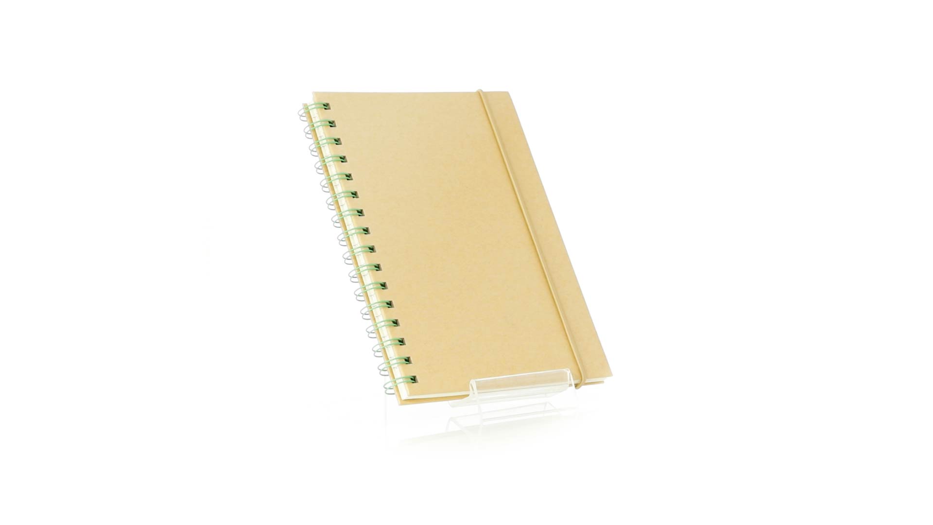 Ringnotizbuch aus unserer Naturlinie mit farbigen Ringen. Harte Einbände aus recyceltem Karton und einem Gummiband in Naturfarben. Mit 80 Blättern im Streifen-Layout und Öko-Design.