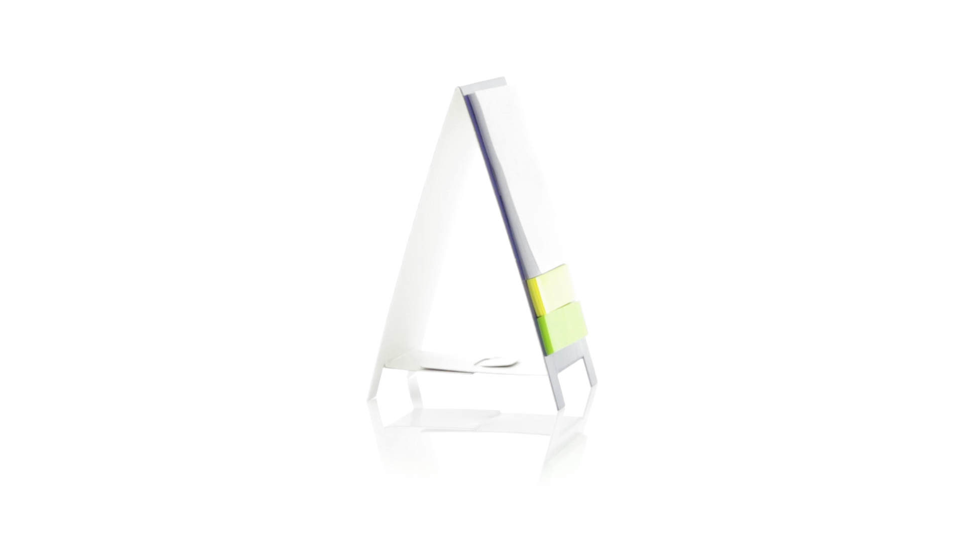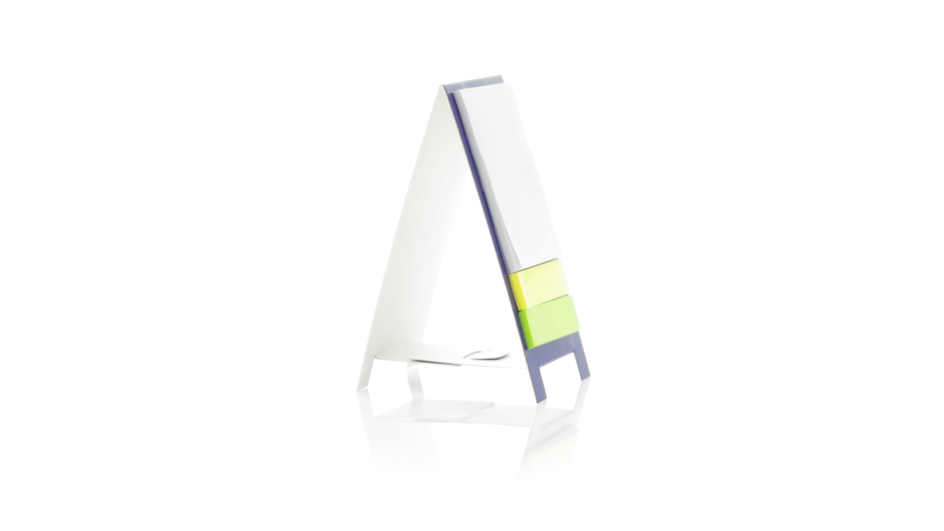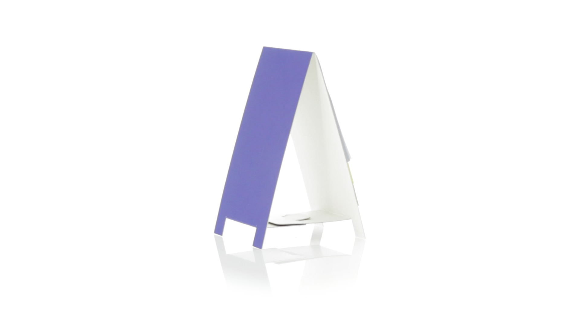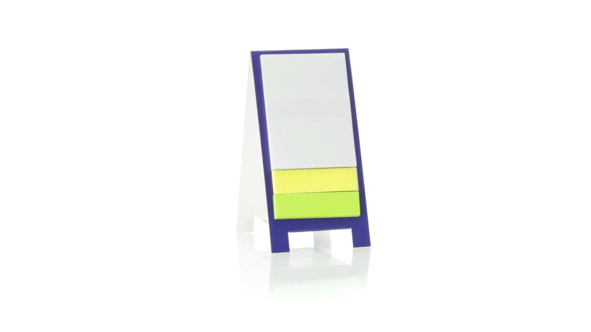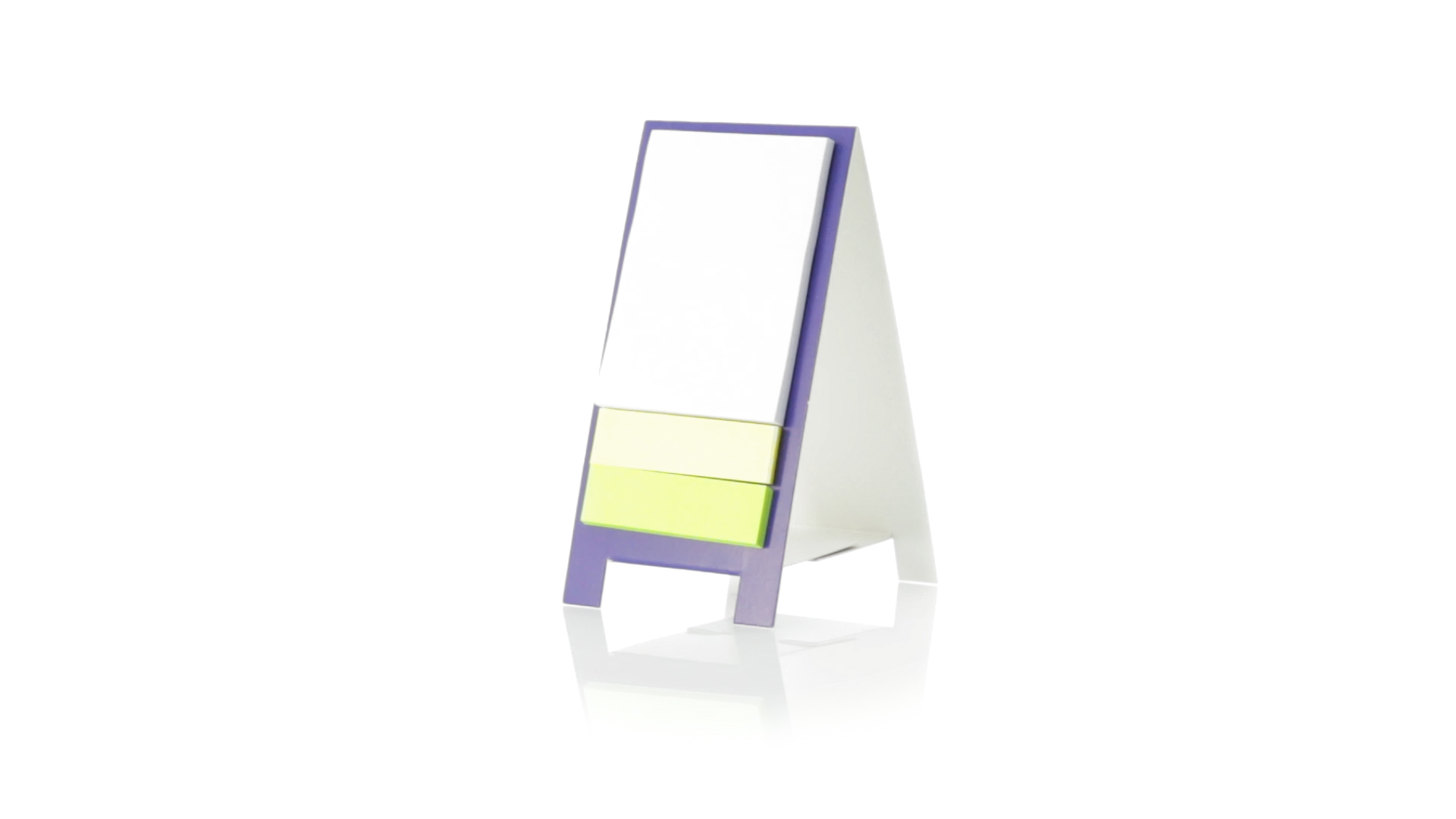 Origineller Haftnotizen-Ständer aus Karton in verschiedenen lebendigen Farben. Enthält 30 grosse und 50 Mini-Haftnotizen. Präsentiert in ungefaltetem Zustand für einfaches Bedrucken.