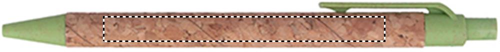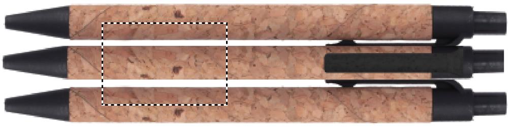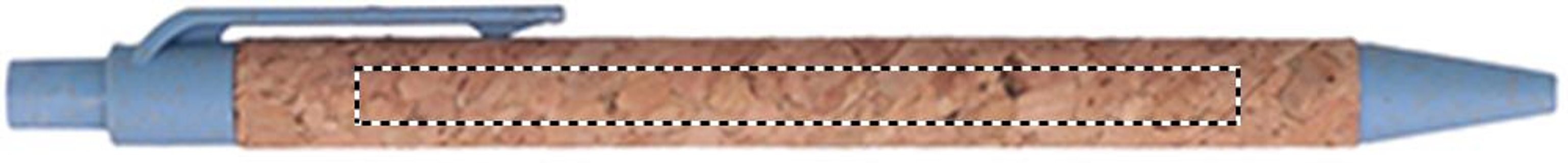 Druckkugelschreiber mit Schaft aus Kork. Clip, Drücker, Spitze aus Weizenstrohhalm- und ABS-Kunststoff Gemisch (je 50%). Blaue Tinte. Kork ist ein natürliches Material, aufgrund seiner strukturellen Beschaffenheit und Oberflächenporosität kann das Druckergebnis pro Artikel Abweichungen aufweisen.