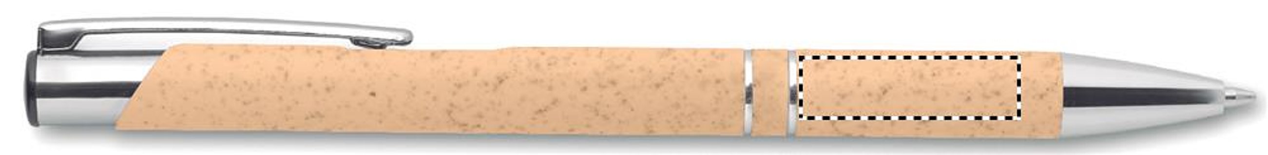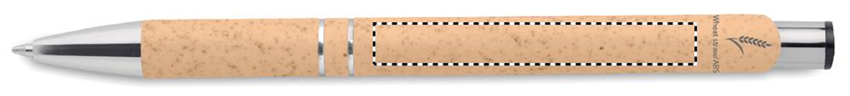 Druckkugelschreiber aus 50% Weizenstroh und 50% ABS-Material mit silbernen Details. Blaue Tinte.