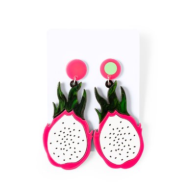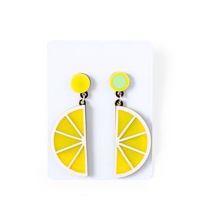 Frische und originelle Kollektion von Obstohrringen. Fesselnd und farbenfroh, geformt wie Erdbeeren, Pitayas, Äpfel, Wassermelonen oder Zitronen, ein Stil-Statement. Mit Liebe zum Detail und Clipverschluss gefertigt. Präsentiert in weissem Karton und in einer individuellen Tasche.