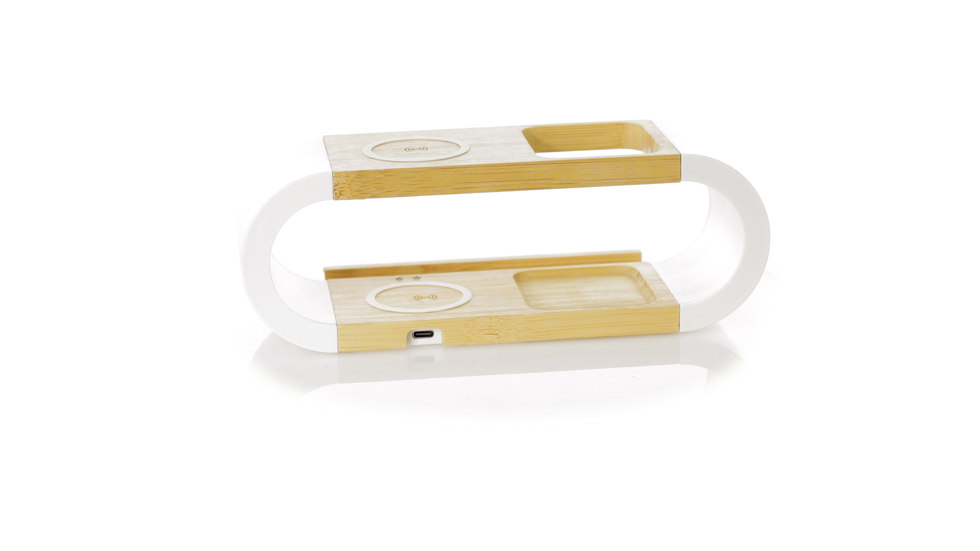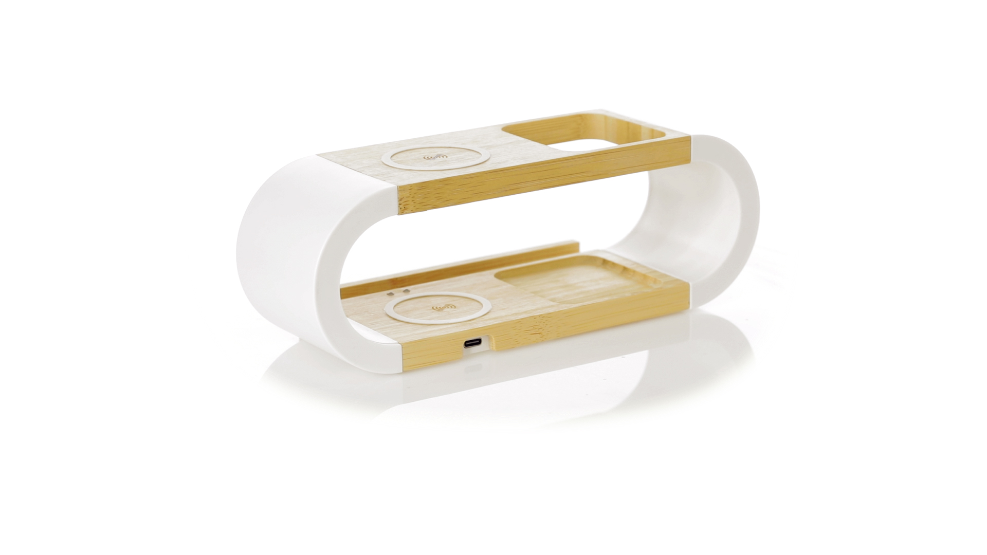 Charger Organiser Limited Edition-Line mit Ladestationsfunktion, Halterung für Mobilgeräte/Tablets und Stift/Organizer. Ein Gleichgewicht zwischen Technologie, Nachhaltigkeit und Funktionalität, das ein innovatives und ausgeklügeltes Design bietet, ein exklusives, hochwertiges Design aus Bambus und ABS. Dank der beiden kabellosen 10-W-Ladegeräte können zwei Geräte gleichzeitig aufgeladen werden. Inklusive 100 cm USB-C-Ladekabel und Bedienungsanleitung in Englisch und Spanisch. Aus der perfekten Kombination von Exklusivität und Design ist Limited Edition entstanden, eine besondere Kollektion von Werbeideen in limitierter Auflage. Ein neues Konzept, inspiriert durch die Verschmelzung von Premium-Artikeln mit den neuesten und innovativsten Trends und mit einer begrenzten Auswahl an Einheiten, die ein Geschenk zu einem einzigartigen und unvergesslichen Erlebnis machen. Exklusiver Limited Edition-Präsentationskoffer, Design durch gewerbliche Schutzrechte geschützt. Einschliesslich einer Karte mit der Beschreibung von Limited Edition Experience auf recyceltem Karton.