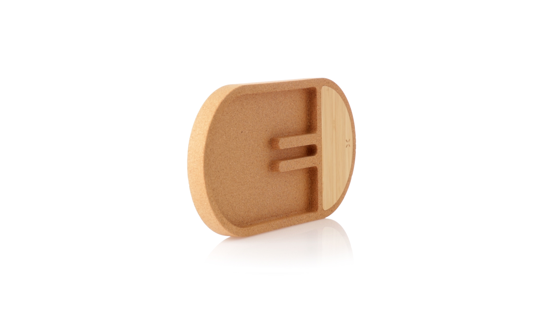 Kabelloser Organizer-Ladegerät mit 15W Leistung. Die Basis besteht aus Naturkork und die Ladefläche aus Bambus. Es verfügt über eine integrierte Smartphone-Halterung und Stauraum für Büroartikel. Es ist kompatibel mit Geräten mit Qi kabelloser Ladetechnologie, hat eine LED-Ladeanzeige und ein Typ-C-Ladekabel ist im Lieferumfang enthalten. Die Basis ist rutschfest und wird in einer individuellen Kraft-Design-Box mit Anleitung in Spanisch und Englisch geliefert.