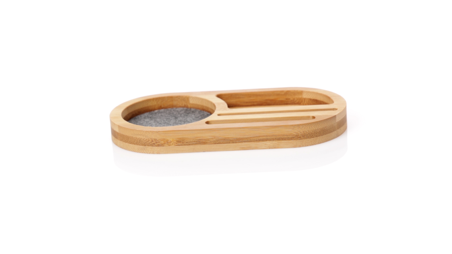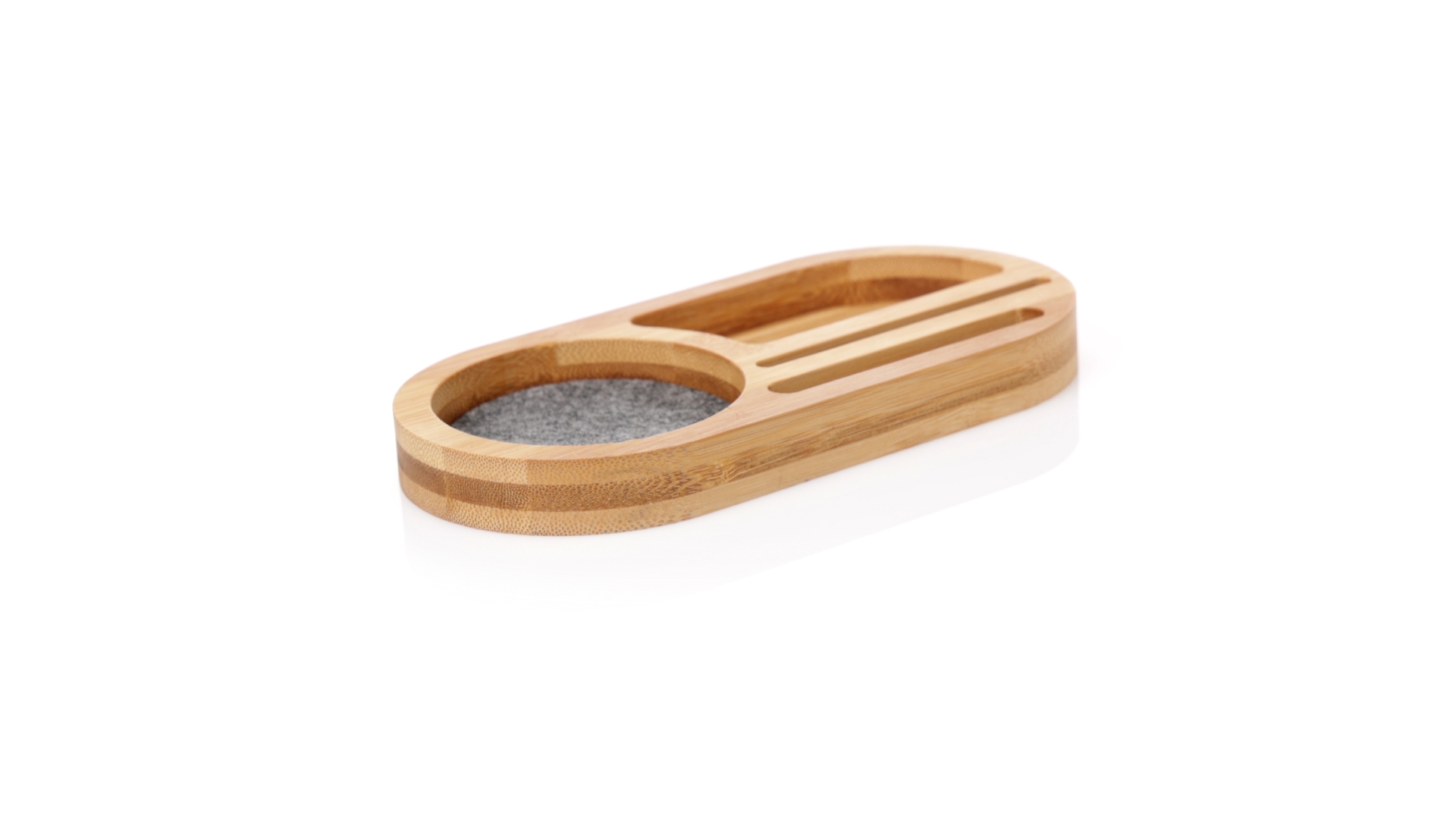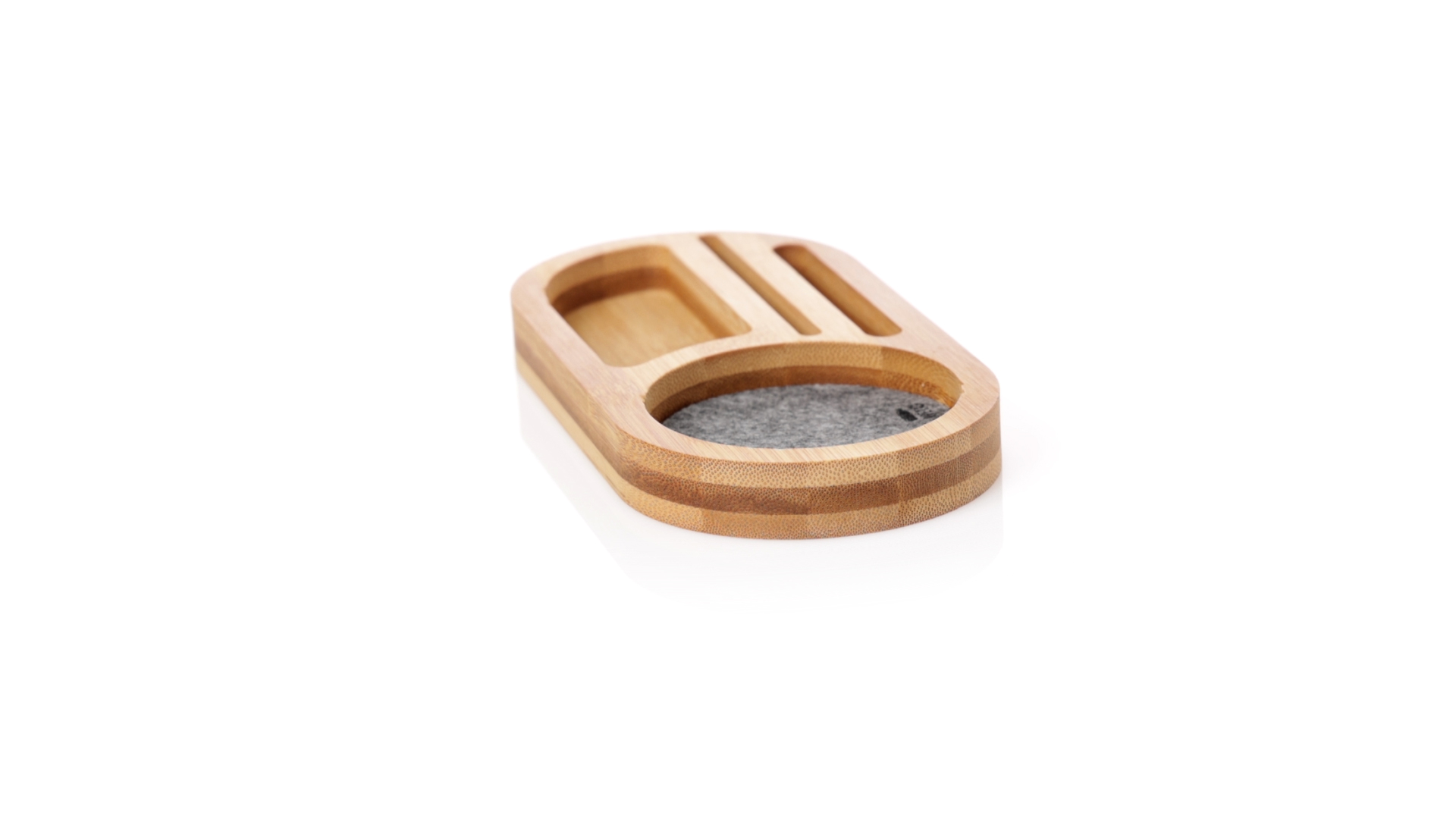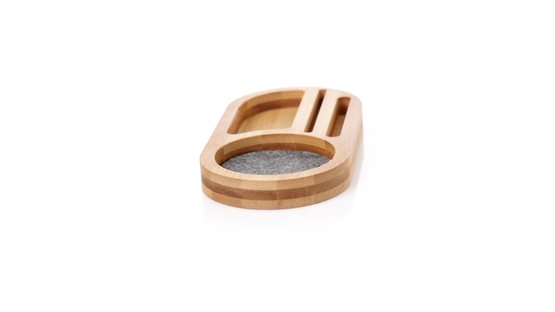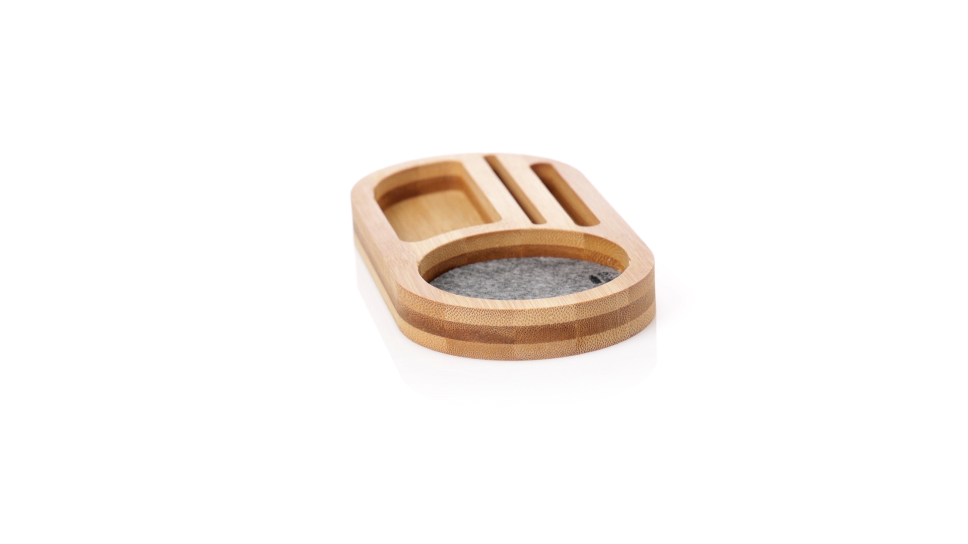 Linie Natur Organizer aus Bambus in Kombination mit RPET-Filz. Mit Smartphone-Haltefunktion, mehreren Extrafächern und grosser Druckfläche. Mit dem unverwechselbaren RPET-Filz und präsentiert in einer individuellen Box mit Kraft-Design.RPET-Filz ist das Ergebnis der Kombination von Recyclingprozessen von Kunststoffen mit der jahrtausendealten Technik der Filzherstellung, was zu einem Öko-Trendmaterial führt, das nicht nur recycelt, sondern auch wiederverwertbar ist.