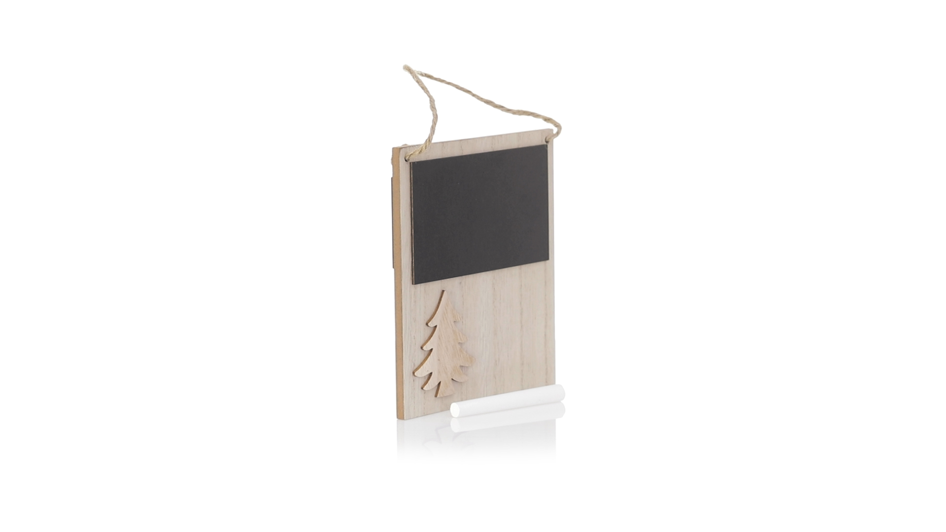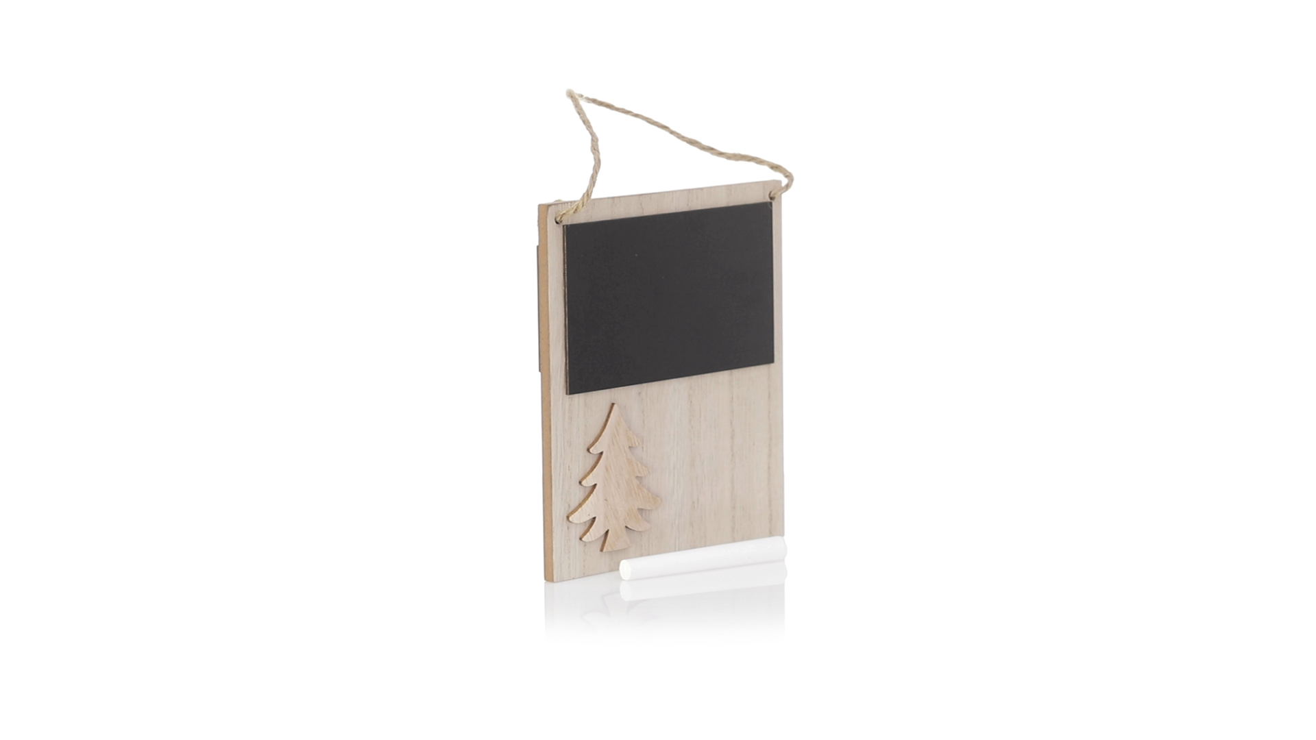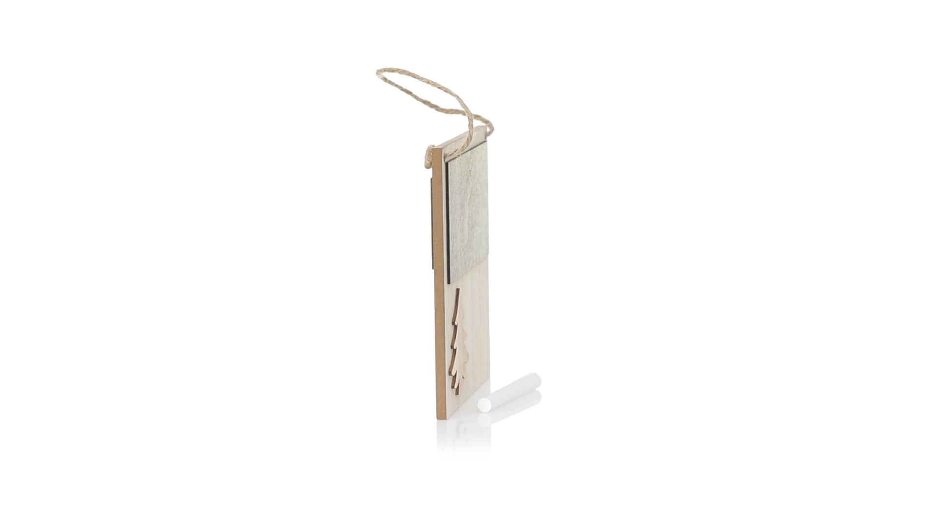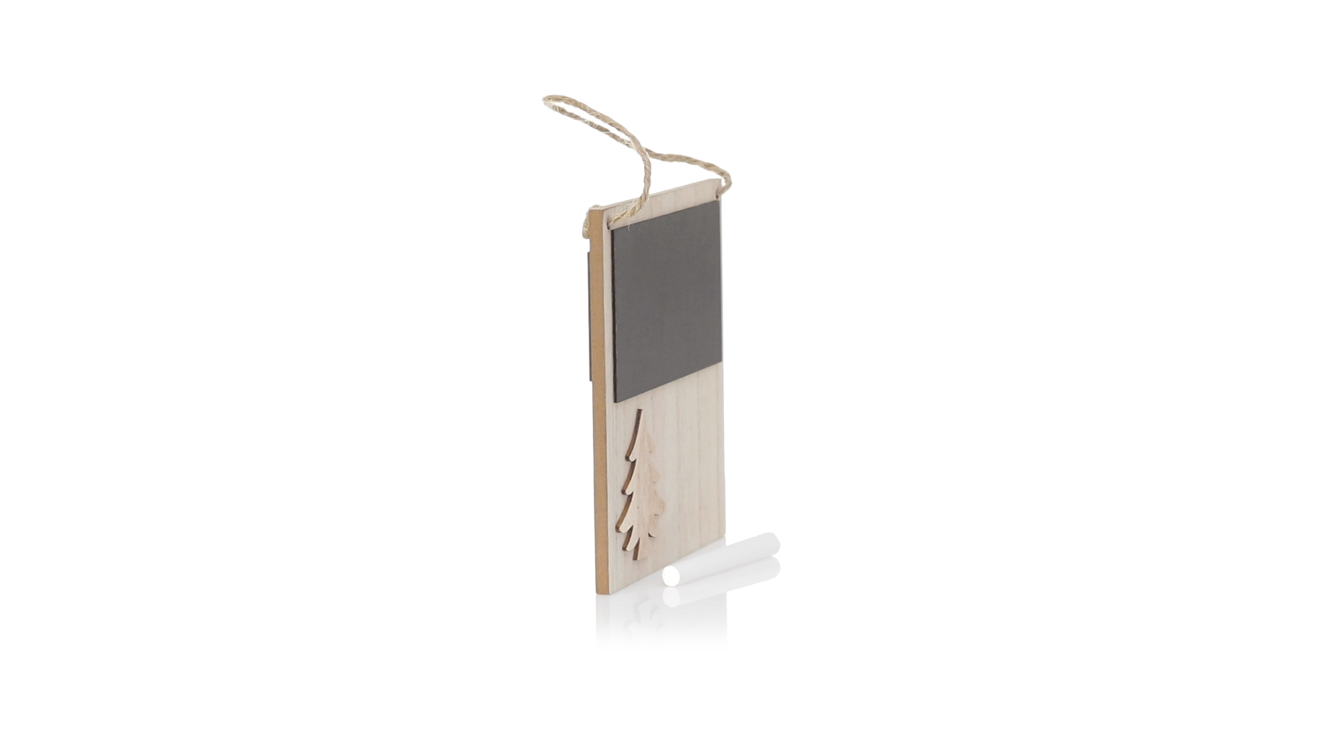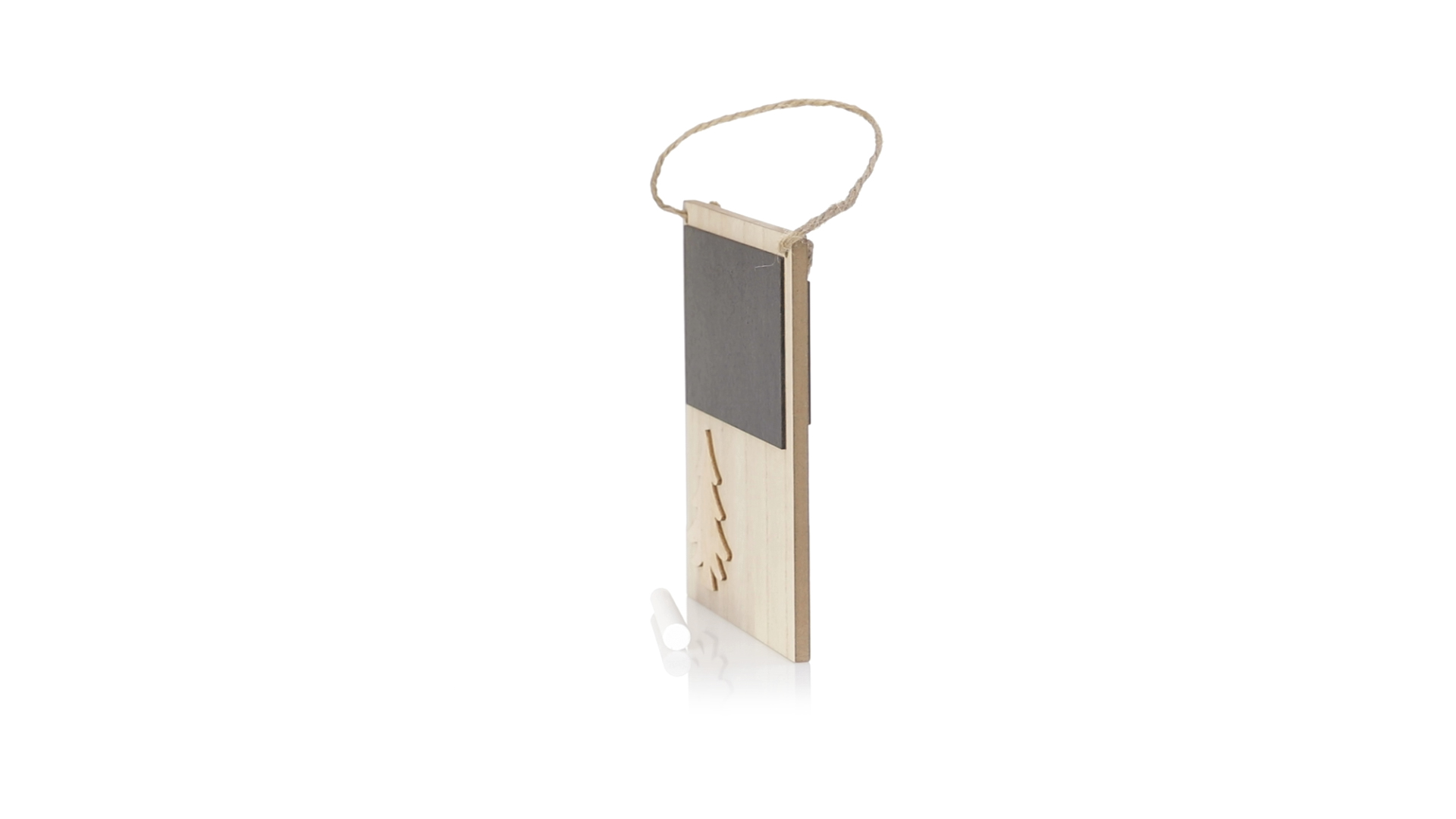 Mit Aufhängeschnur und Magnet auf der Rückseite. Inklusive einer Kreide. Weihnachtsschmuck der Nature Line, mit Schiefer und originellem gestanztem Weihnachtsbaumdesign, aus weichem Holz. Magnetische Rückseite und Jutekordel zum Aufhängen. Inklusive Kreide zum Schreiben. Präsentiert in einem individuellen Beutel.