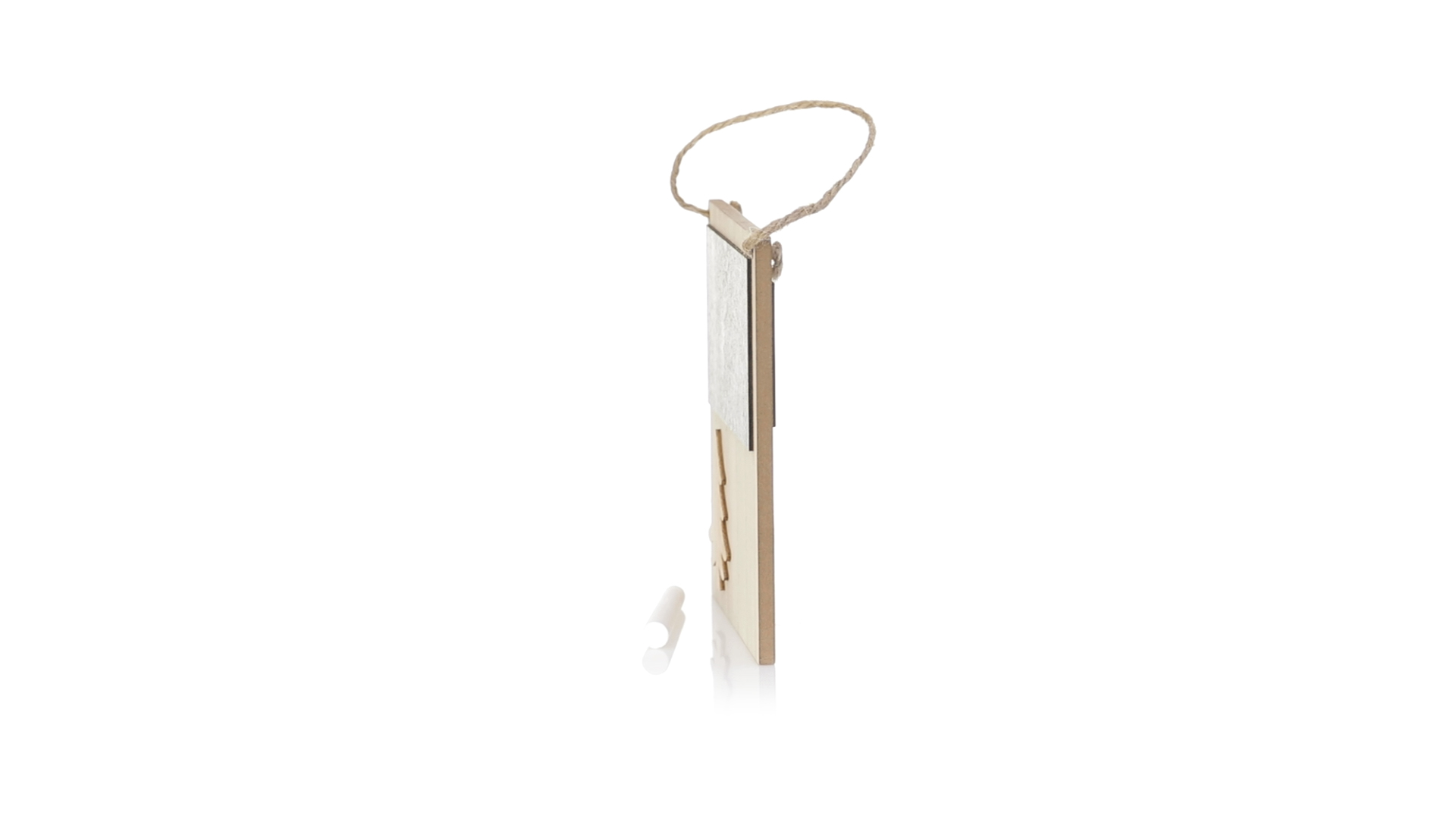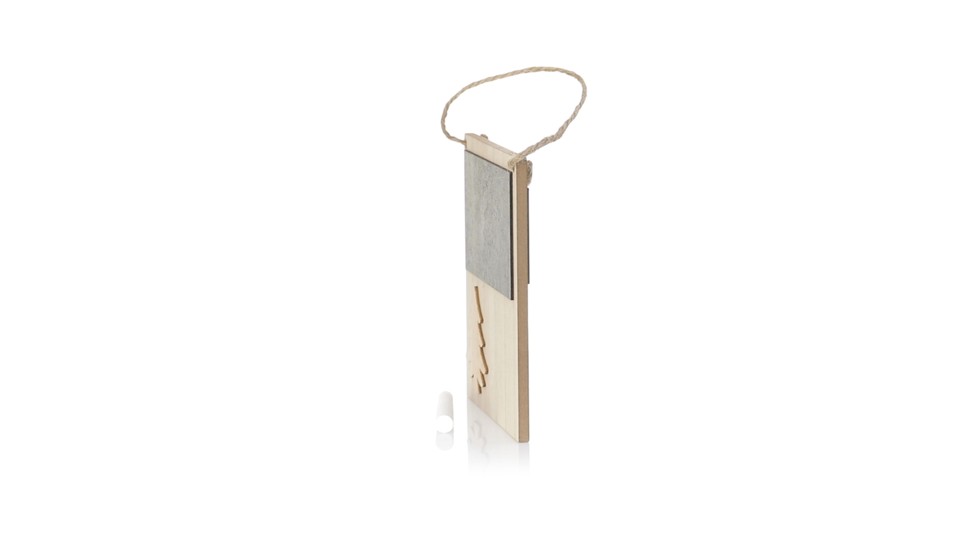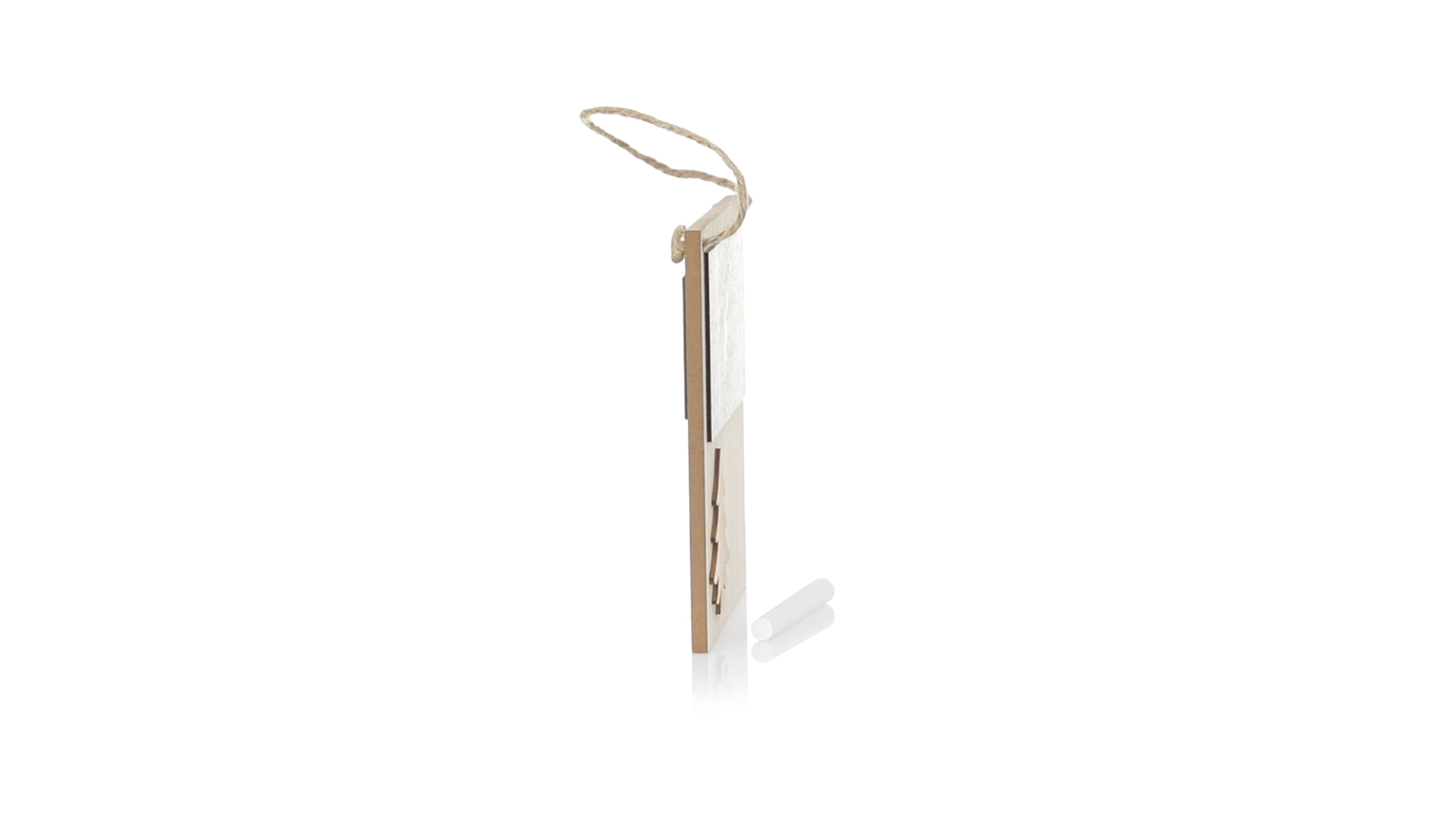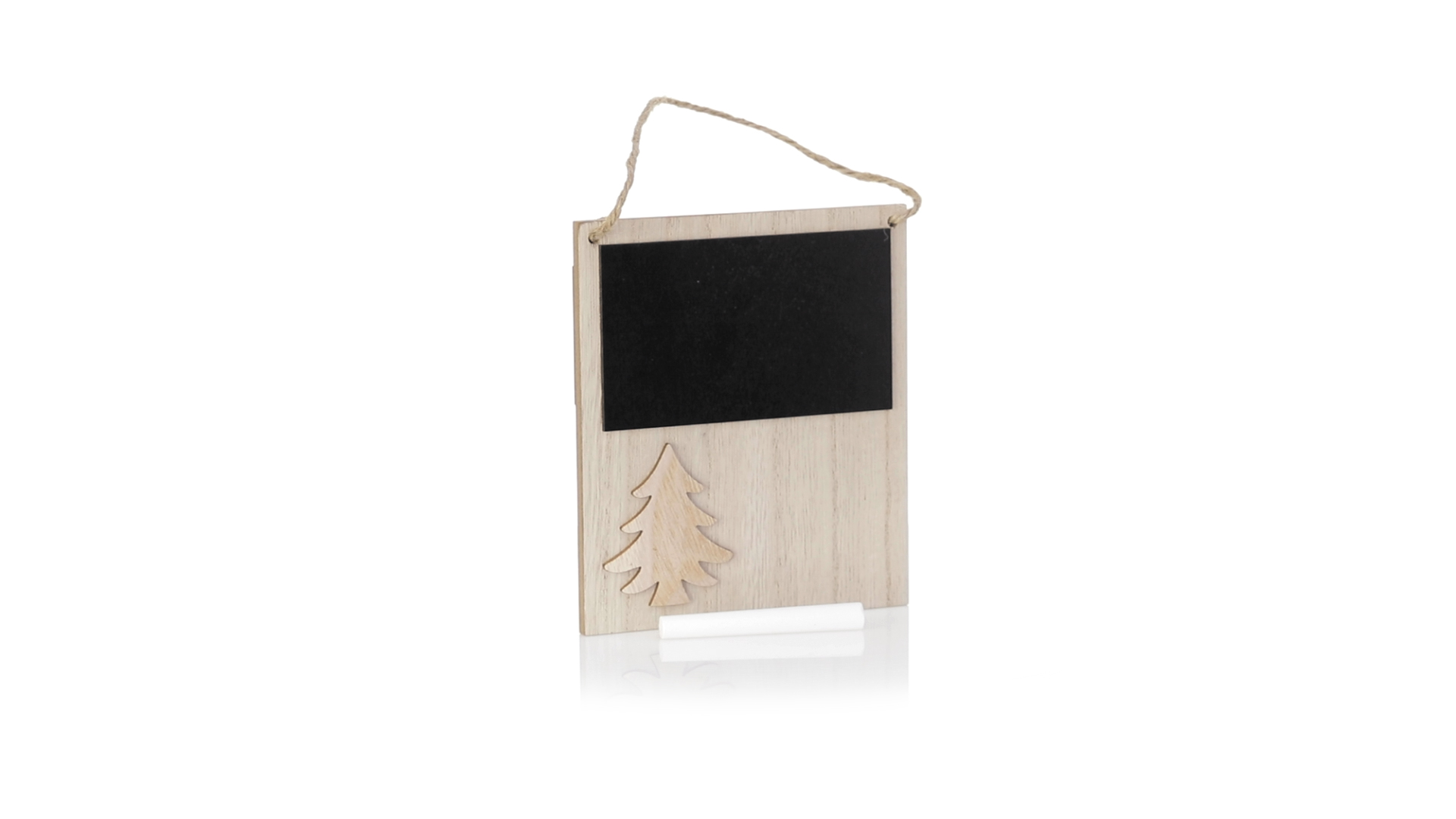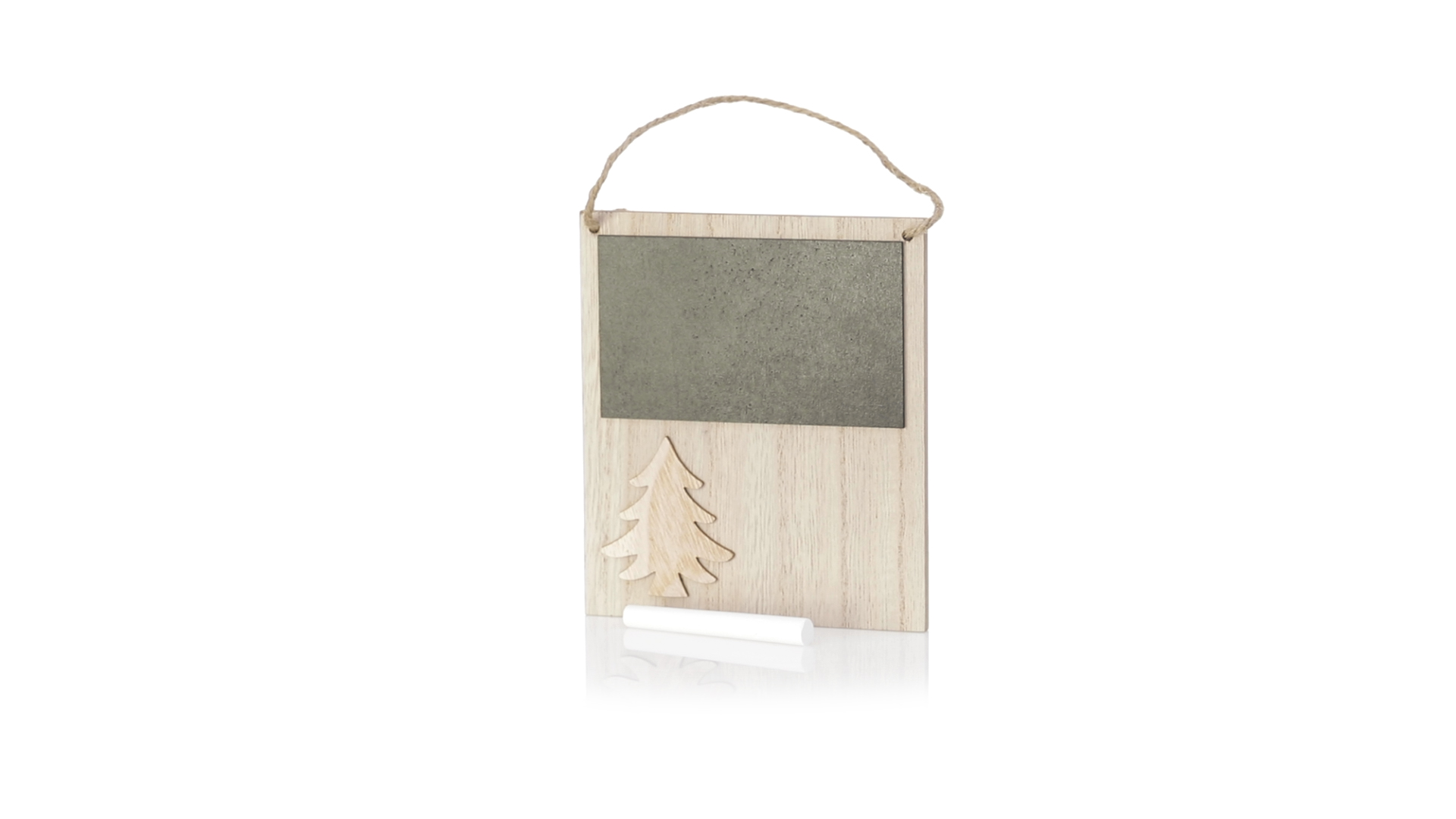 Mit Aufhängeschnur und Magnet auf der Rückseite. Inklusive einer Kreide. Weihnachtsschmuck der Nature Line, mit Schiefer und originellem gestanztem Weihnachtsbaumdesign, aus weichem Holz. Magnetische Rückseite und Jutekordel zum Aufhängen. Inklusive Kreide zum Schreiben. Präsentiert in einem individuellen Beutel.