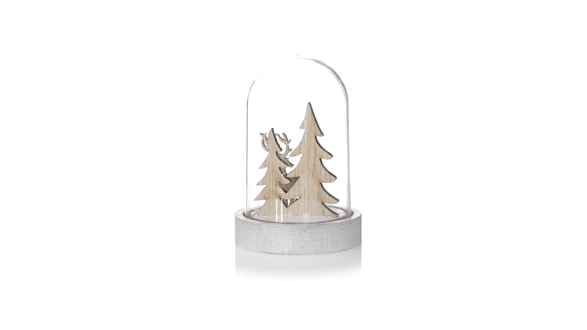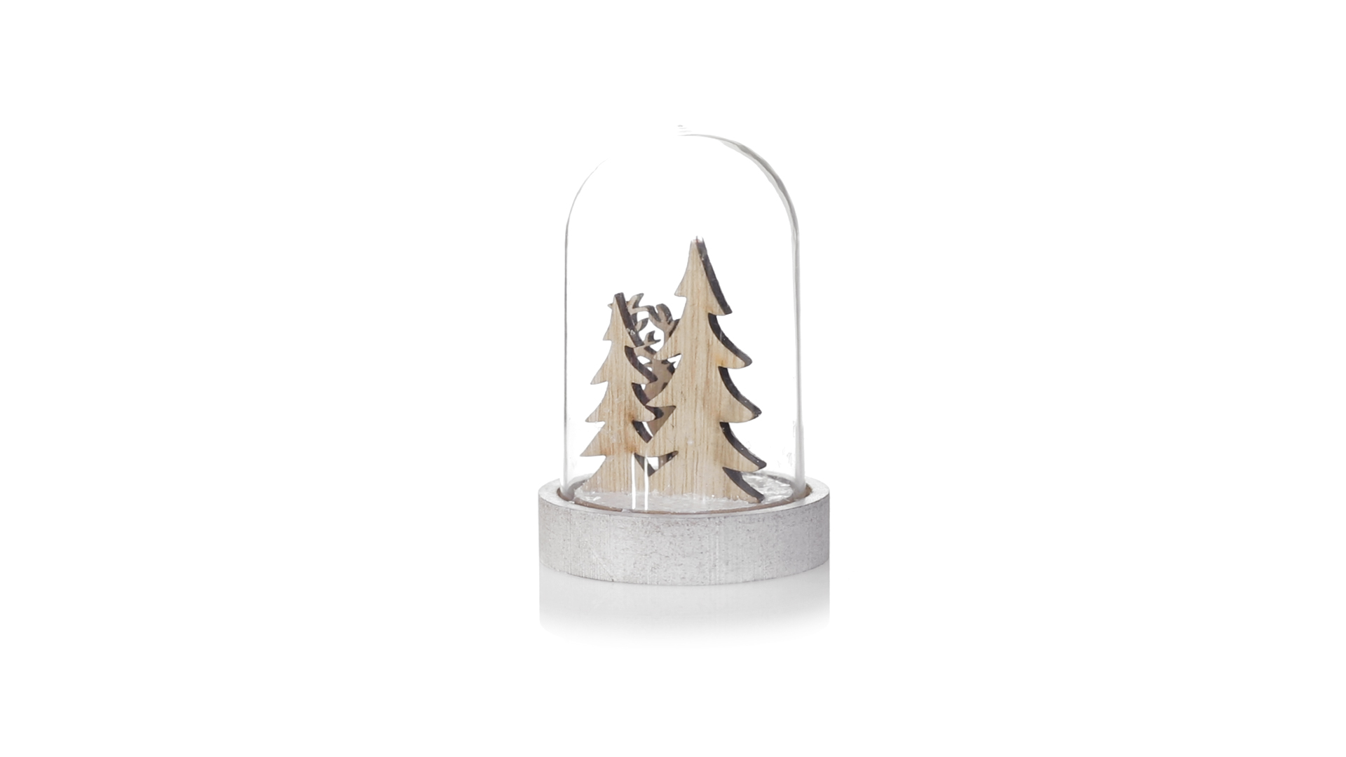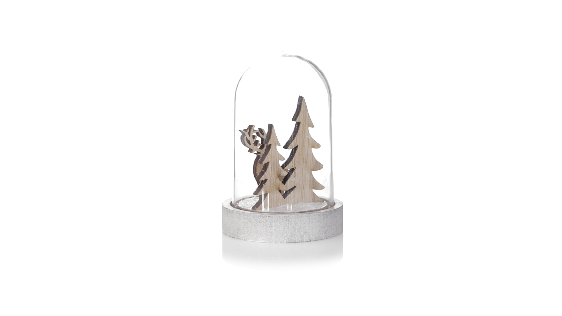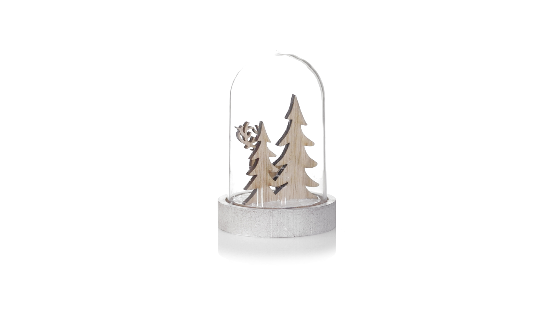 Weihnachtsschmuck mit originellem Design mit Rentier und Weihnachtsbaum im Inneren. Hergestellt aus widerstandsfähigem Acryl, mit einer glatten Holzunterlage zum Bedrucken. Präsentiert in einer individuellen Schachtel in natürlicher Farbe.