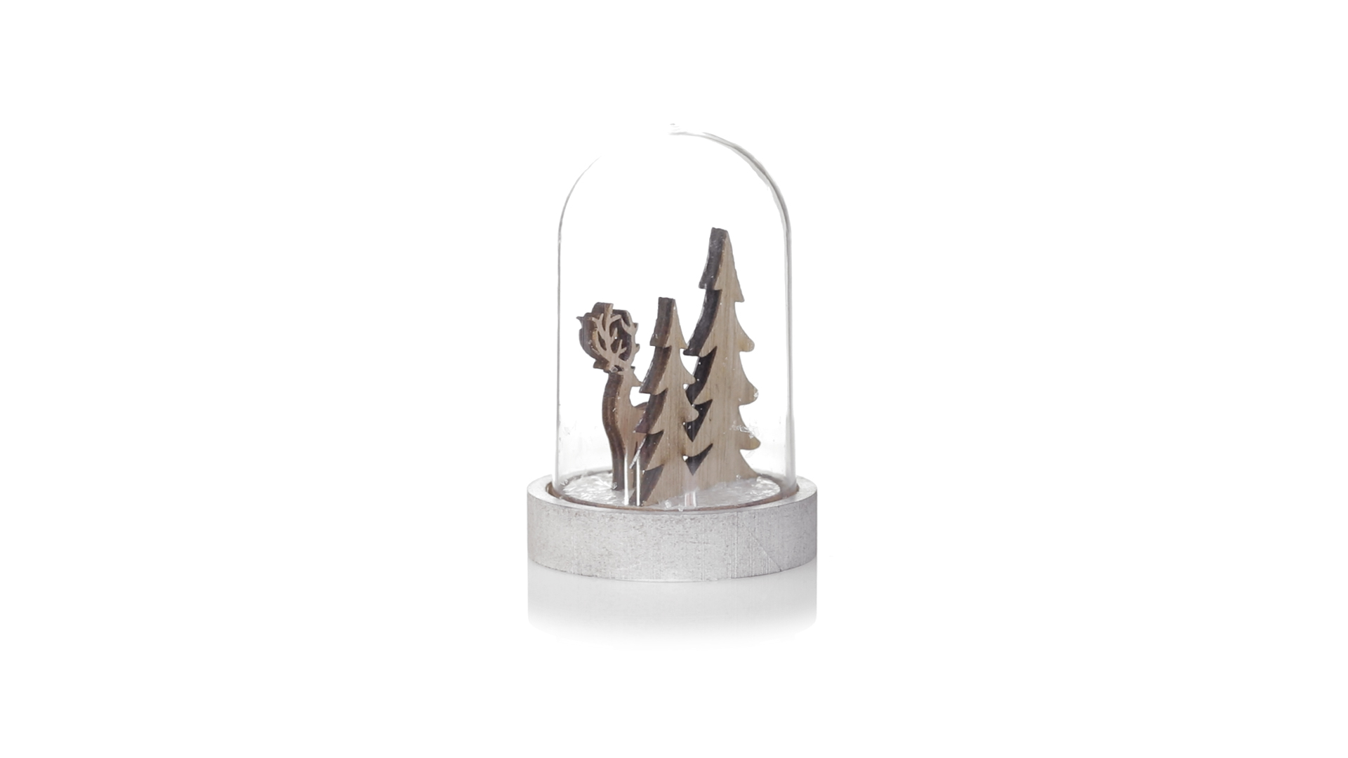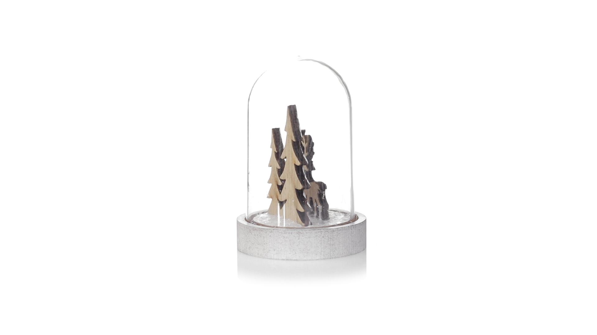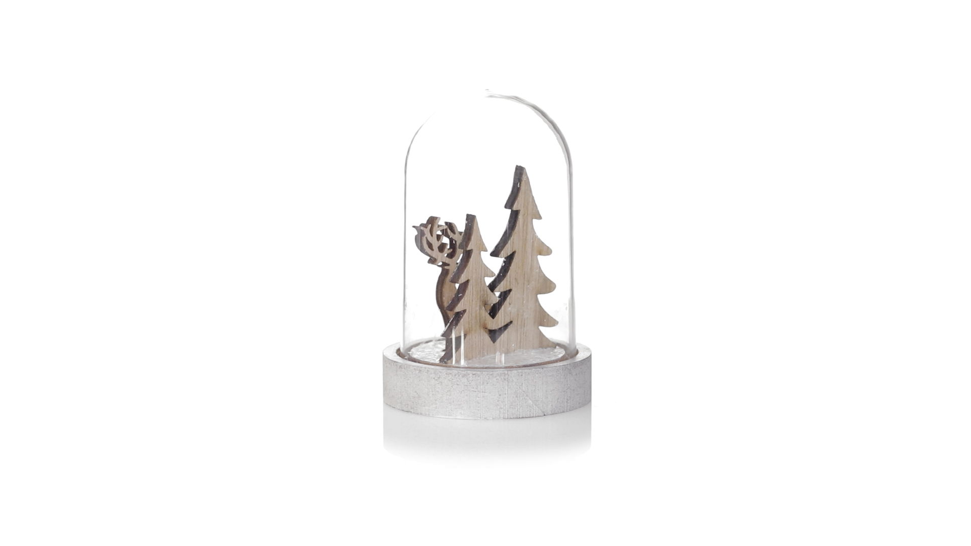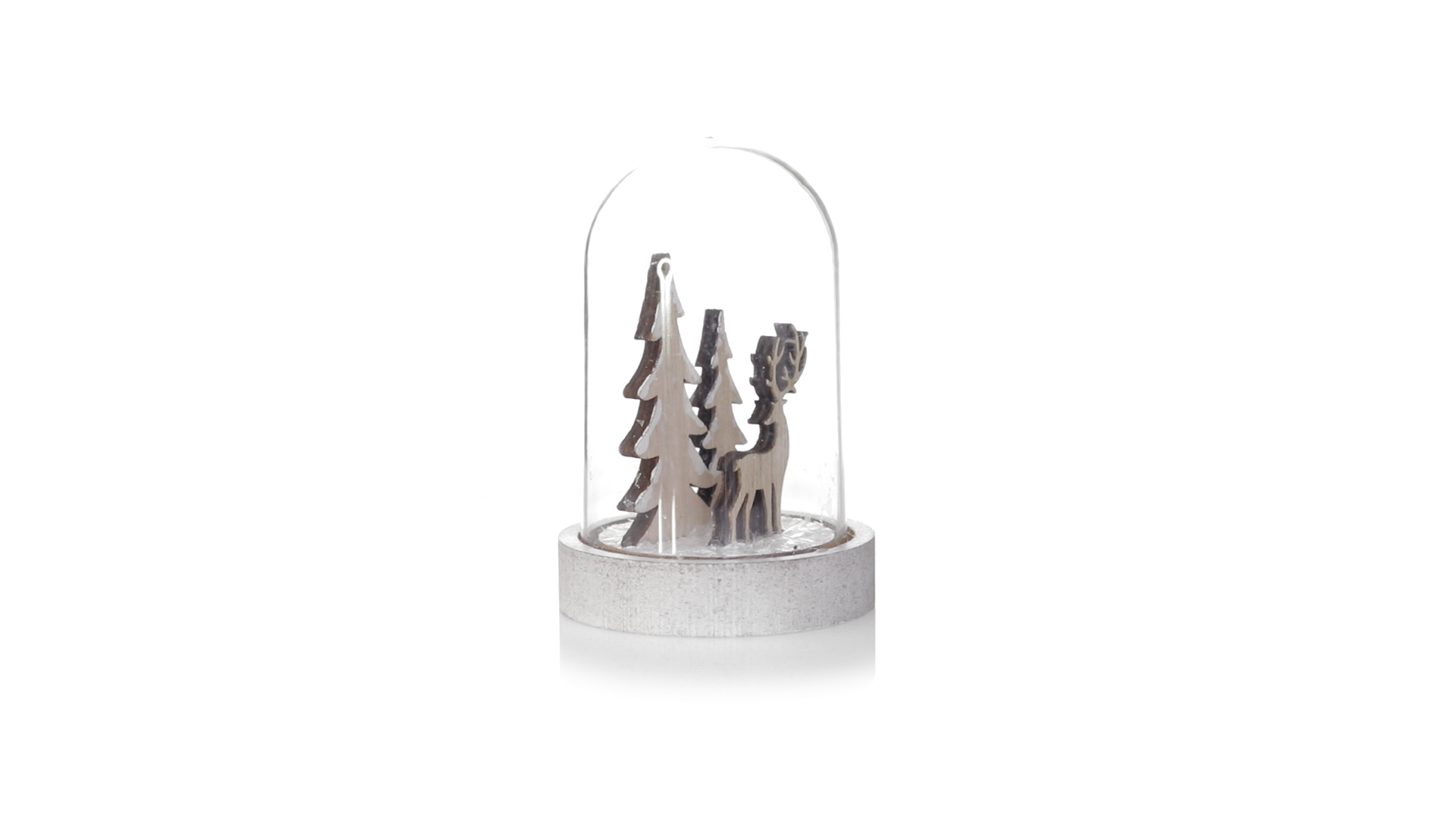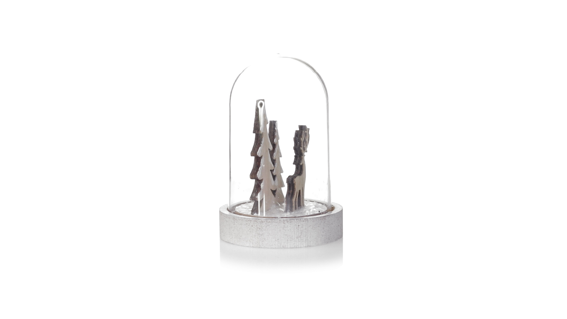 Weihnachtsschmuck mit originellem Design mit Rentier und Weihnachtsbaum im Inneren. Hergestellt aus widerstandsfähigem Acryl, mit einer glatten Holzunterlage zum Bedrucken. Präsentiert in einer individuellen Schachtel in natürlicher Farbe.