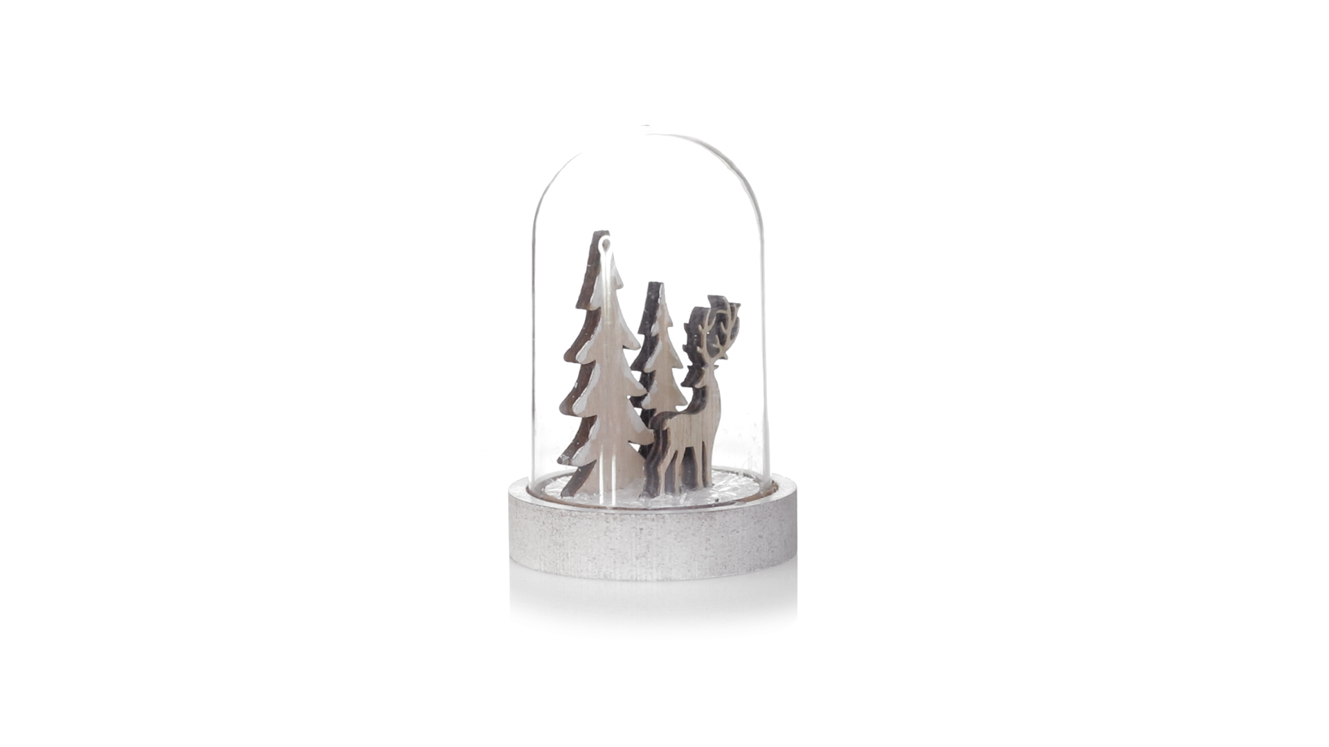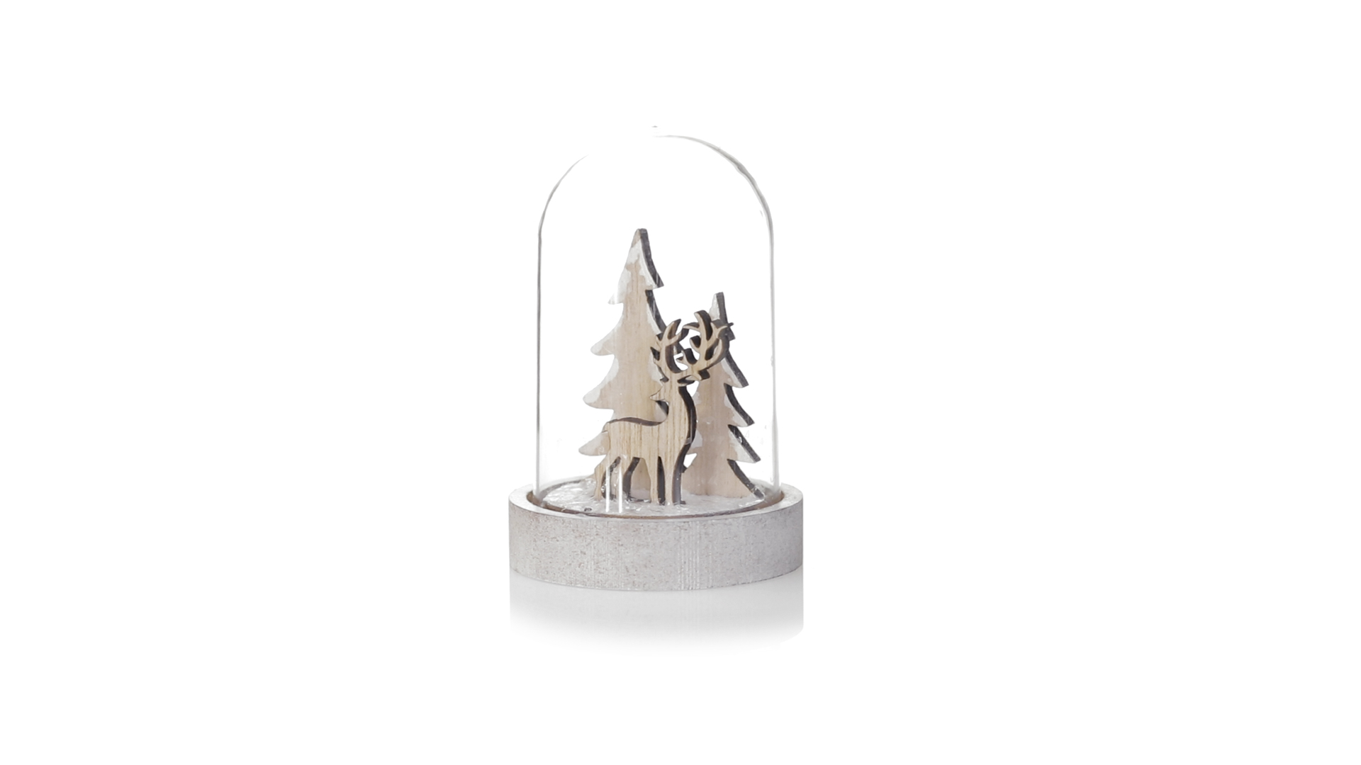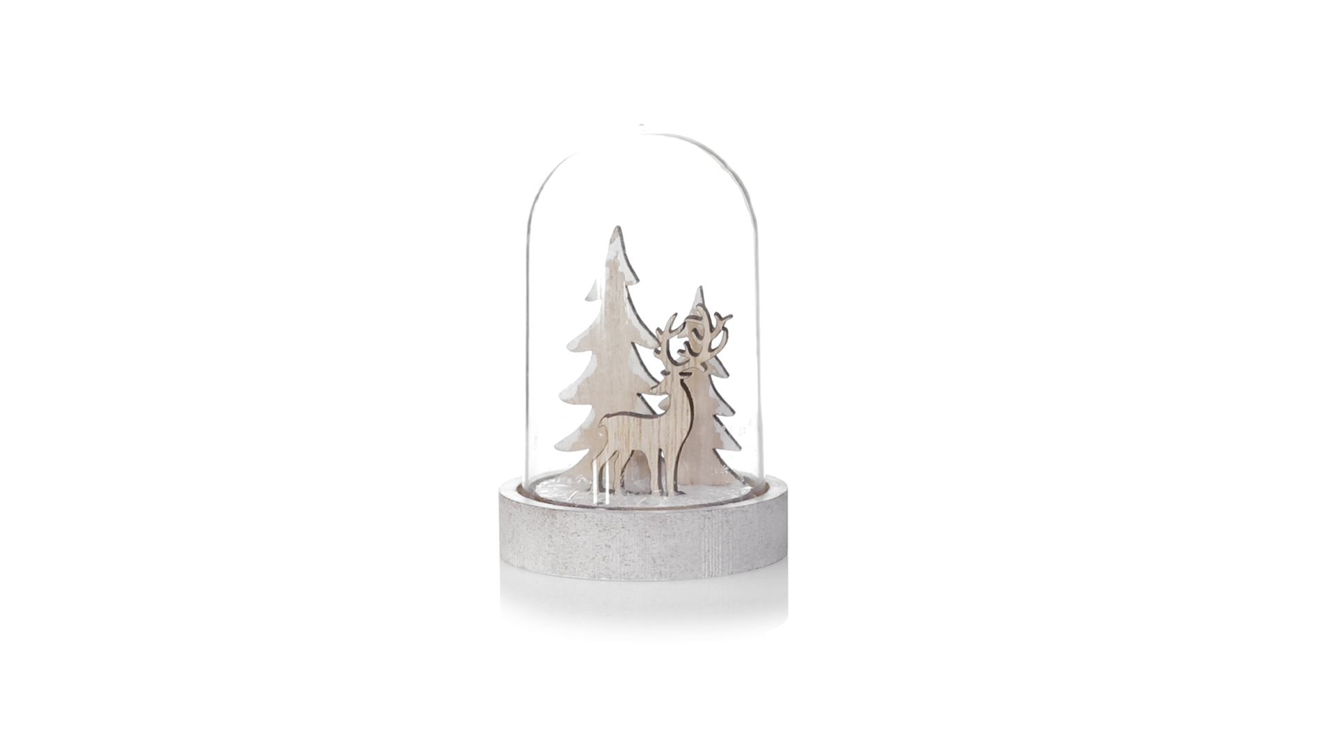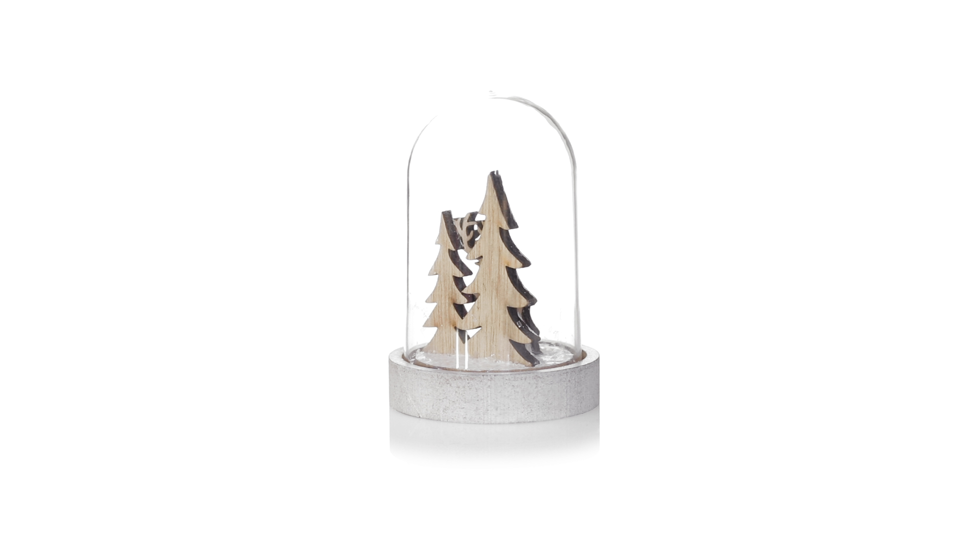 Weihnachtsschmuck mit originellem Design mit Rentier und Weihnachtsbaum im Inneren. Hergestellt aus widerstandsfähigem Acryl, mit einer glatten Holzunterlage zum Bedrucken. Präsentiert in einer individuellen Schachtel in natürlicher Farbe.