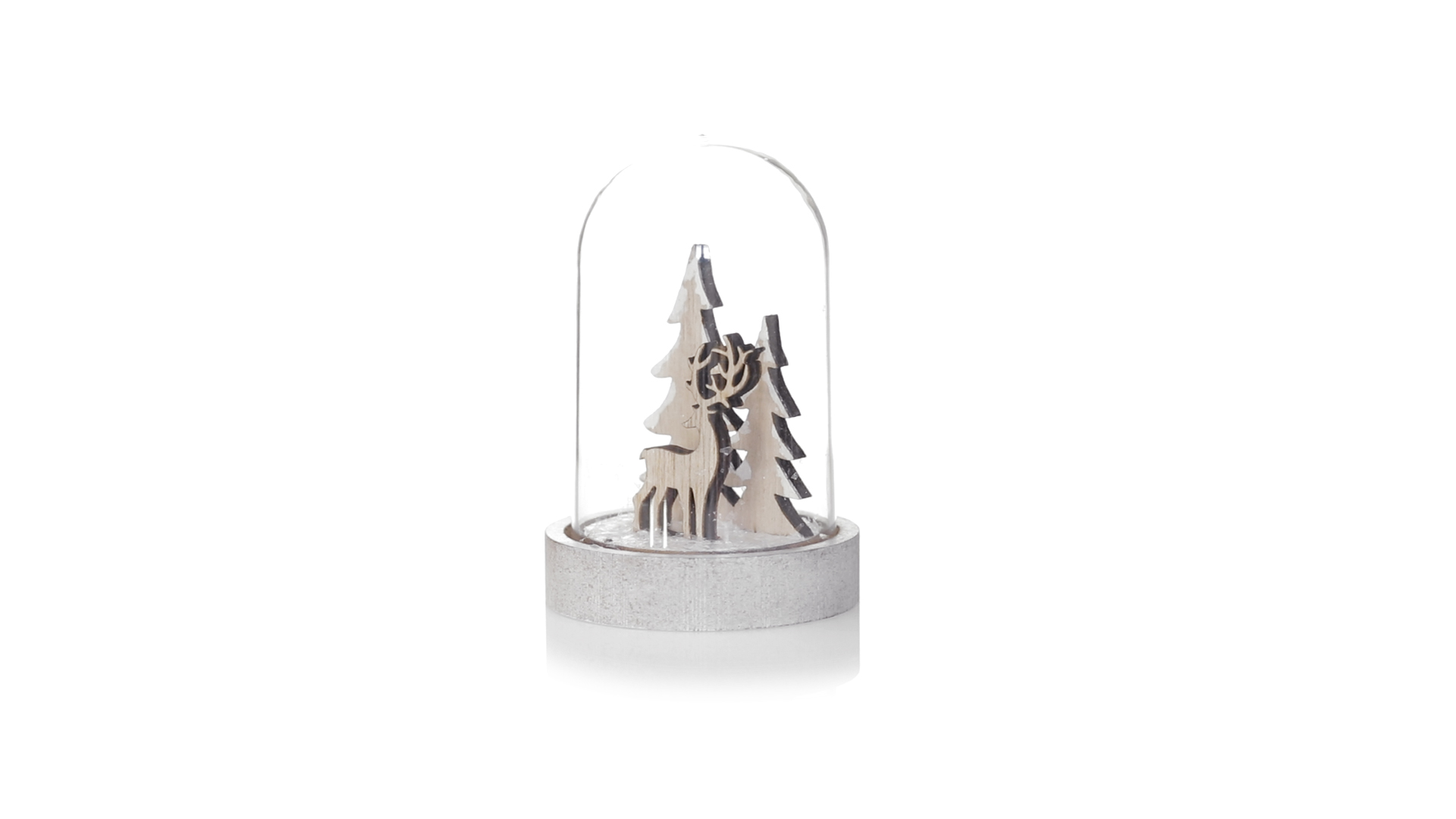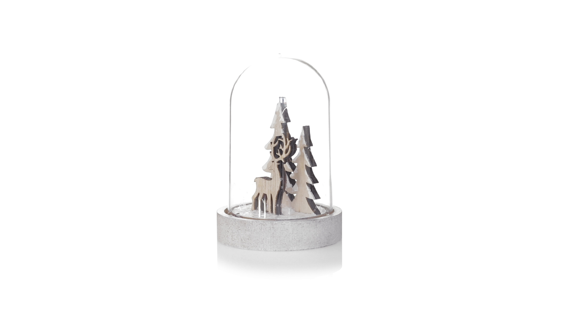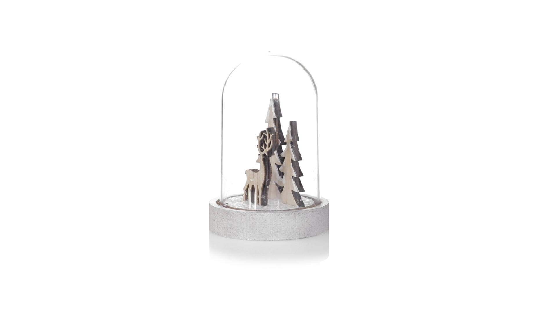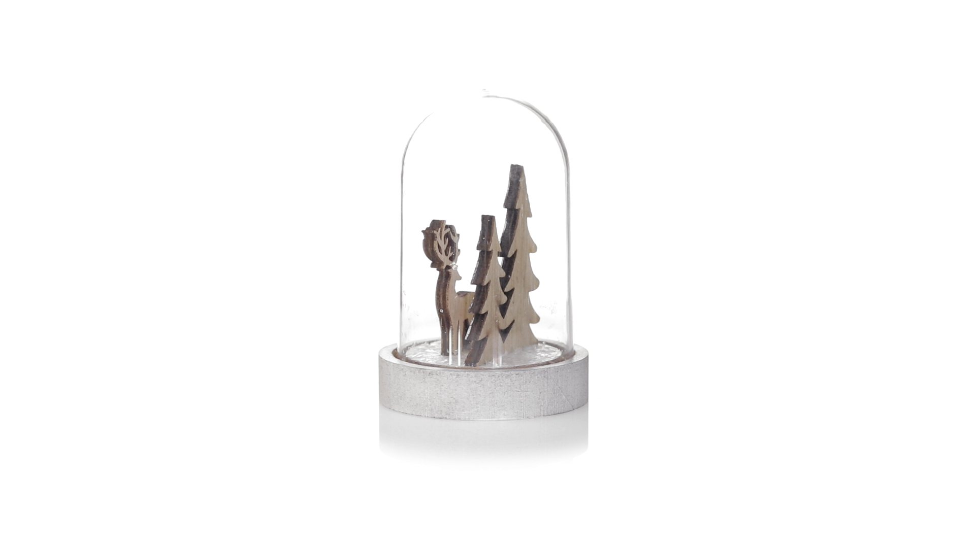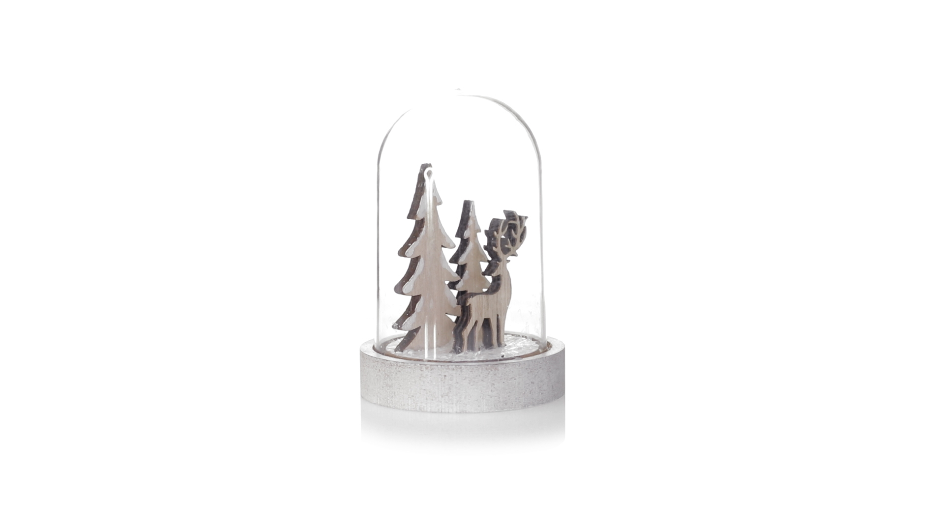 Weihnachtsschmuck mit originellem Design mit Rentier und Weihnachtsbaum im Inneren. Hergestellt aus widerstandsfähigem Acryl, mit einer glatten Holzunterlage zum Bedrucken. Präsentiert in einer individuellen Schachtel in natürlicher Farbe.