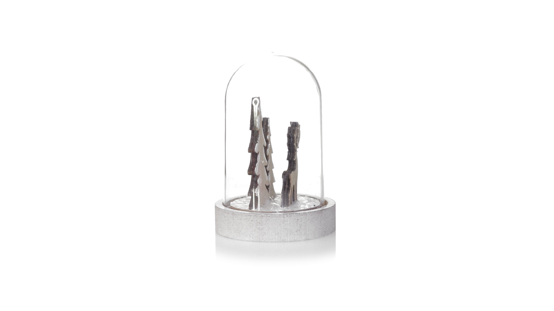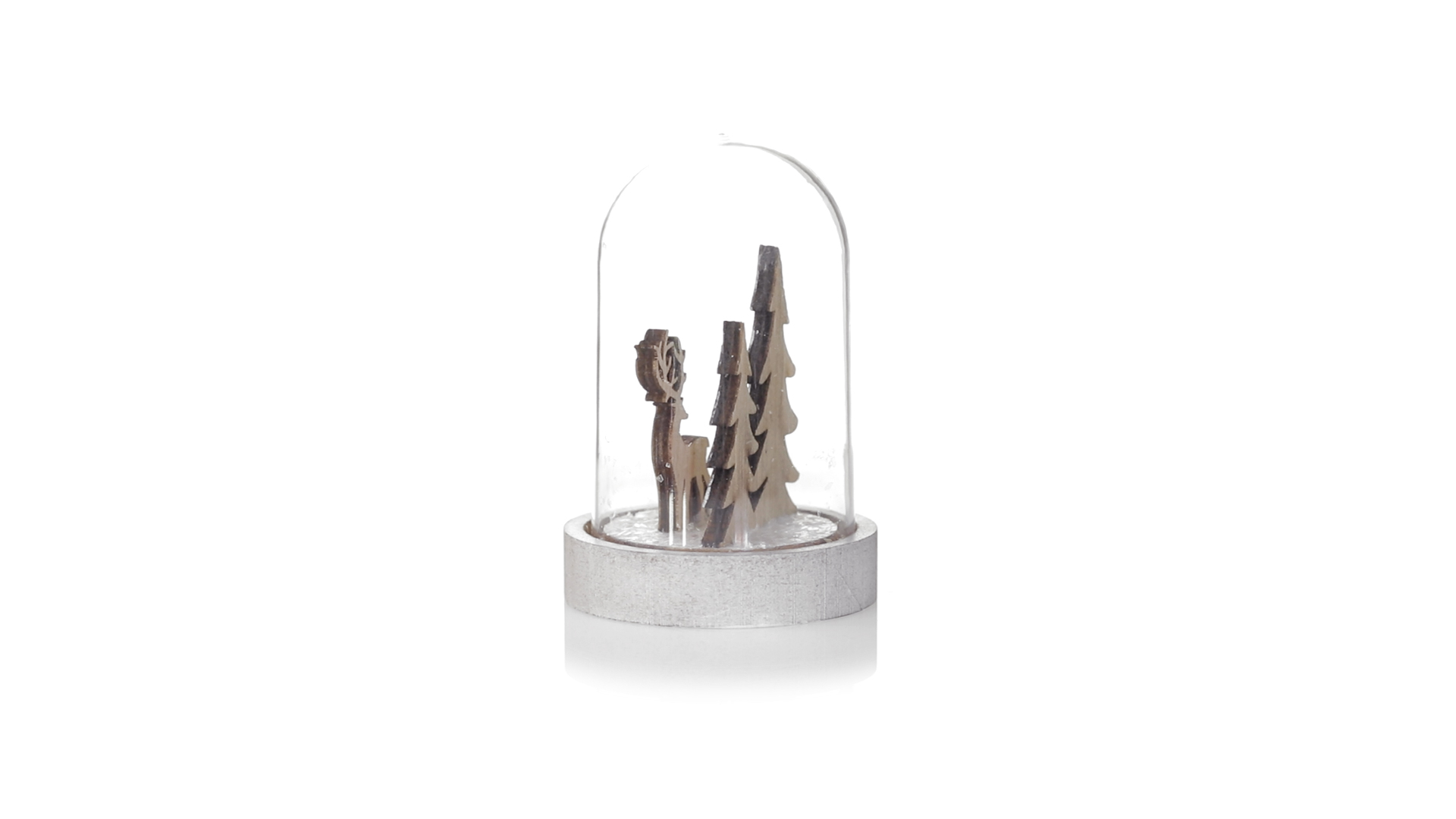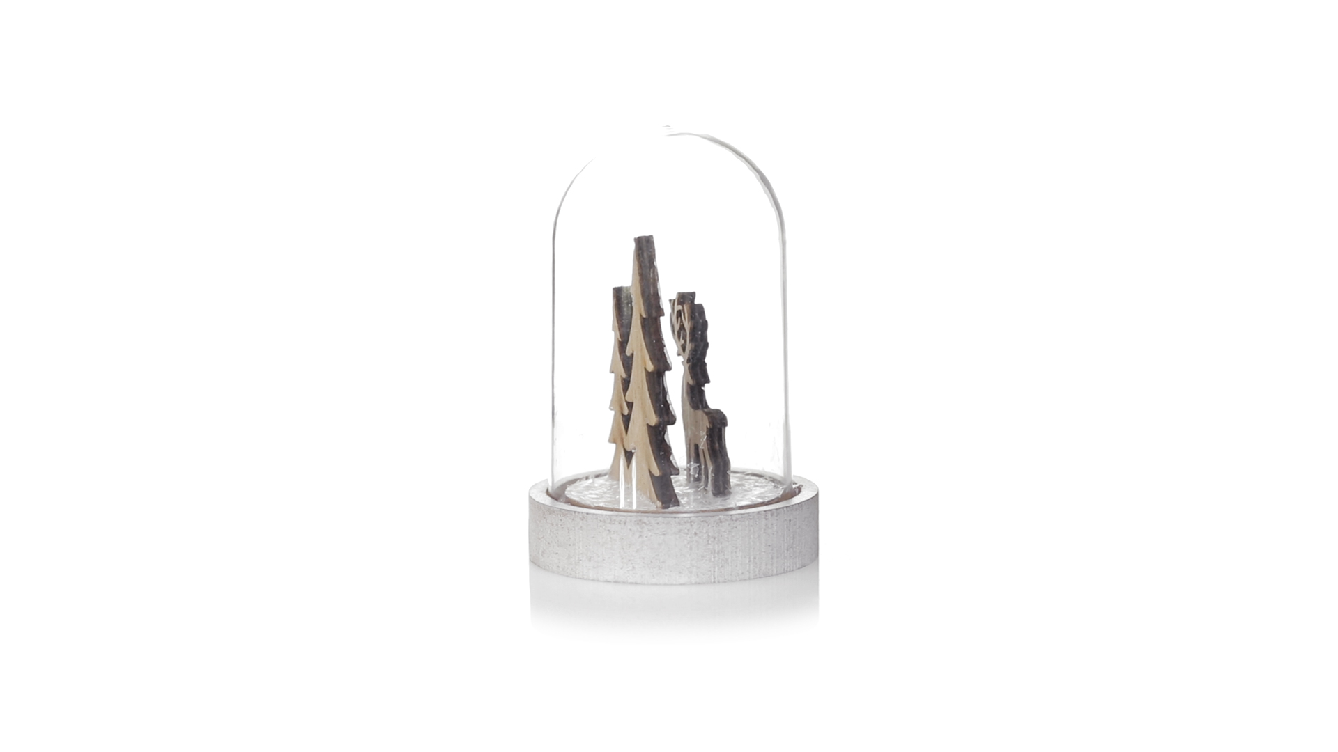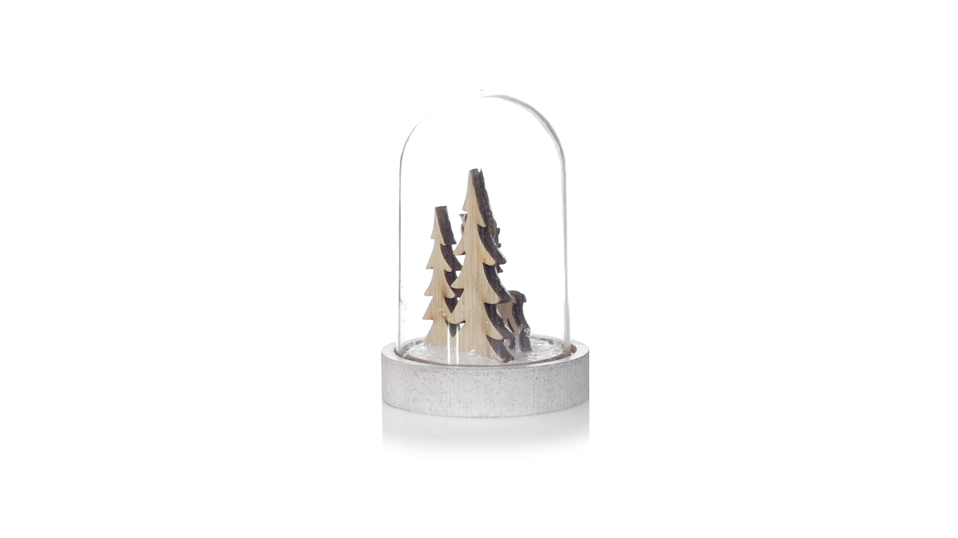 Weihnachtsschmuck mit originellem Design mit Rentier und Weihnachtsbaum im Inneren. Hergestellt aus widerstandsfähigem Acryl, mit einer glatten Holzunterlage zum Bedrucken. Präsentiert in einer individuellen Schachtel in natürlicher Farbe.