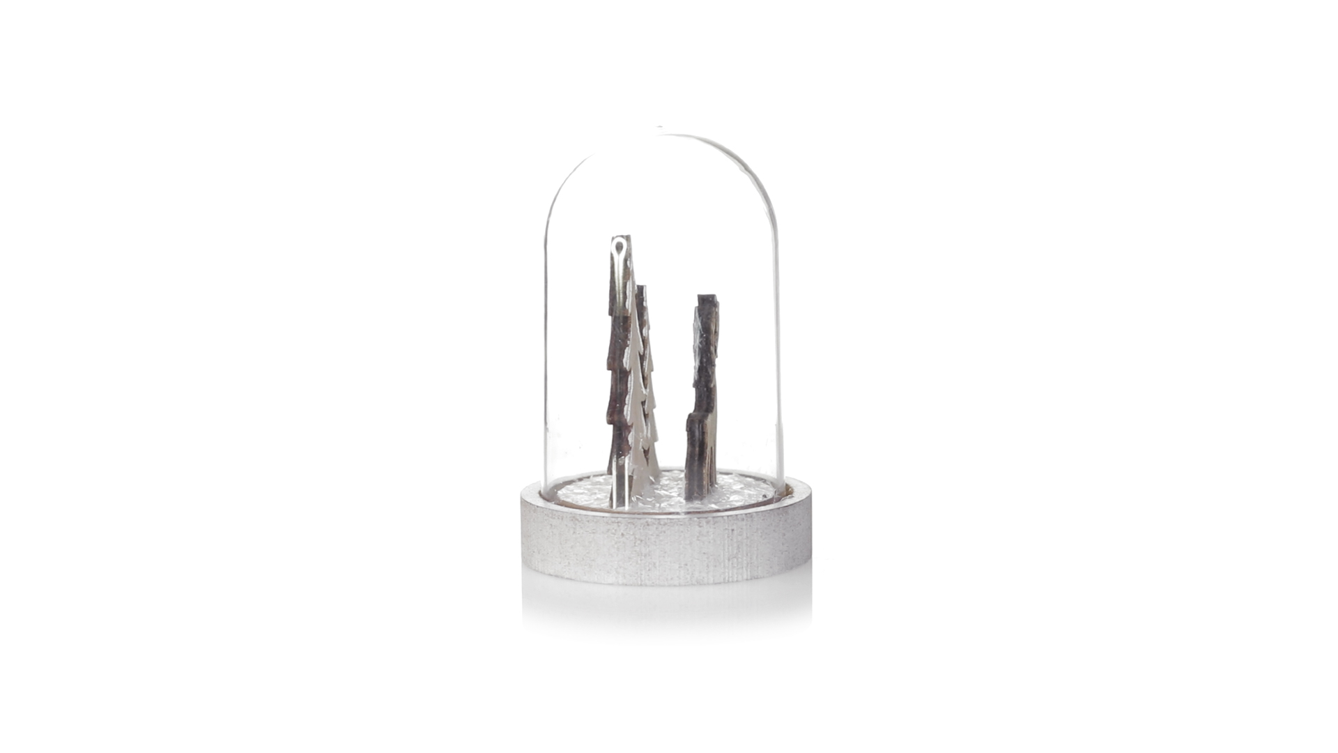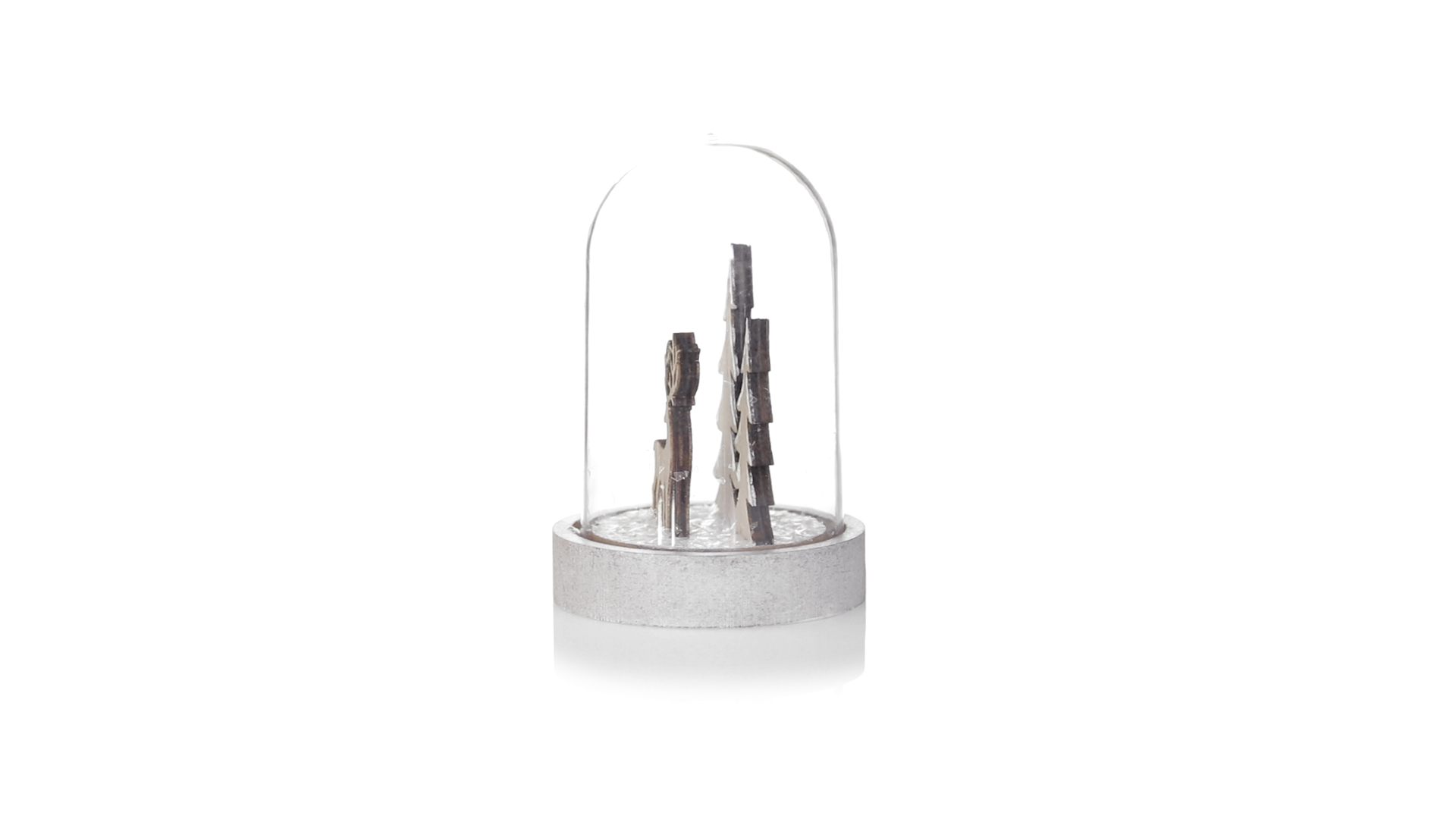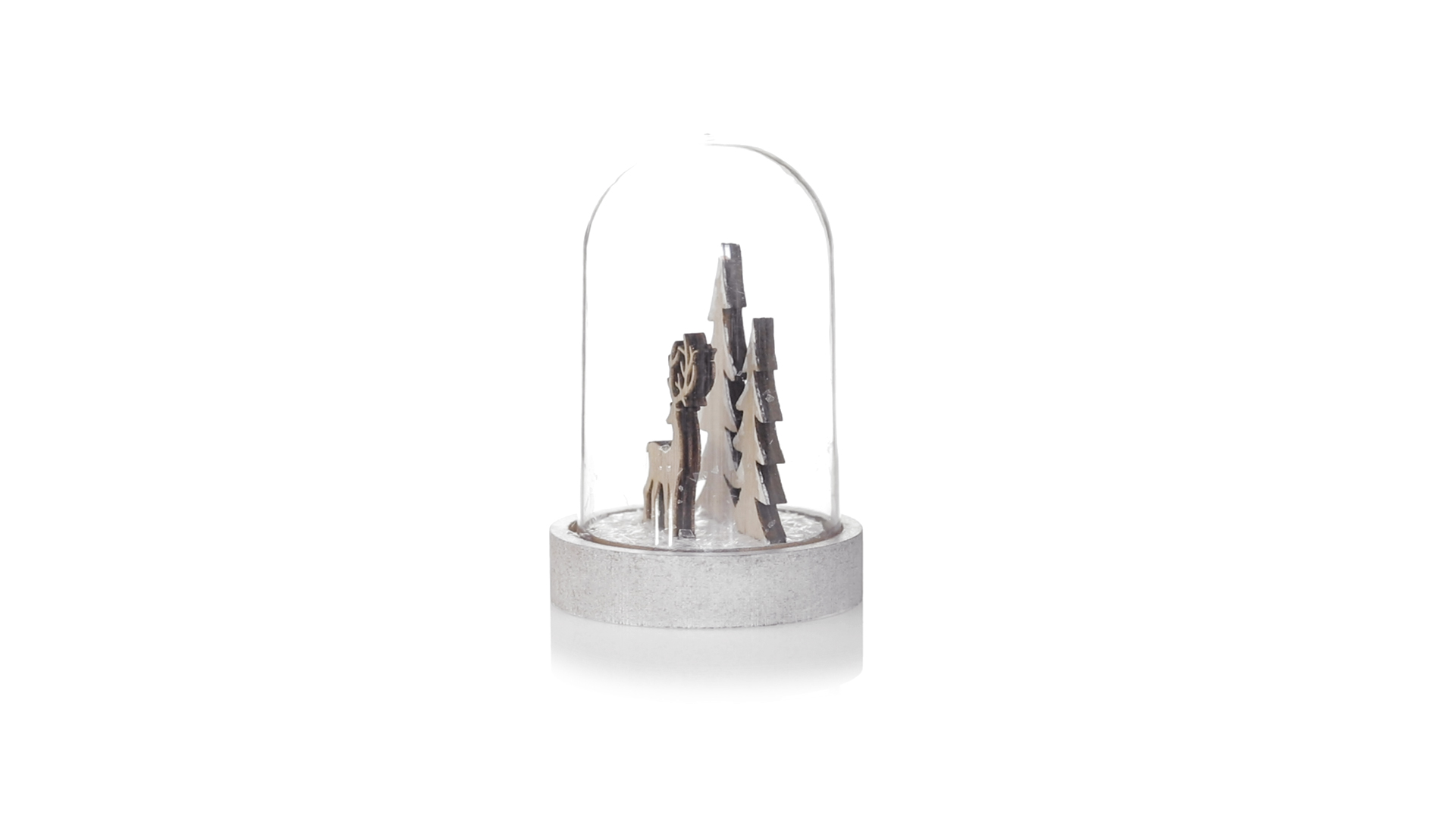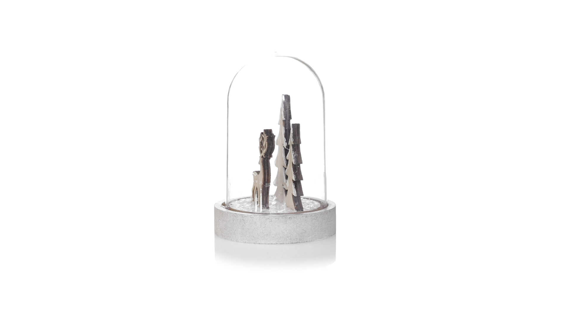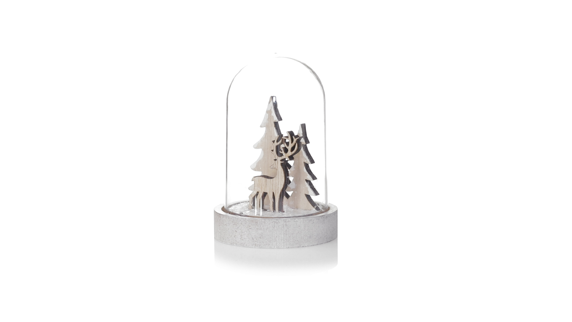 Weihnachtsschmuck mit originellem Design mit Rentier und Weihnachtsbaum im Inneren. Hergestellt aus widerstandsfähigem Acryl, mit einer glatten Holzunterlage zum Bedrucken. Präsentiert in einer individuellen Schachtel in natürlicher Farbe.