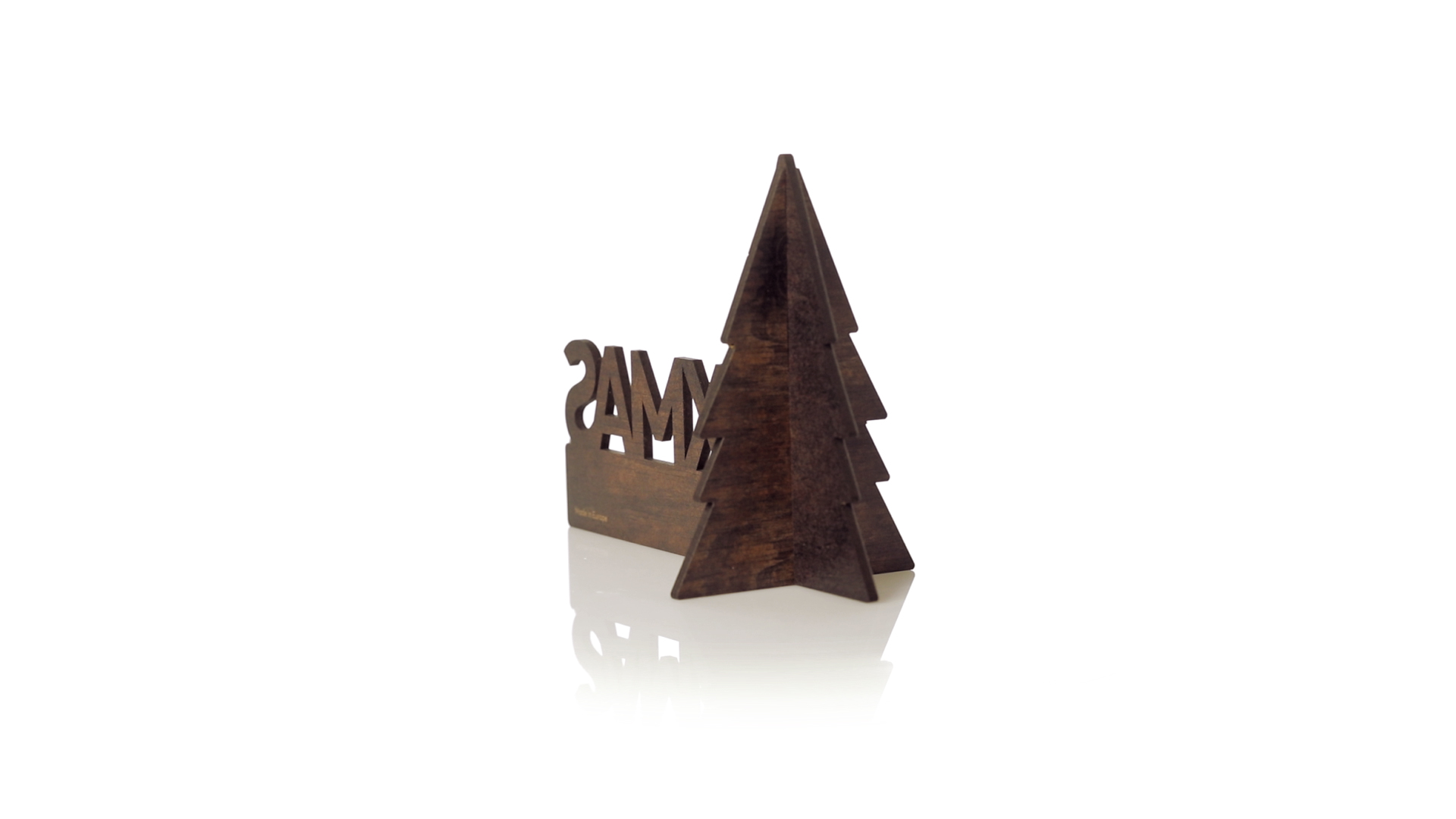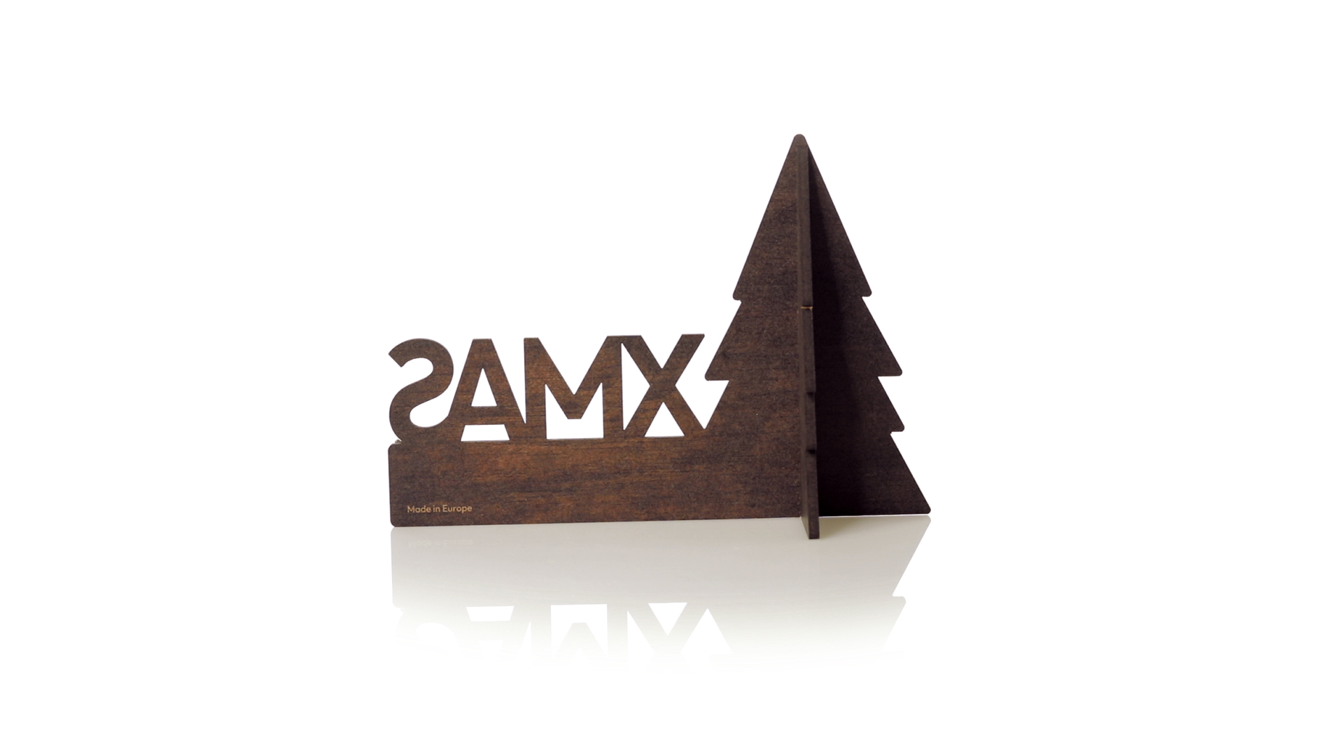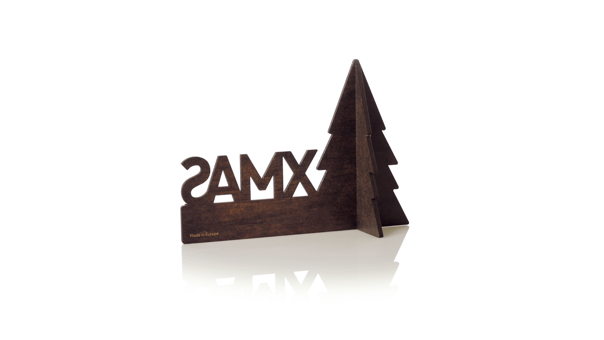 Weihnachtsschmuck mit Weihnachtsbaummotiv, aus Naturholz, mit gestanztem XMAS-Text und origineller Bicolor-Beschichtung. Grosse Brandingfläche, einfache Montage und unverwechselbares Made in Europe.