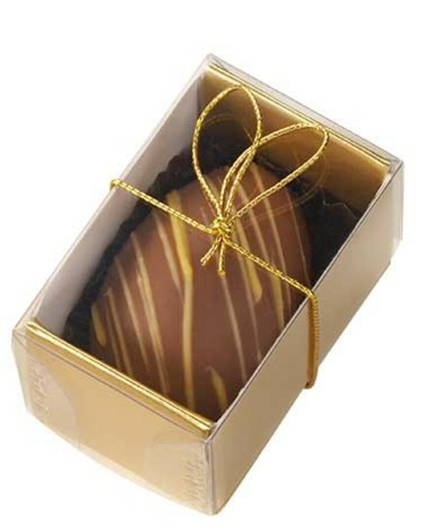 Dieses Osterpraliné ist eine exklusive mini Pralinenschachtel, die sich perfekt für die Osterzeit eignet. Die Schachtel beinhaltet ein einzelnes köstliches Ei-Trüffelpraliné sowie ein kleines Schokoladen Logo Täfelchen mit den Massen 4x3 cm und einem Gewicht von ca. 7g. Sie bietet nicht nur ein visuelles Highlight durch das individuelle Schokoladenlogo, sondern auch einen Genussmoment mit der feinen Eier-Trüffelpraline. Diese exquisite Pralinenschachtel ist die ideale Geschenkidee für Ostern und eignet sich als Präsent für Ihre Kunden oder Mitarbeiter. Genießen Sie handgefertigte Qualität und unvergleichlichen Geschmack in jeder Ecke dieser festlich gestalteten Pralinenschachtel.