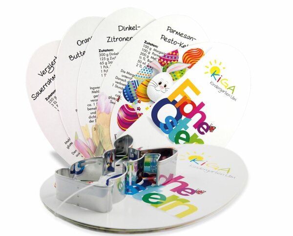 Gerade für die Kleinen ist Ostern ein schönes Fest. Schaffe tolle Erinnerungen und backe auch an Ostern für die Grossen und Kleinen Kekse? Die Ideen für die Rezepturen findest Du direkt im Rezeptblock (inklusive). Dekoriere dabei die Kekse nach belieben und schmücke gleichzeitg die Ostertafel. Das Deckblatt des Rezeptblocks kann sogar mit einer Werbebotschaft gestaltet werden. Weitere und tolle Ostergeschenke gibr es hier bei uns im Shop.