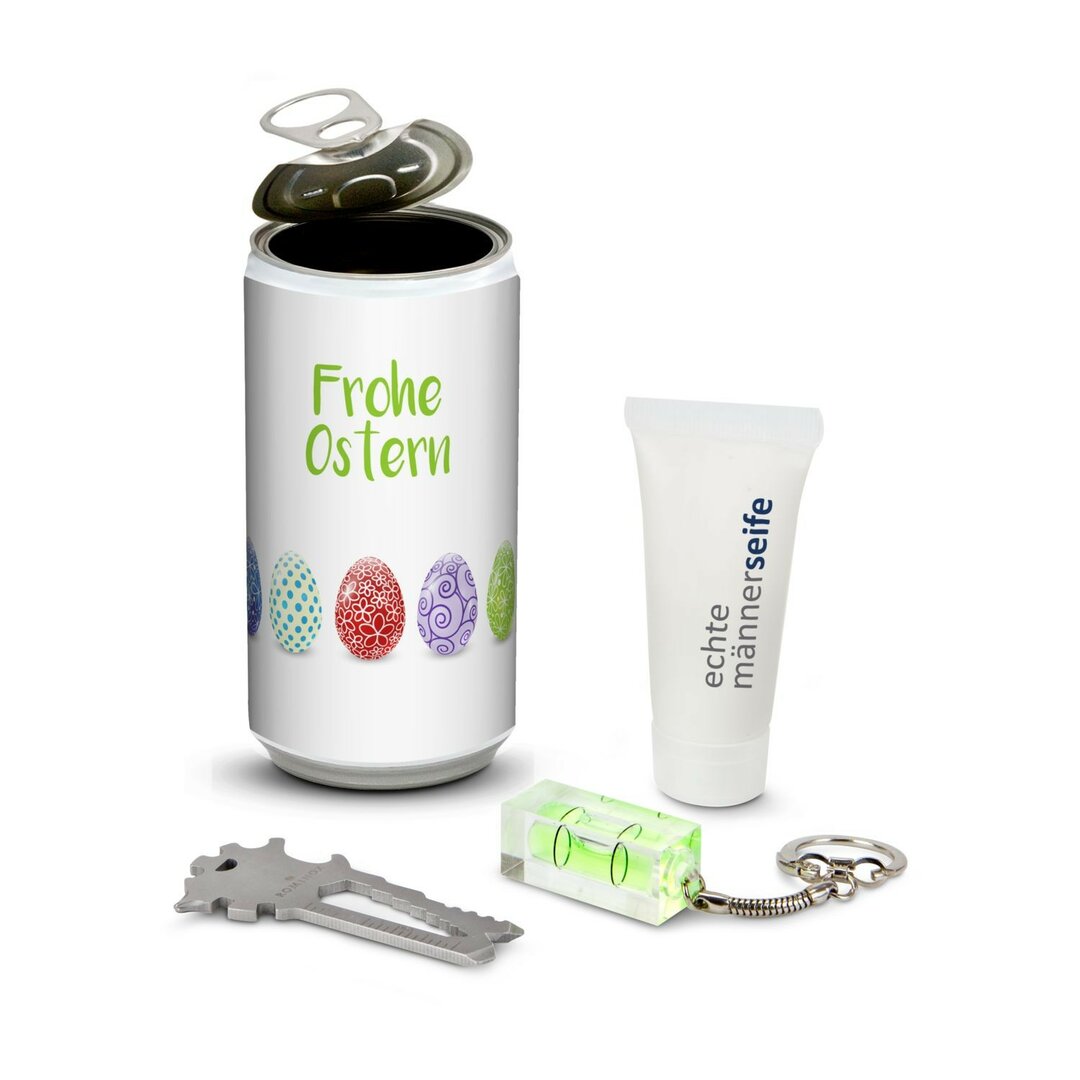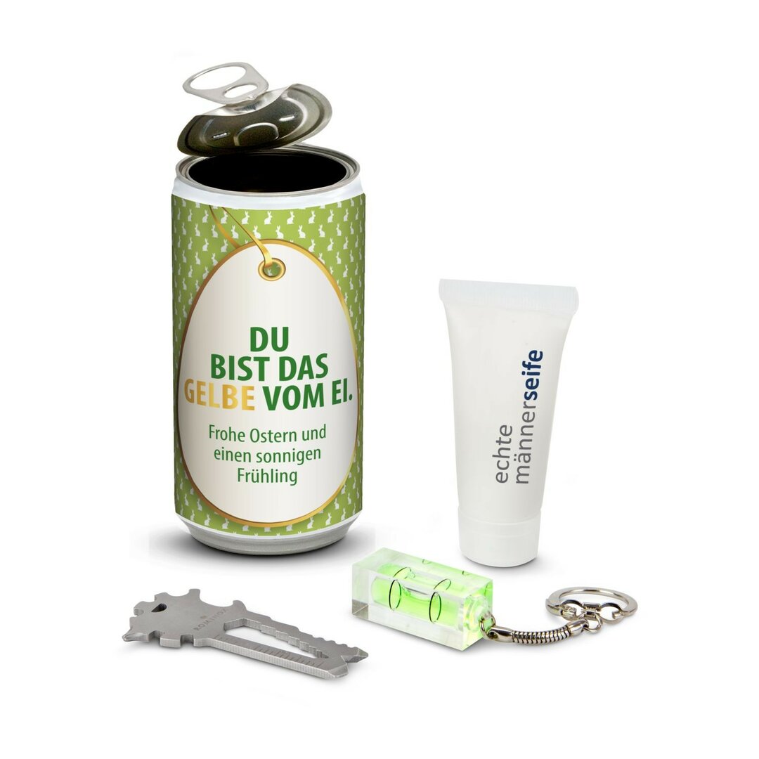 Was nicht passt, wird passend gemacht - eine echte Männerdose! Ob für den Kunden, Kollegen, Mitarbeiter oder Kumpel: mit dieser Dose machen Sie jeden Mann glücklich. Passend für viele Anlässe wie z. B. Ostern? Der Inhalt: ein kreatives Multitool (sortiert) als Schlüsselanhänger mit 18+ Funktionen und Key Tool Funktionsbeschreibung (verschiedene Designs je nach Verfügbarkeit), eine Mini Wasserwaage und eine 20 ml Tube Handwaschpaste. An die Werkzeuge, fertig, los! Weitere tolle Geschenkideen findet Ihr bei uns im Shop