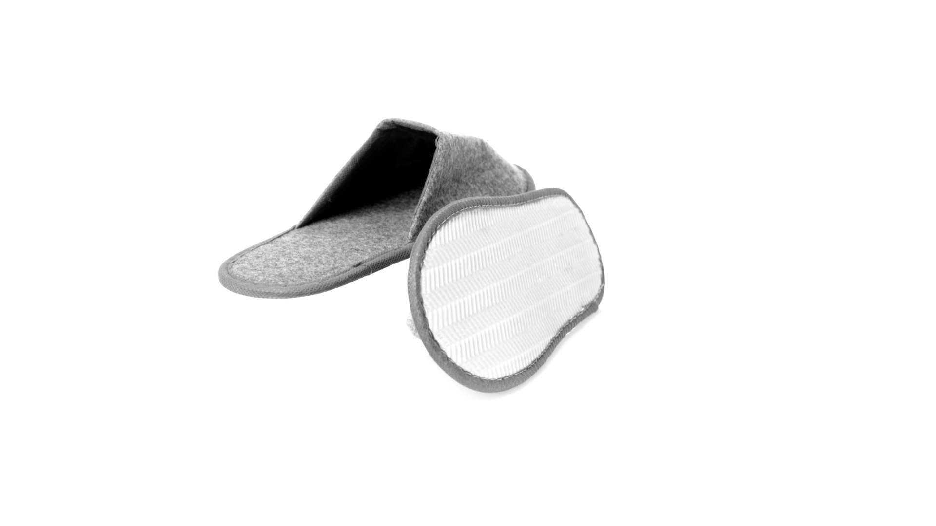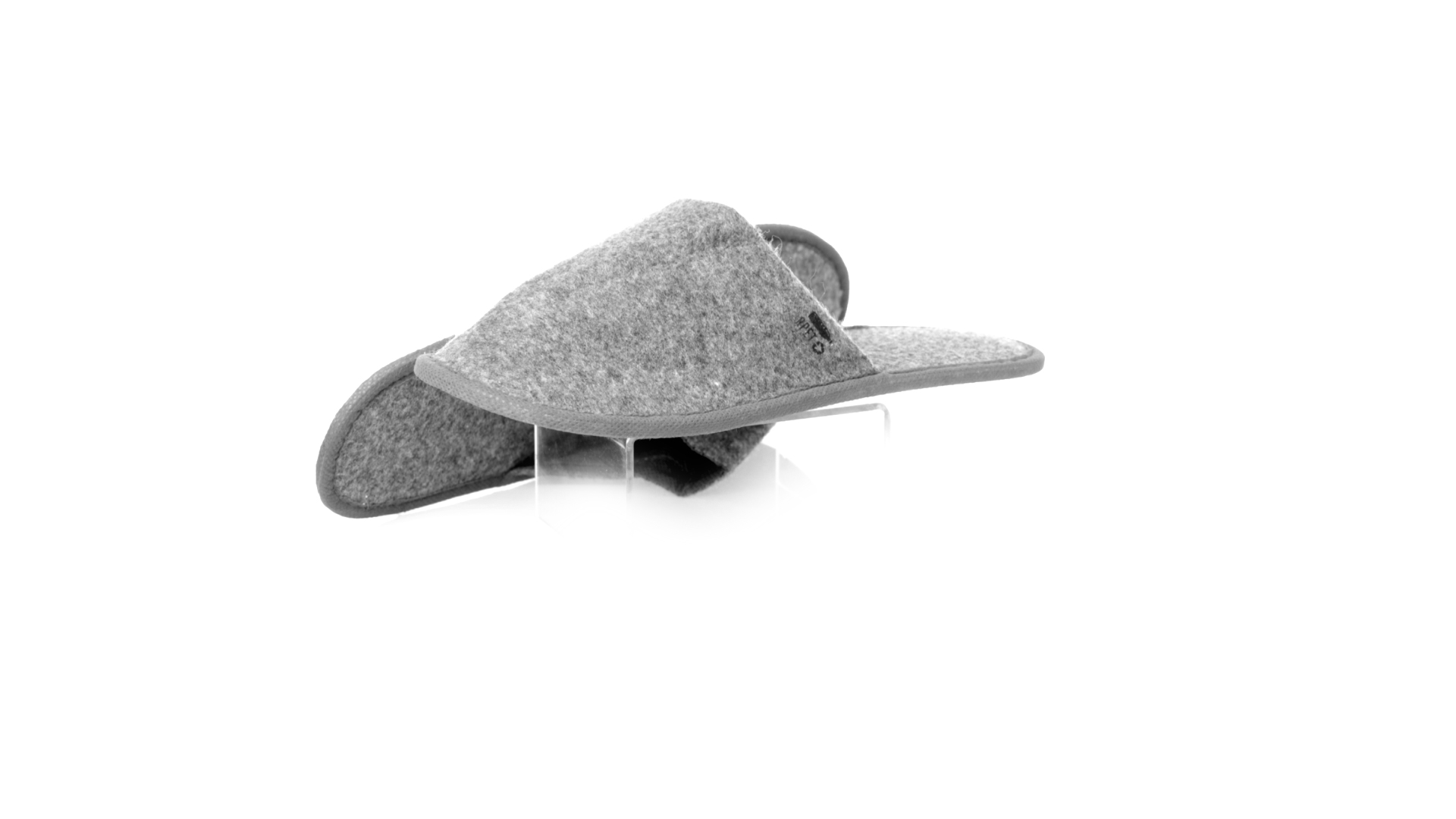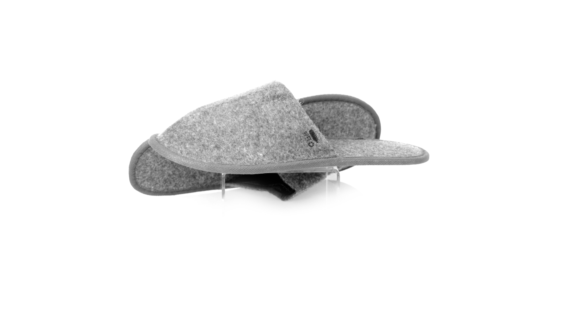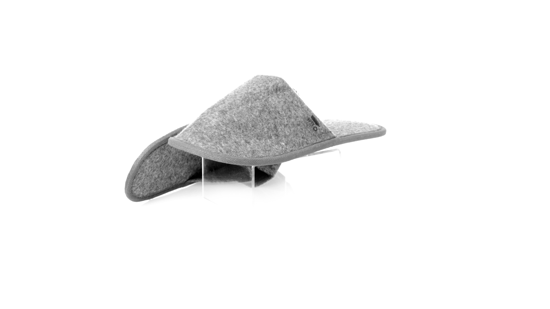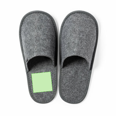 Ein Paar Unisex-Pantoffeln. Hergestellt aus widerstandsfähigem RPET-Filz, dem Ergebnis der Kombination des Recyclingprozesses von Kunststoffen mit der tausendjährigen Technik der Filzherstellung, was zu einem Öko-Trend-Material führt, das nicht nur recycelt, sondern auch wiederverwertet werden kann. Bequem gepolstertes Innenfutter mit verstärkten Nähten und in Einheitsgrösse 36-43.