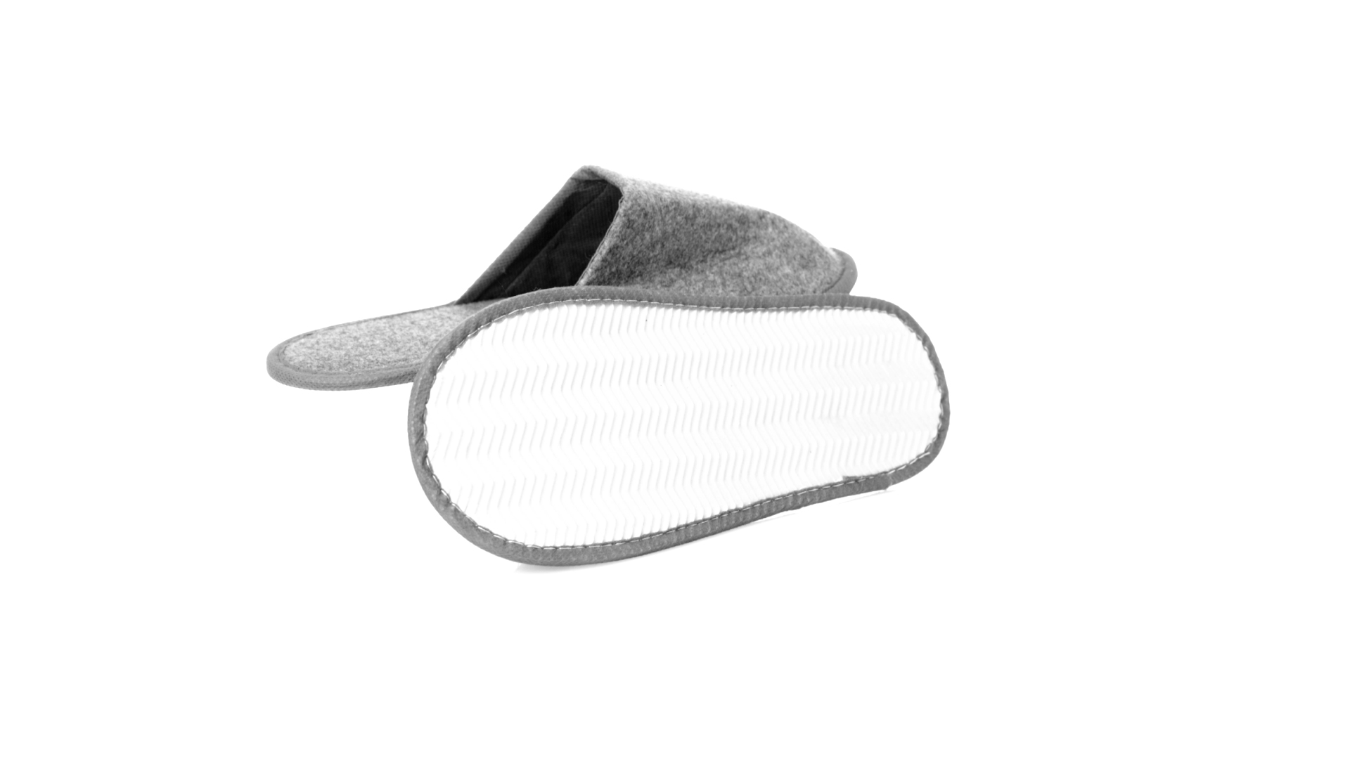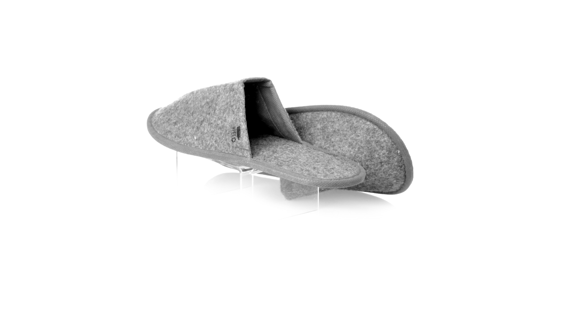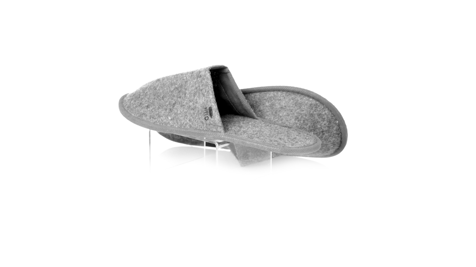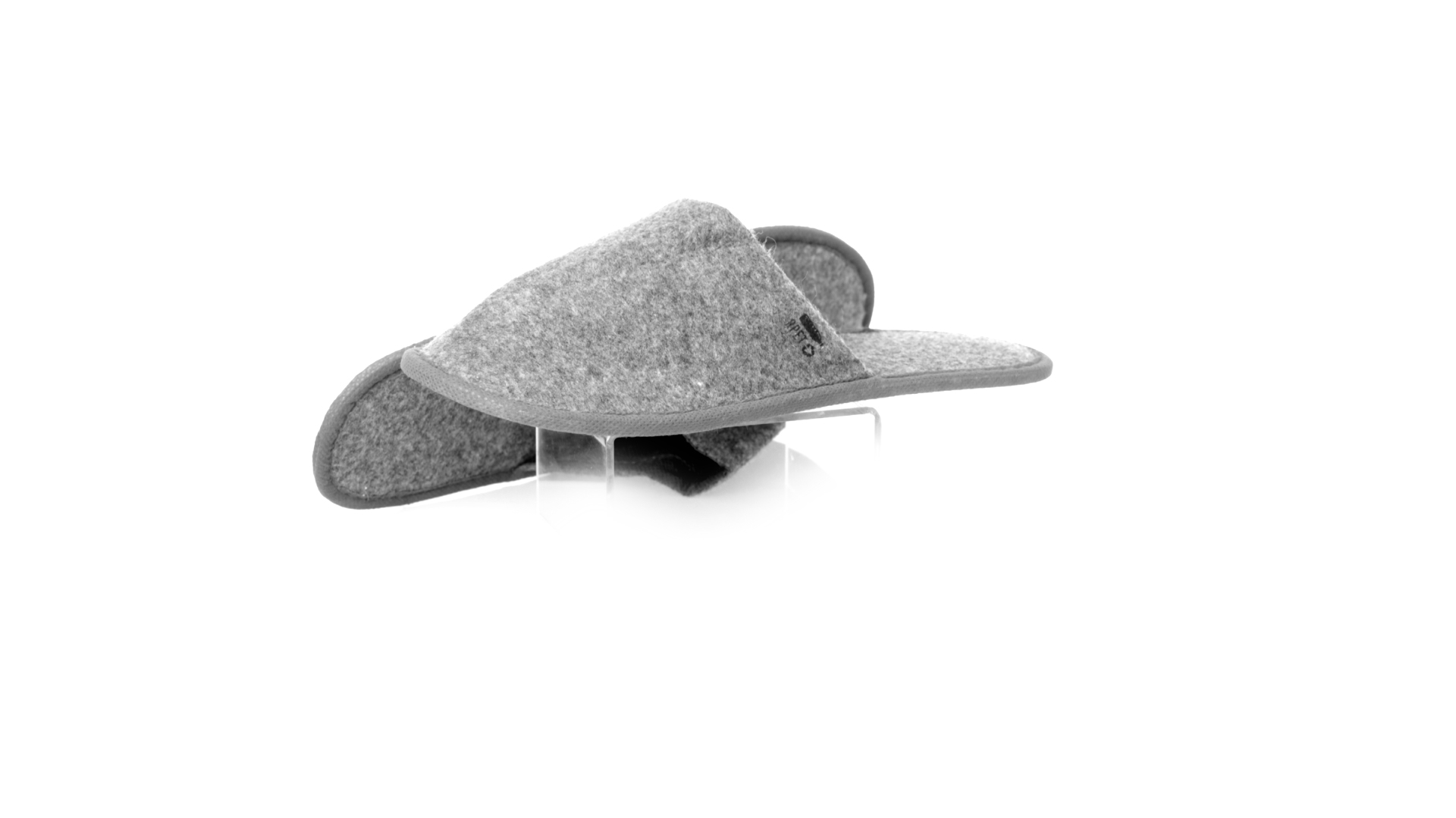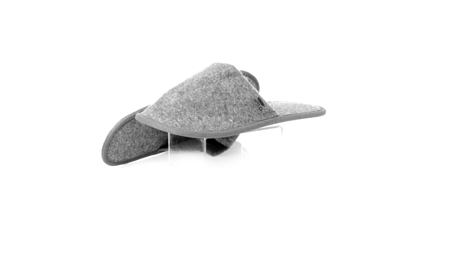 Ein Paar Unisex-Pantoffeln. Hergestellt aus widerstandsfähigem RPET-Filz, dem Ergebnis der Kombination des Recyclingprozesses von Kunststoffen mit der tausendjährigen Technik der Filzherstellung, was zu einem Öko-Trend-Material führt, das nicht nur recycelt, sondern auch wiederverwertet werden kann. Bequem gepolstertes Innenfutter mit verstärkten Nähten und in Einheitsgrösse 36-43.