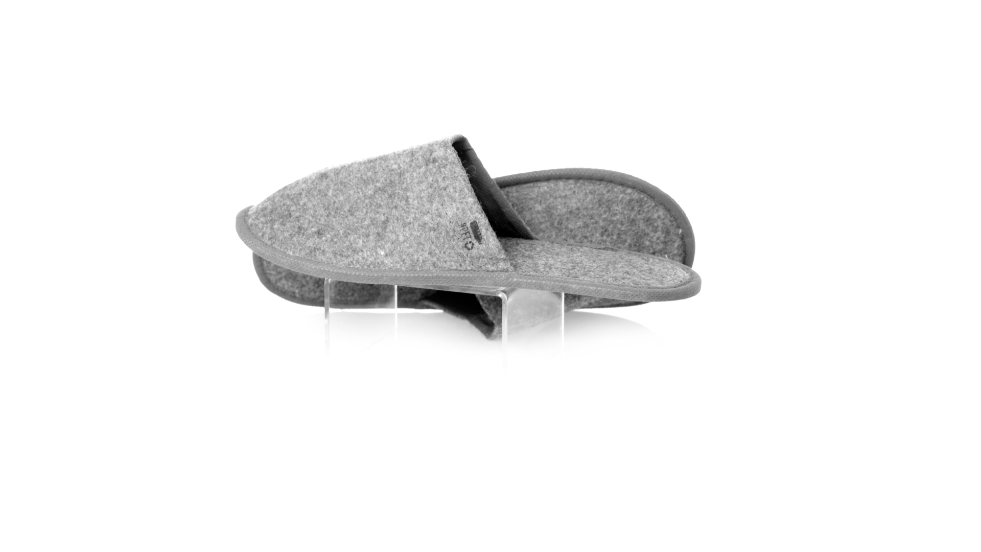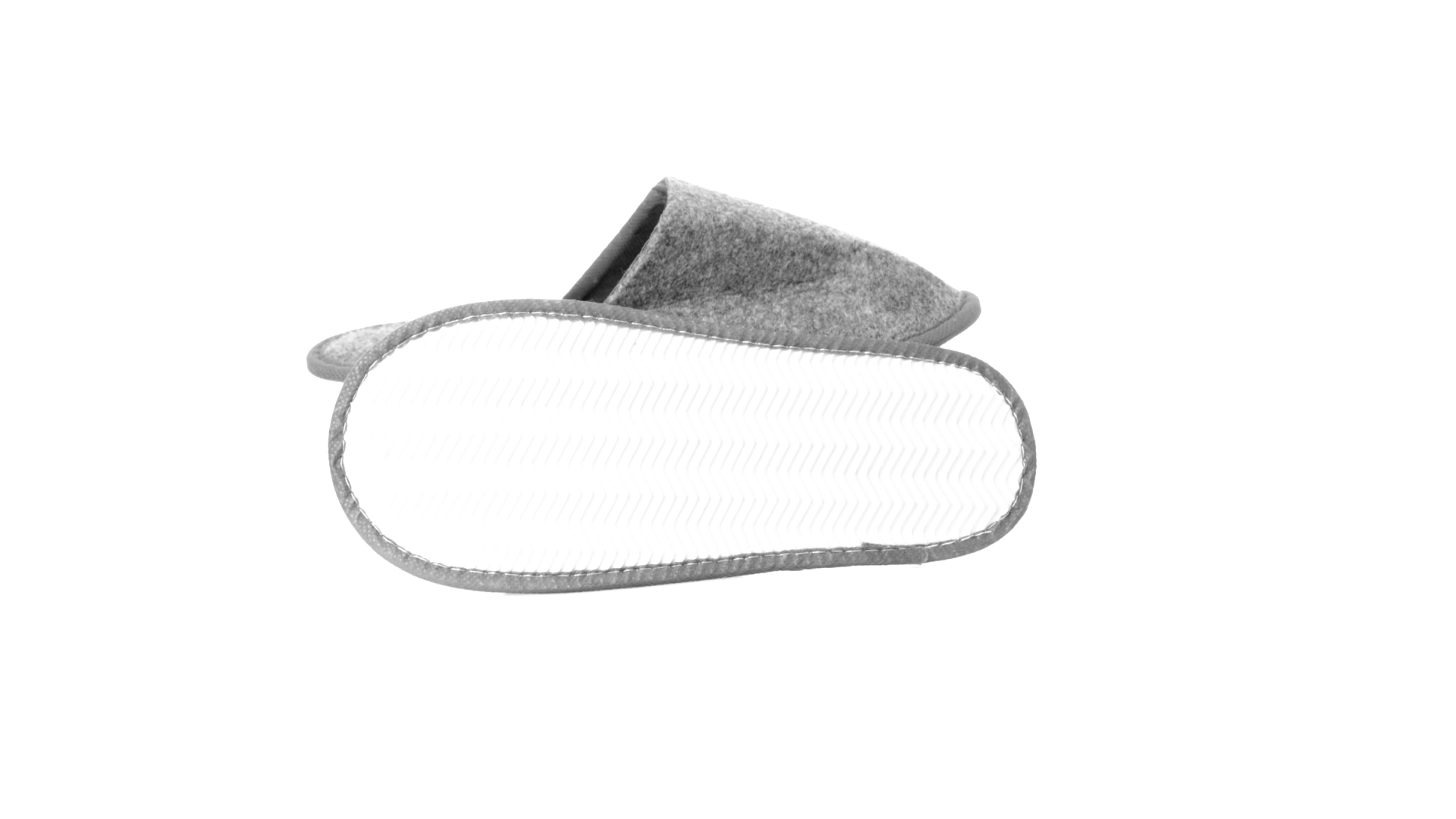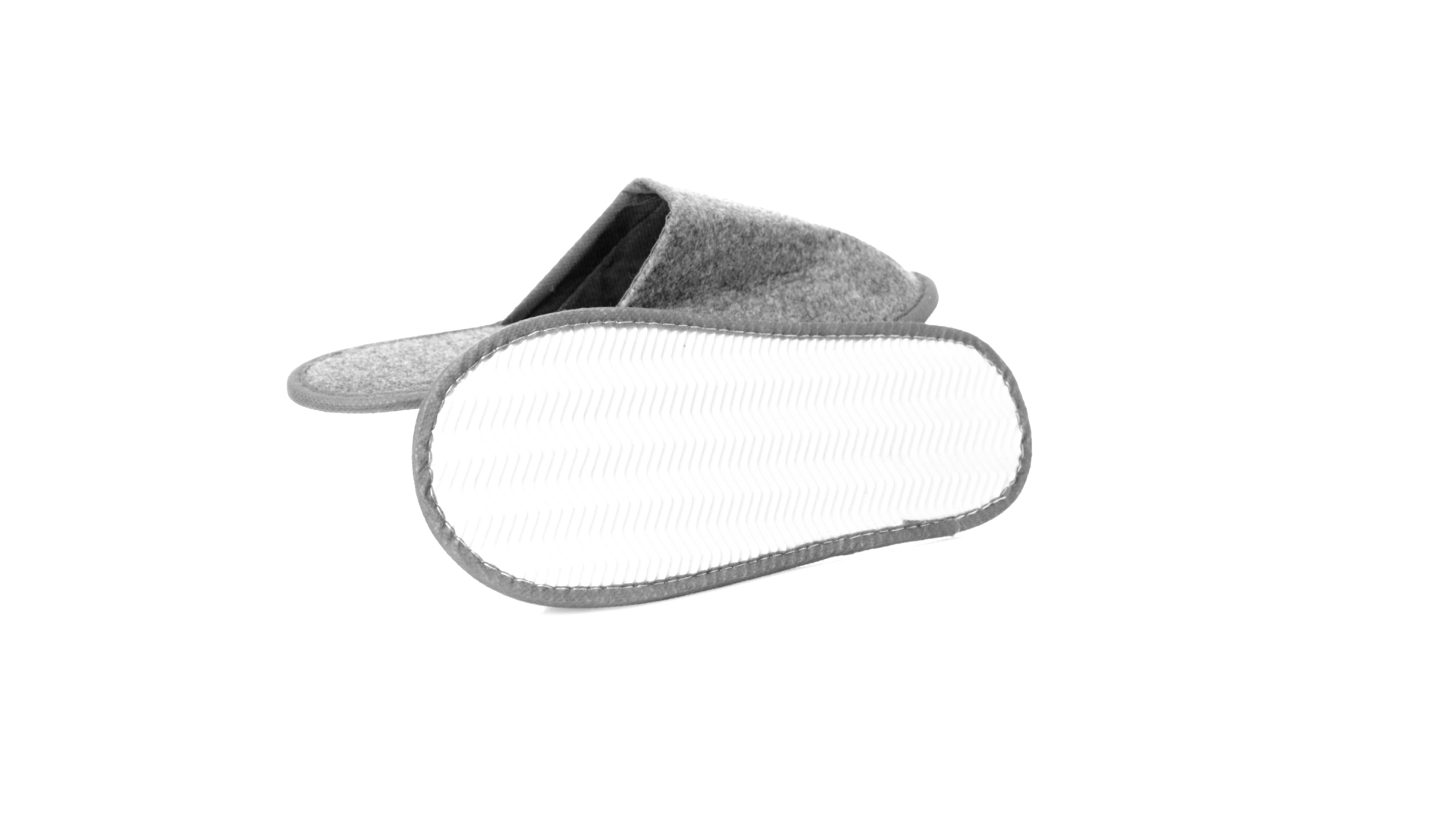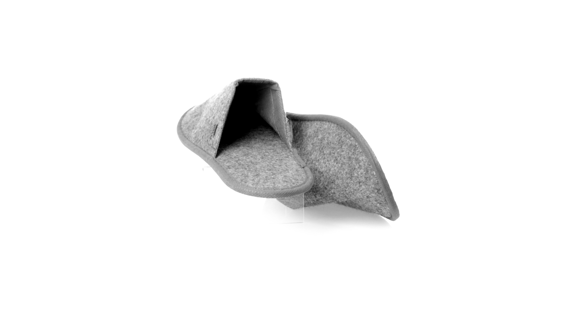Ein Paar Unisex-Pantoffeln. Hergestellt aus widerstandsfähigem RPET-Filz, dem Ergebnis der Kombination des Recyclingprozesses von Kunststoffen mit der tausendjährigen Technik der Filzherstellung, was zu einem Öko-Trend-Material führt, das nicht nur recycelt, sondern auch wiederverwertet werden kann. Bequem gepolstertes Innenfutter mit verstärkten Nähten und in Einheitsgrösse 36-43.