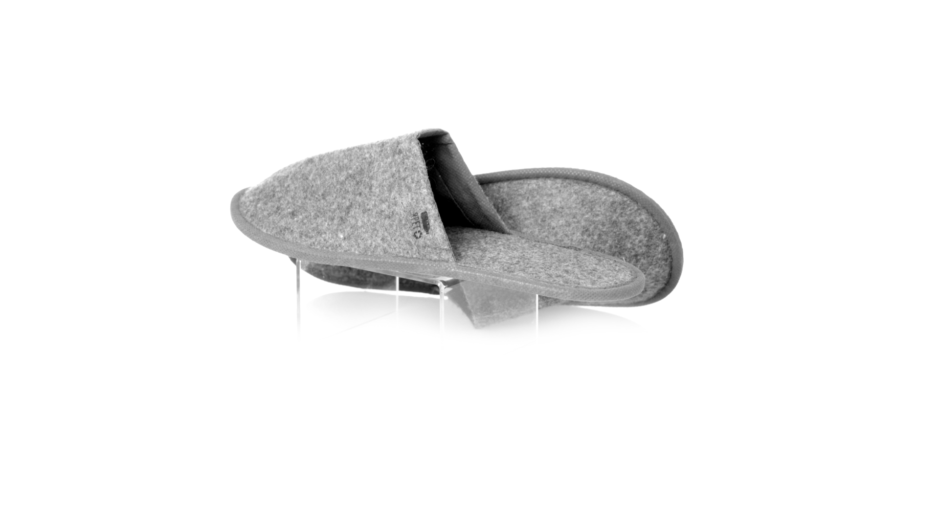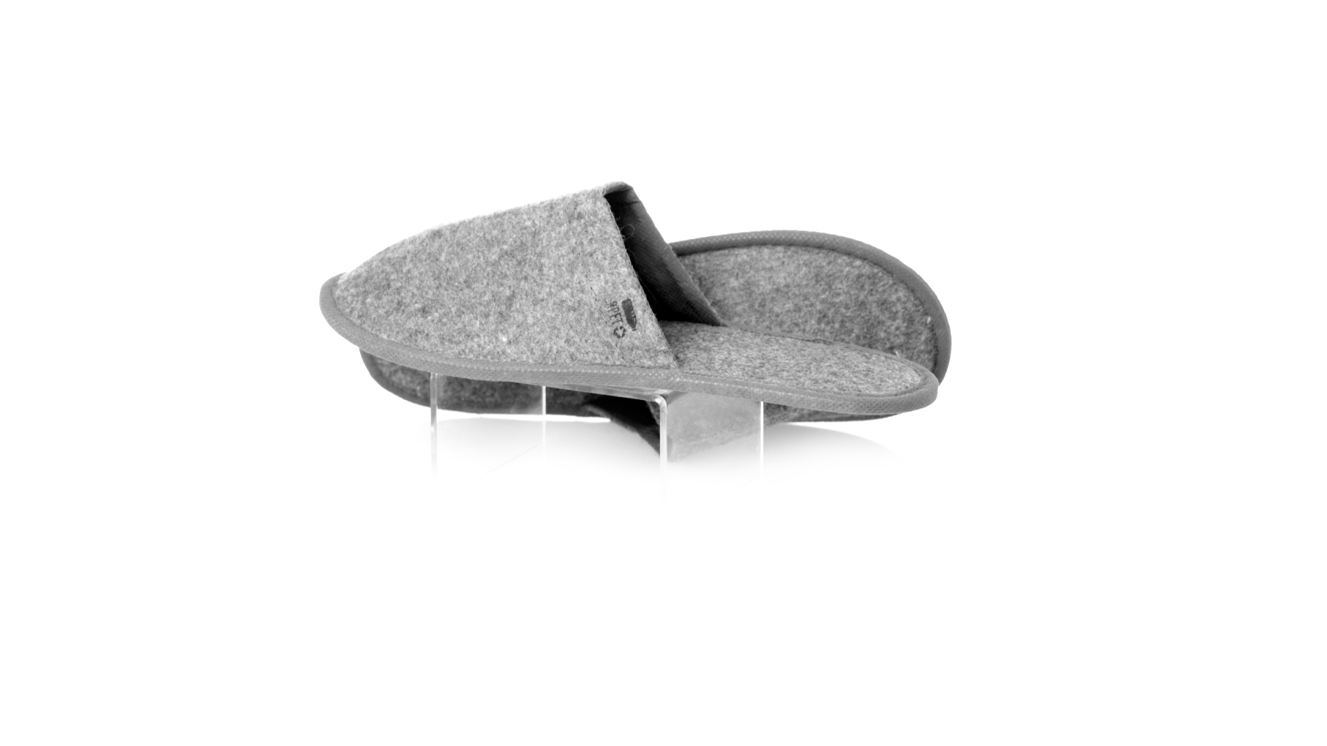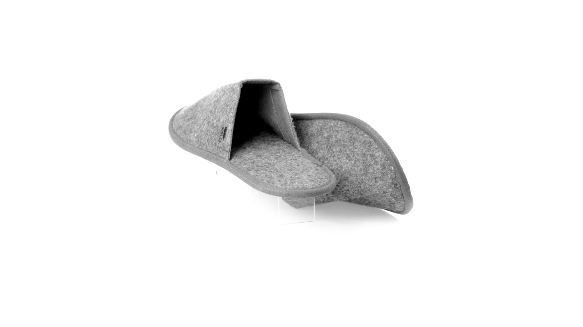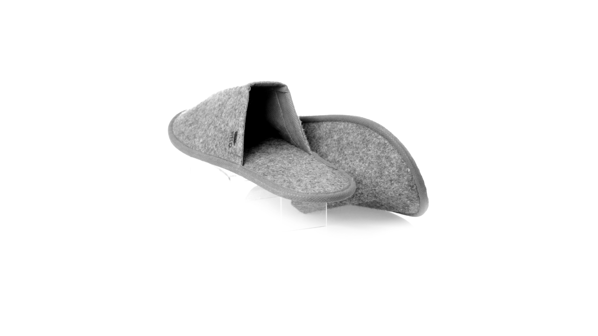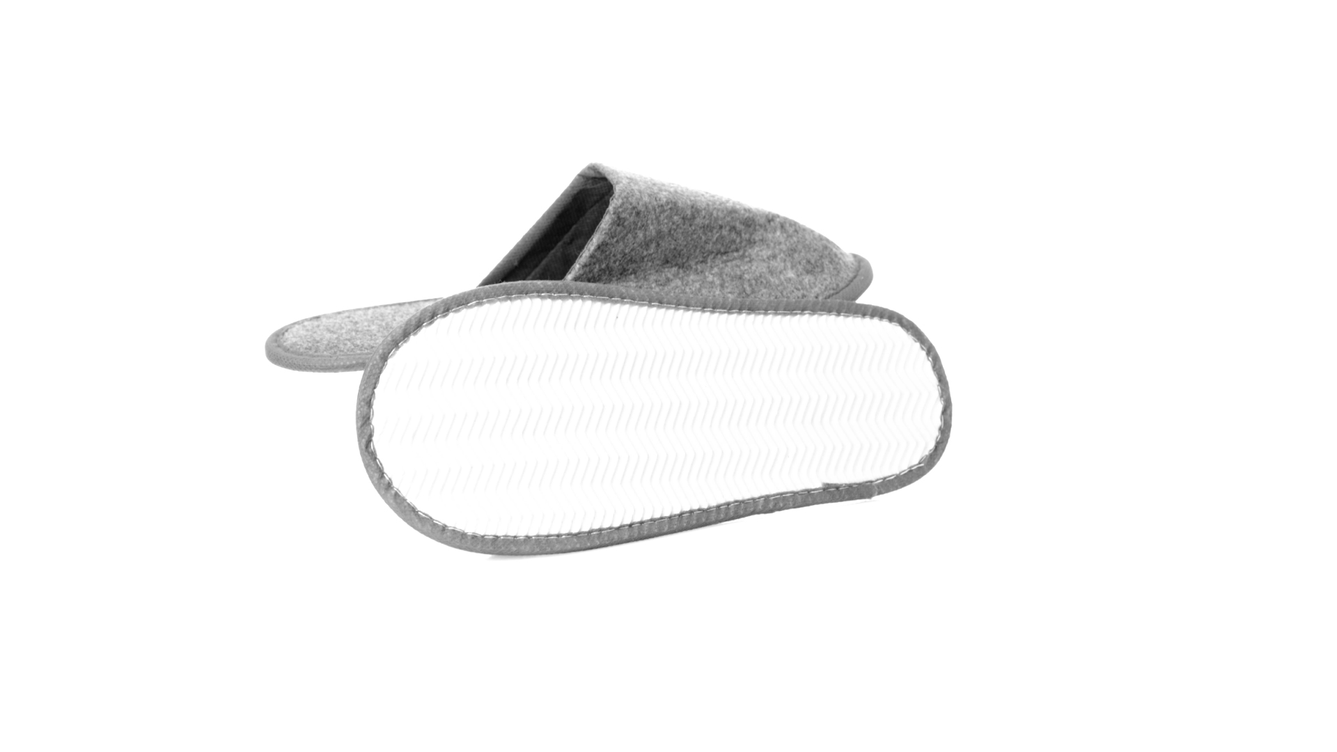 Ein Paar Unisex-Pantoffeln. Hergestellt aus widerstandsfähigem RPET-Filz, dem Ergebnis der Kombination des Recyclingprozesses von Kunststoffen mit der tausendjährigen Technik der Filzherstellung, was zu einem Öko-Trend-Material führt, das nicht nur recycelt, sondern auch wiederverwertet werden kann. Bequem gepolstertes Innenfutter mit verstärkten Nähten und in Einheitsgrösse 36-43.