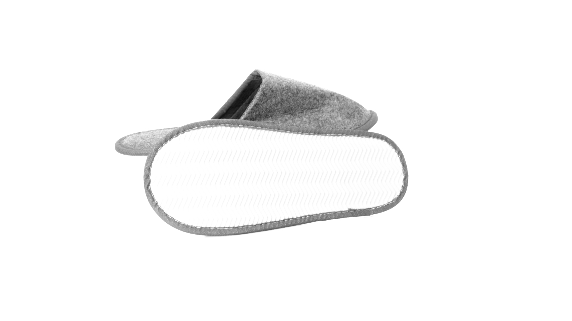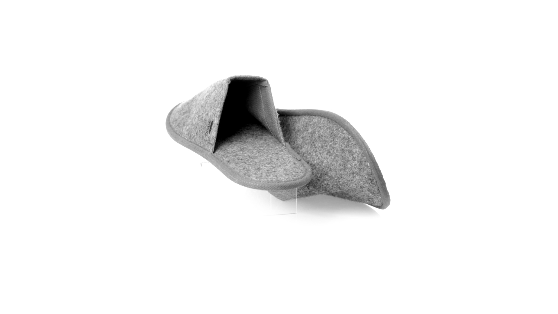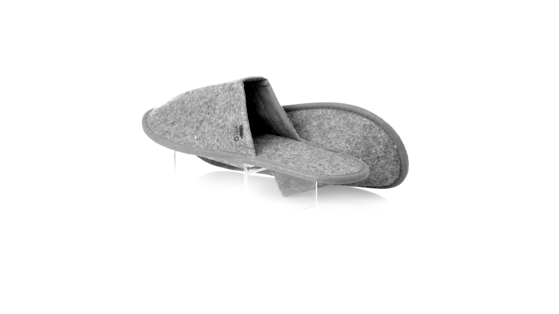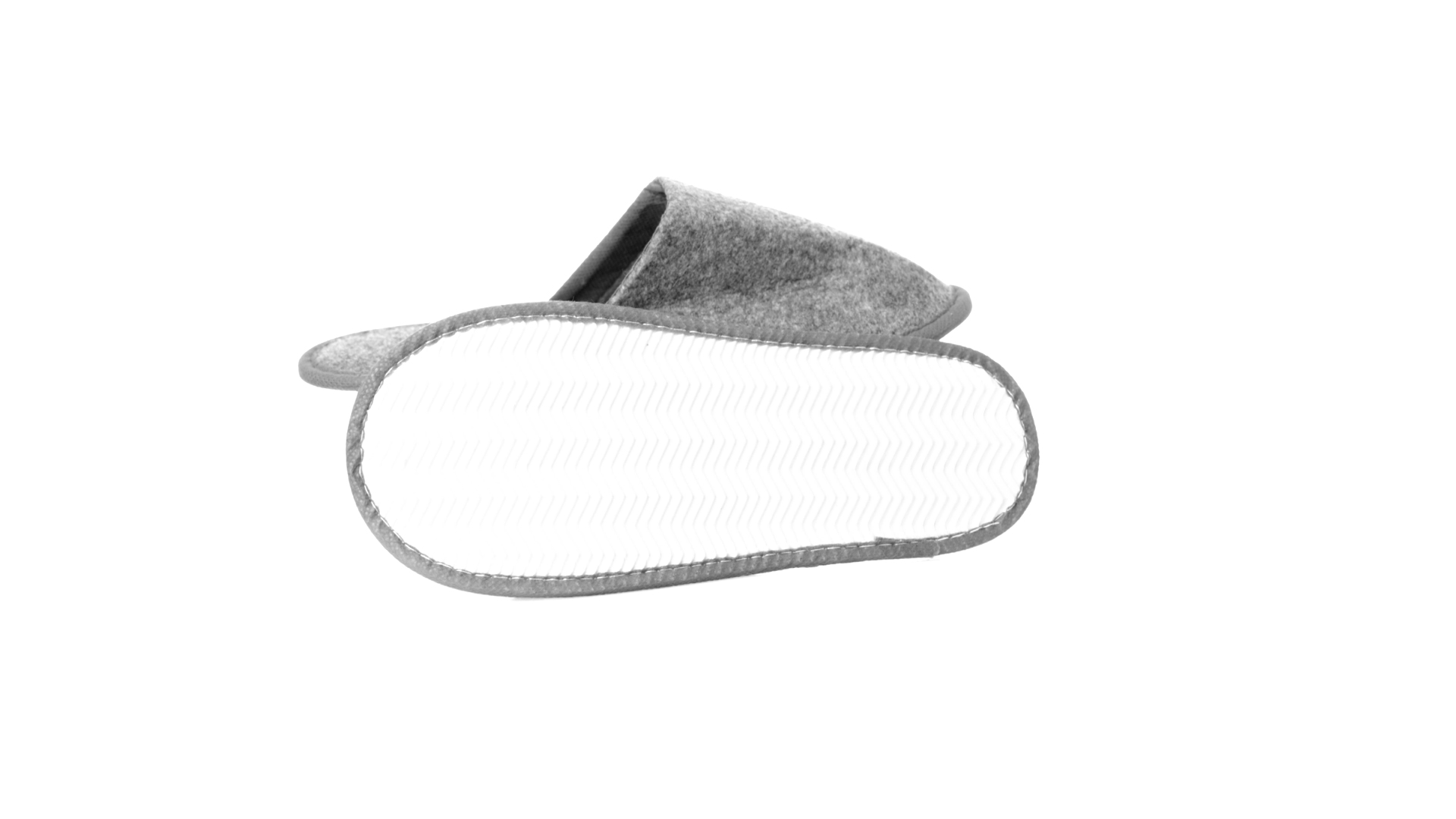 Ein Paar Unisex-Pantoffeln. Hergestellt aus widerstandsfähigem RPET-Filz, dem Ergebnis der Kombination des Recyclingprozesses von Kunststoffen mit der tausendjährigen Technik der Filzherstellung, was zu einem Öko-Trend-Material führt, das nicht nur recycelt, sondern auch wiederverwertet werden kann. Bequem gepolstertes Innenfutter mit verstärkten Nähten und in Einheitsgrösse 36-43.