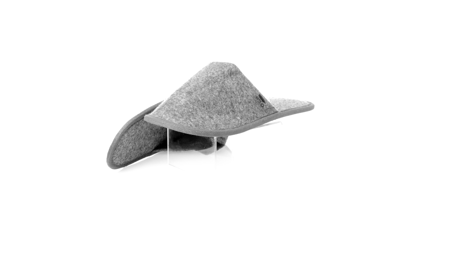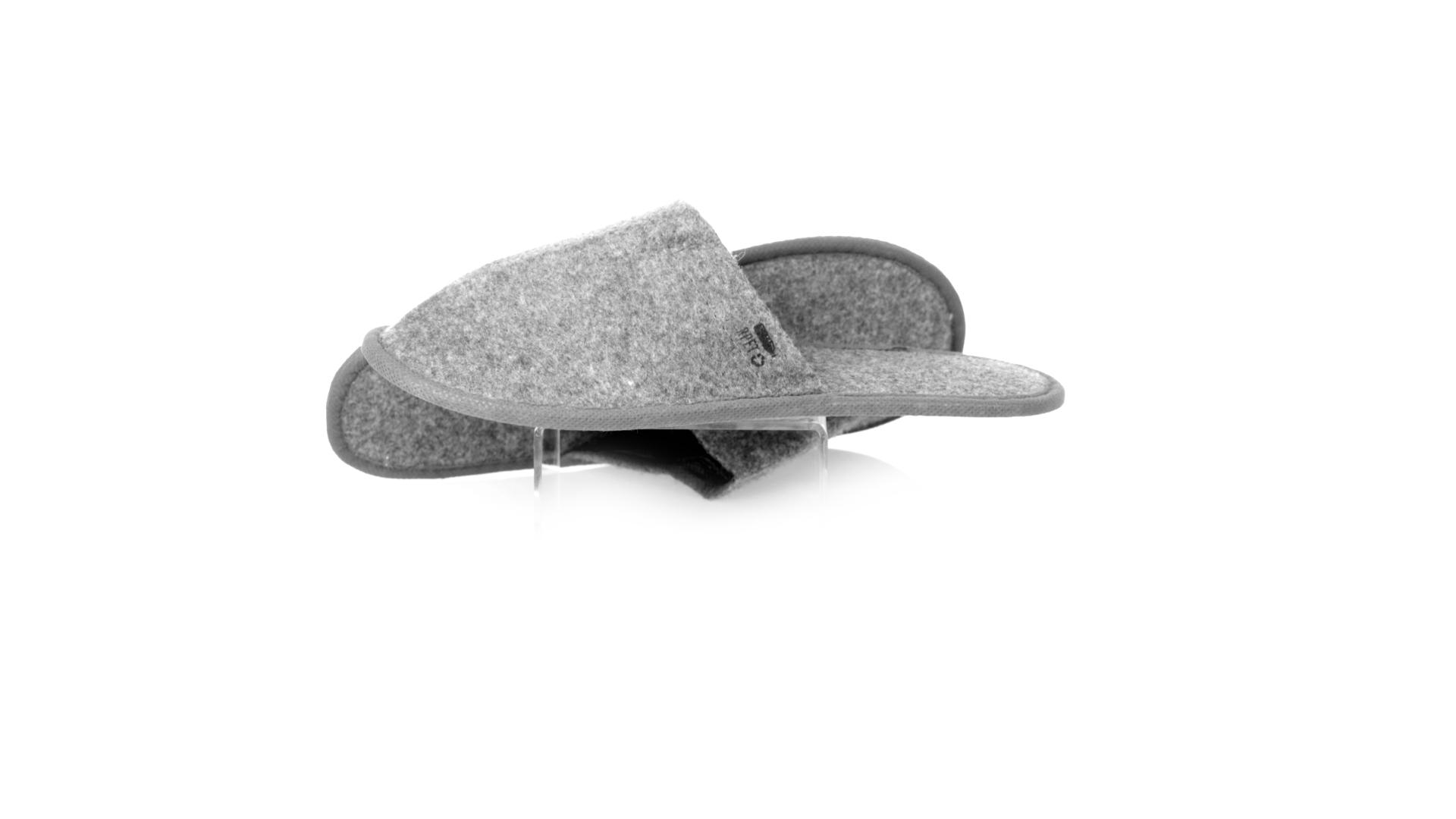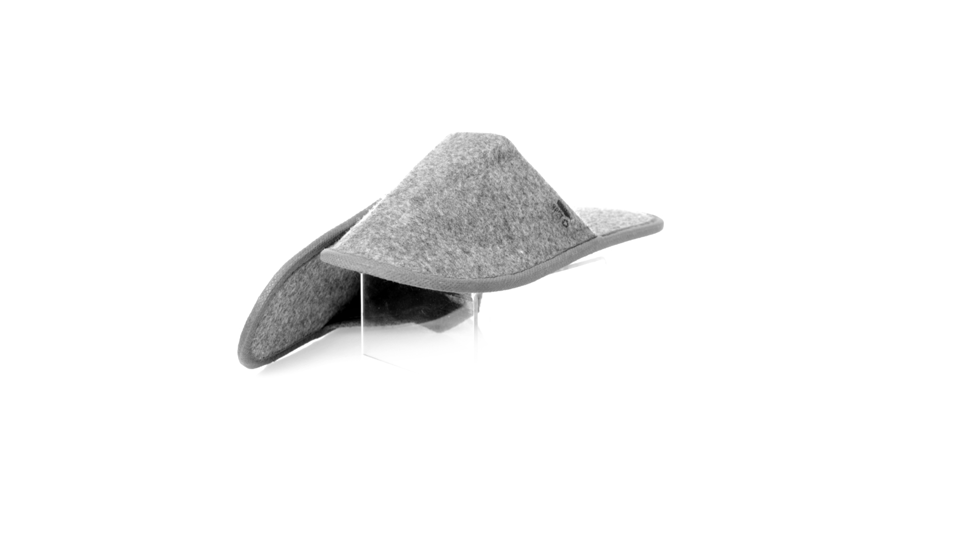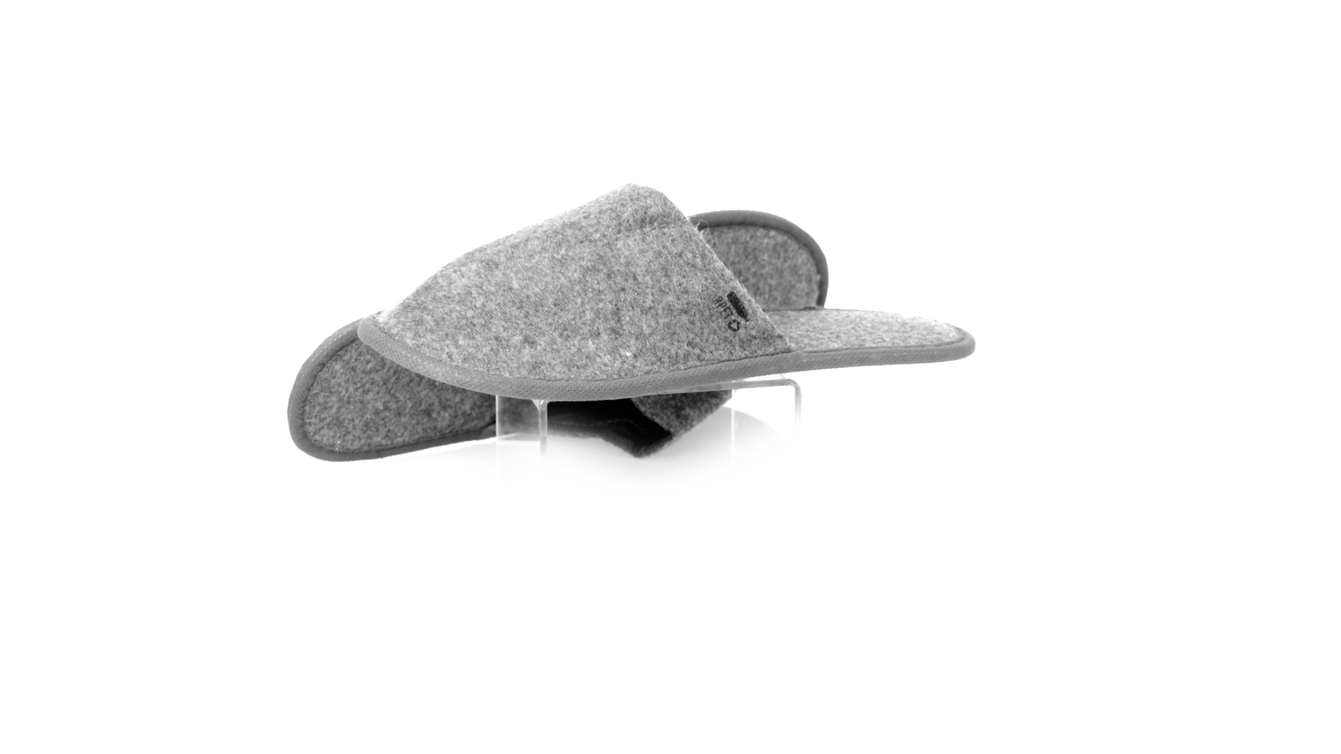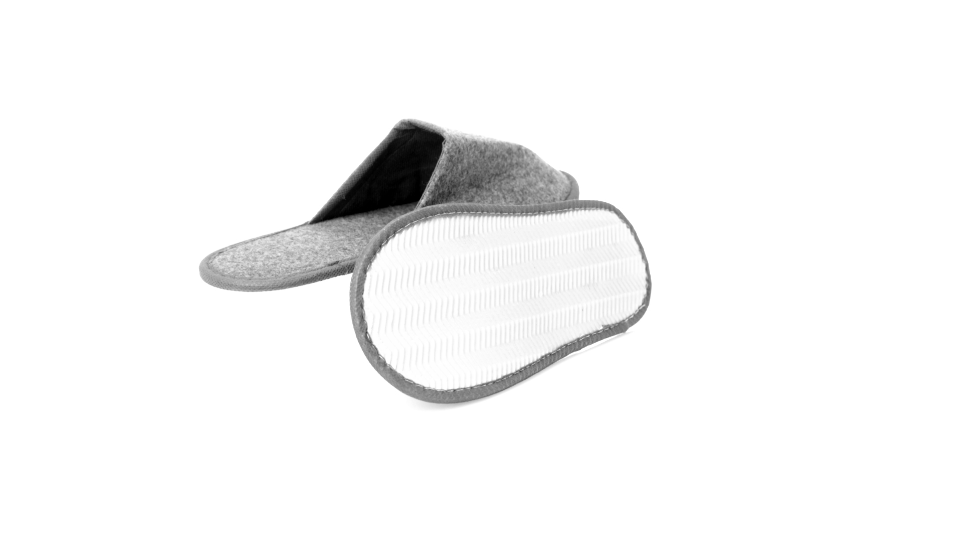 Ein Paar Unisex-Pantoffeln. Hergestellt aus widerstandsfähigem RPET-Filz, dem Ergebnis der Kombination des Recyclingprozesses von Kunststoffen mit der tausendjährigen Technik der Filzherstellung, was zu einem Öko-Trend-Material führt, das nicht nur recycelt, sondern auch wiederverwertet werden kann. Bequem gepolstertes Innenfutter mit verstärkten Nähten und in Einheitsgrösse 36-43.