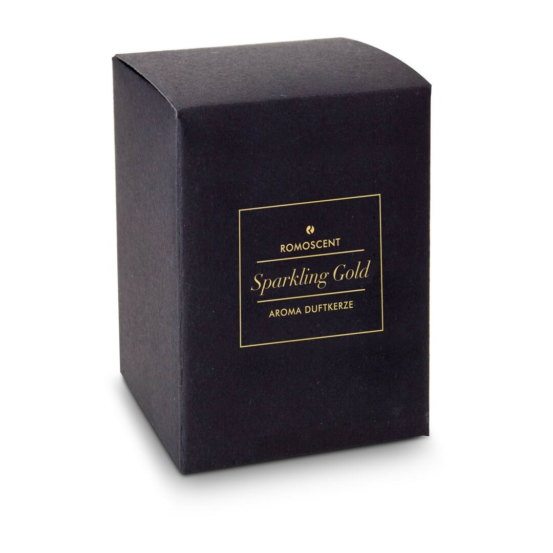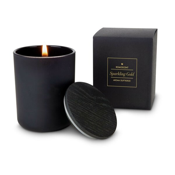 Eine Flasche Champagner gilt als Inbegriff von Luxus. Unsere Aromakerze "Sparkling Gold" verströmt einen dezenten Duft, der an den erlesenen Genuss des prickelnden Champagners erinnert. Diese Kerze eignet sich perfekt für besondere Augenblicke. Ihr süsslich-frisches Aroma versprüht einen einzigartigen Zauber, dem niemand widerstehen kann. Die luxuriöse Duftkerze wird in einem eleganten schwarz-matten Glas mit Holzdeckel und einem zarten Schleifenband präsentiert, was sie zu einem wahren Blickfang macht. Das passende stilvolle Geschenkkarton in Schwarz mit Goldfolienprägung verleiht unserer Aromakerze "Sparkling Gold" den letzten Schliff als exquisites Präsent.
