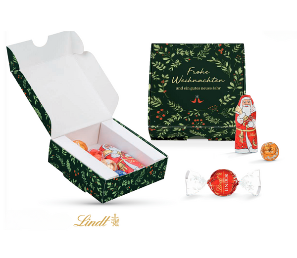 - 1 Lindt Schokoweihnachtsmann (10gr) und 4 Lindt Lindor Mini Kugeln (saisonal)