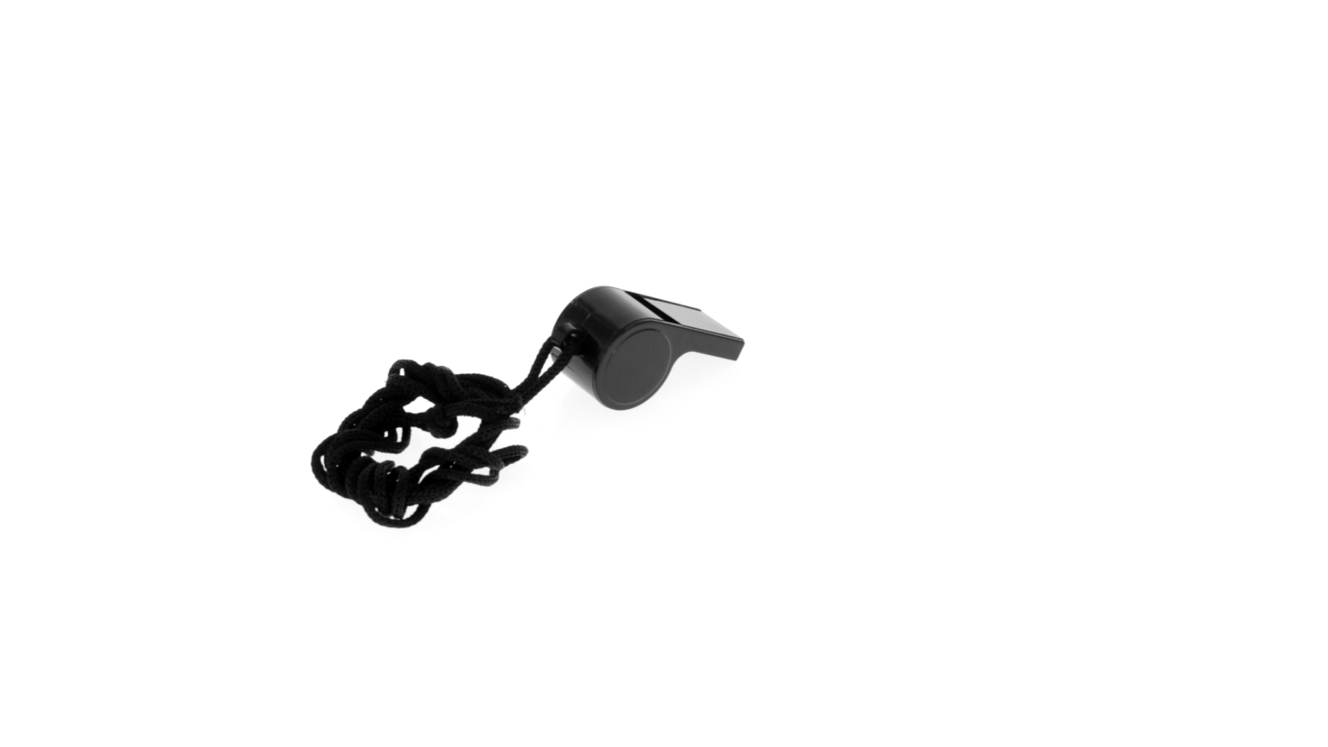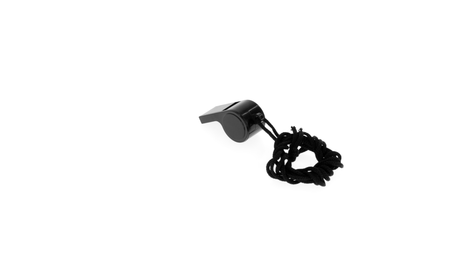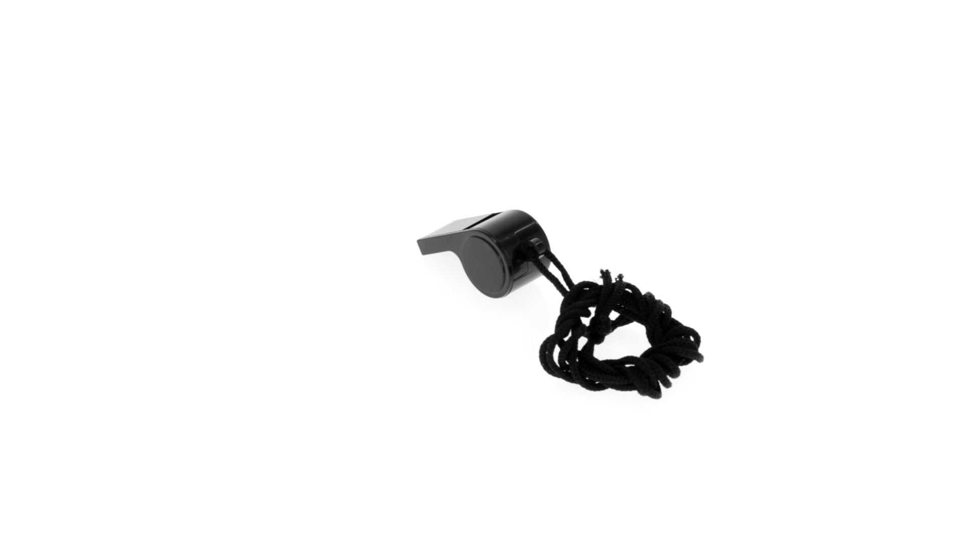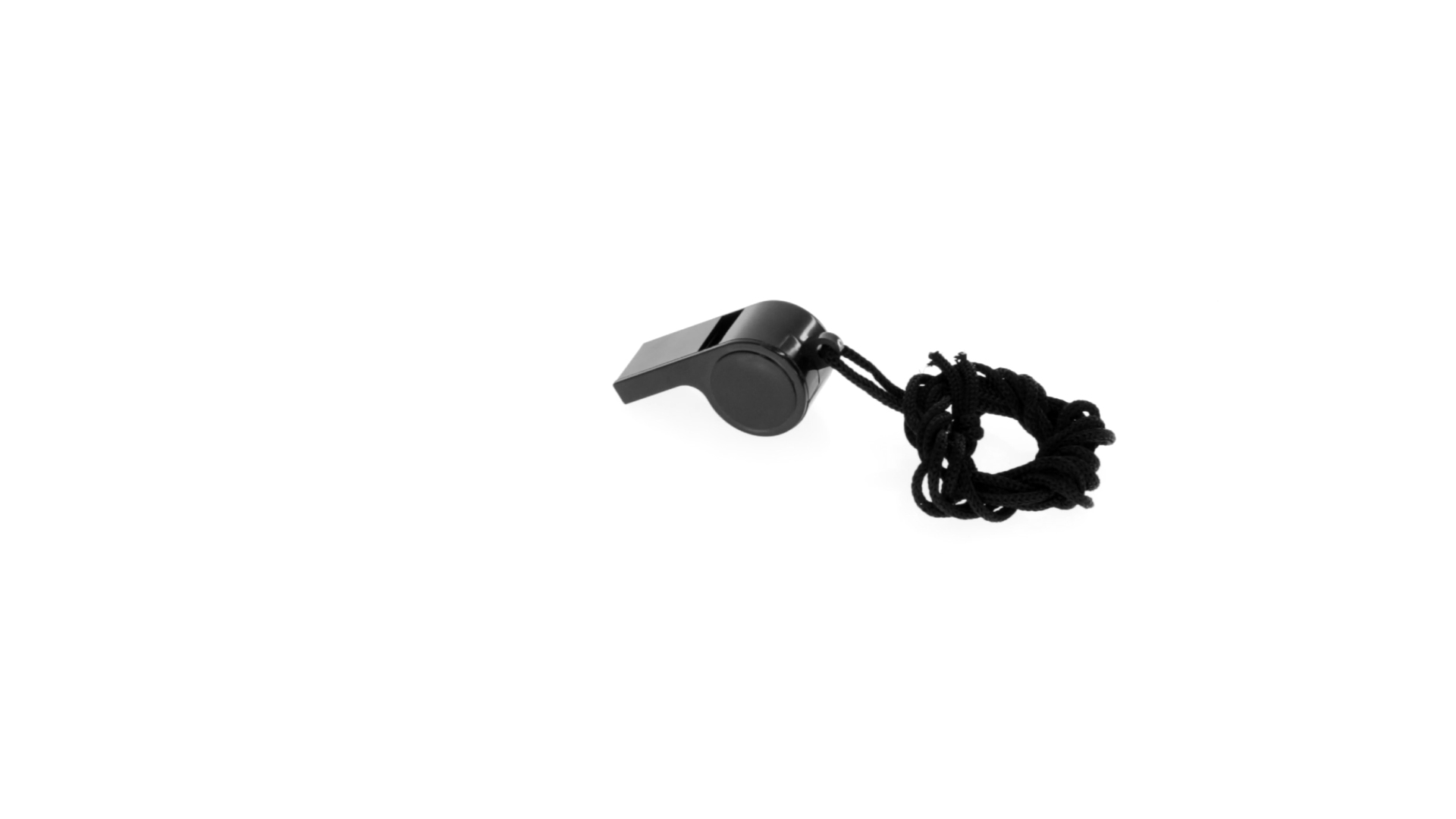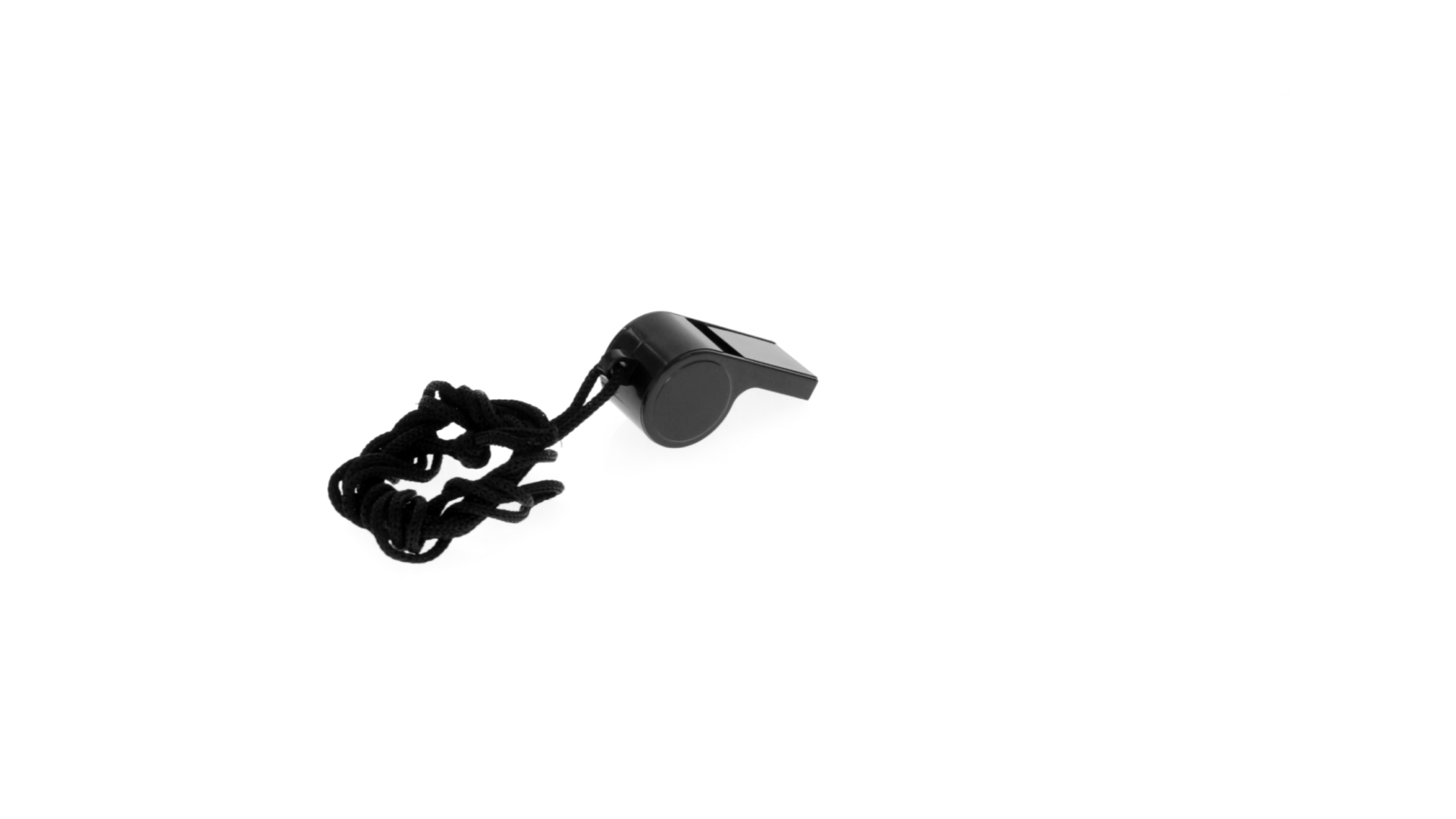 Lustige Trillerpfeife mit klassischem Design in vielen kräftigen Farben mit farblich passendem Band zum Umhängen.