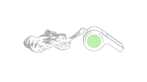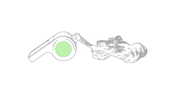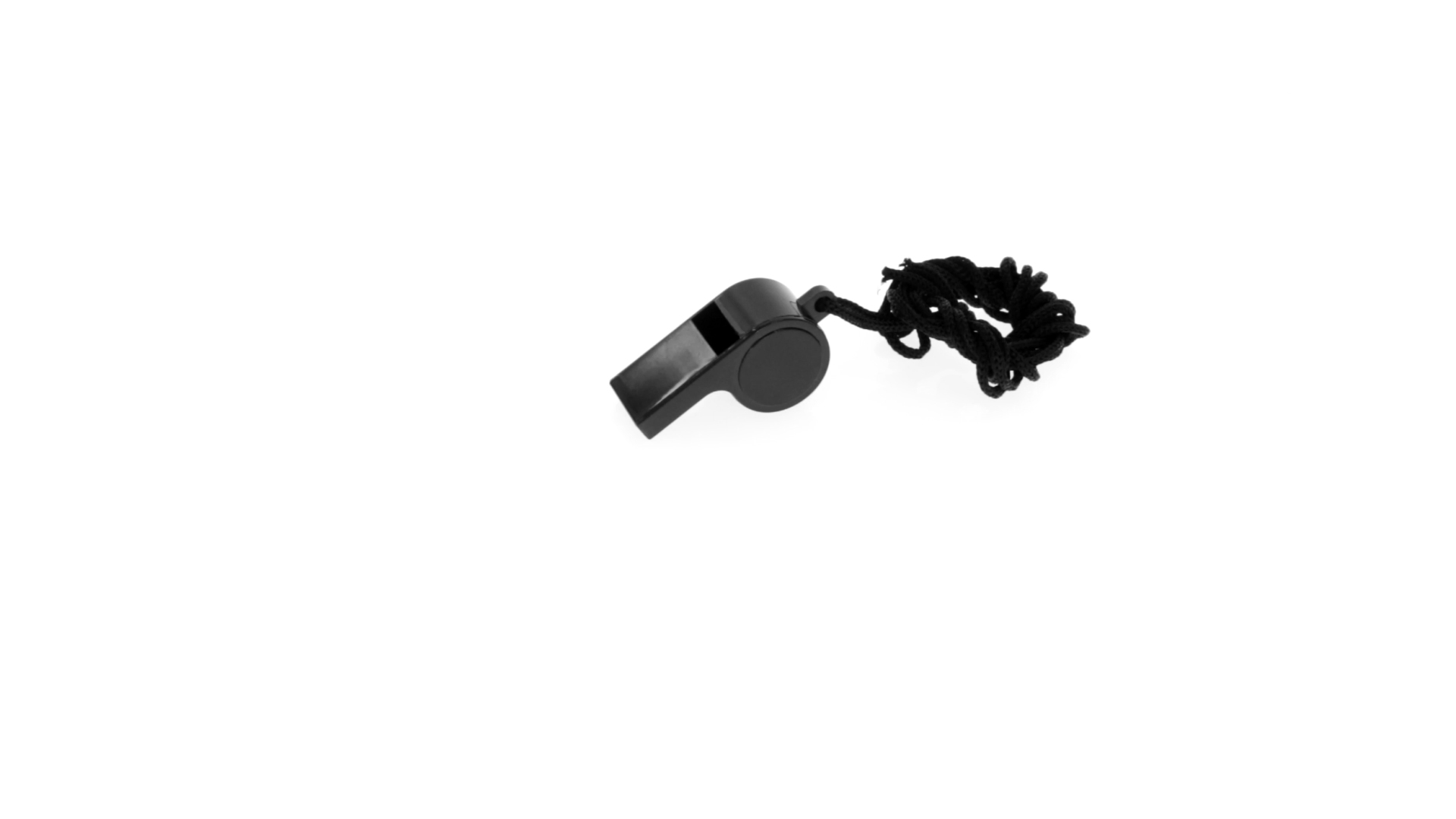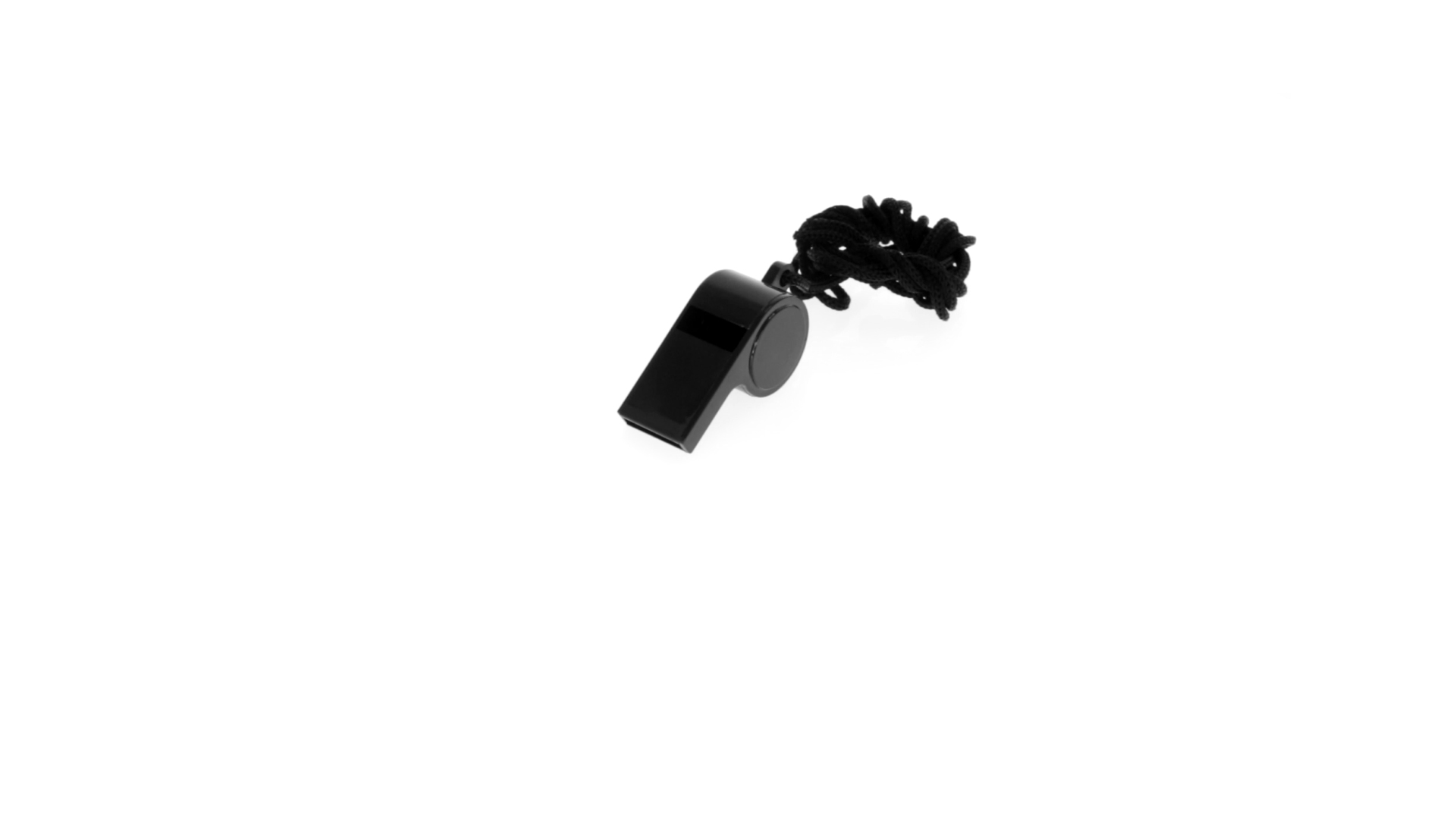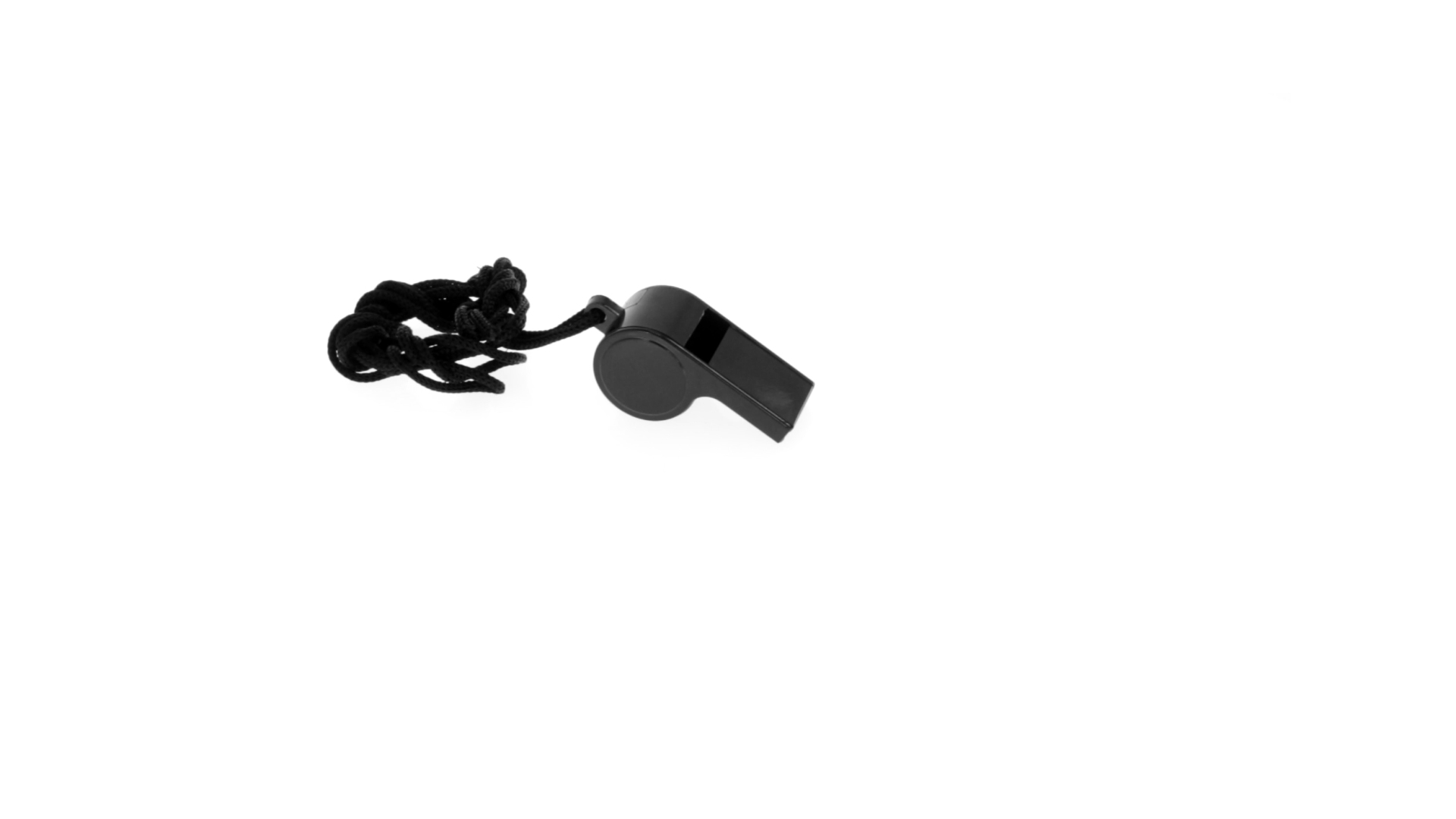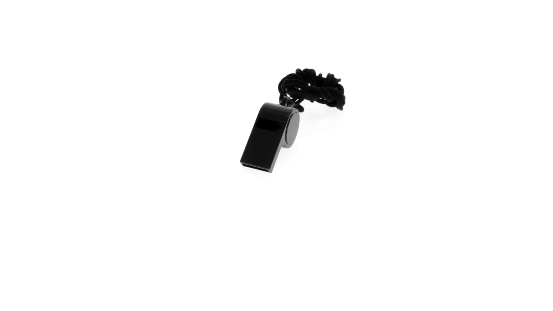 Lustige Trillerpfeife mit klassischem Design in vielen kräftigen Farben mit farblich passendem Band zum Umhängen.