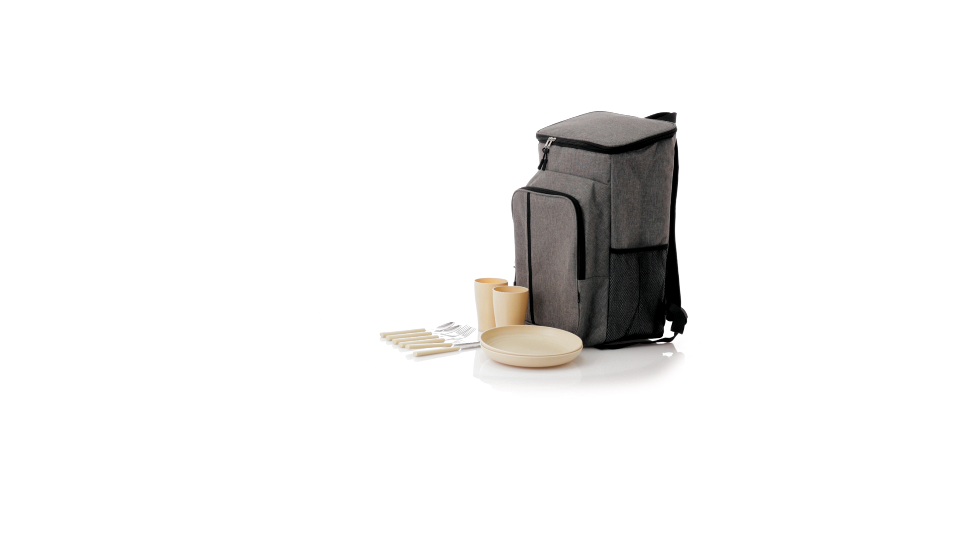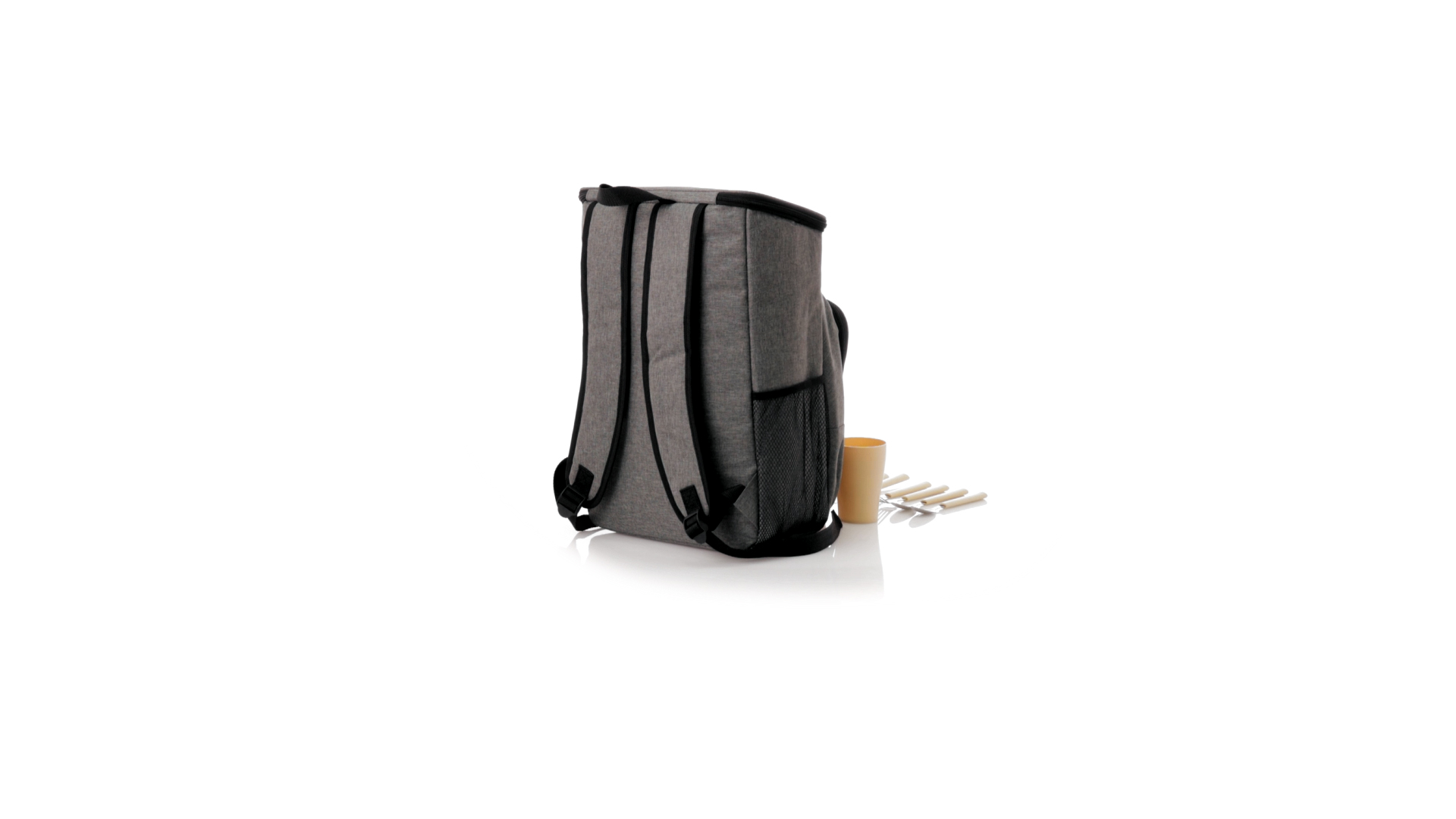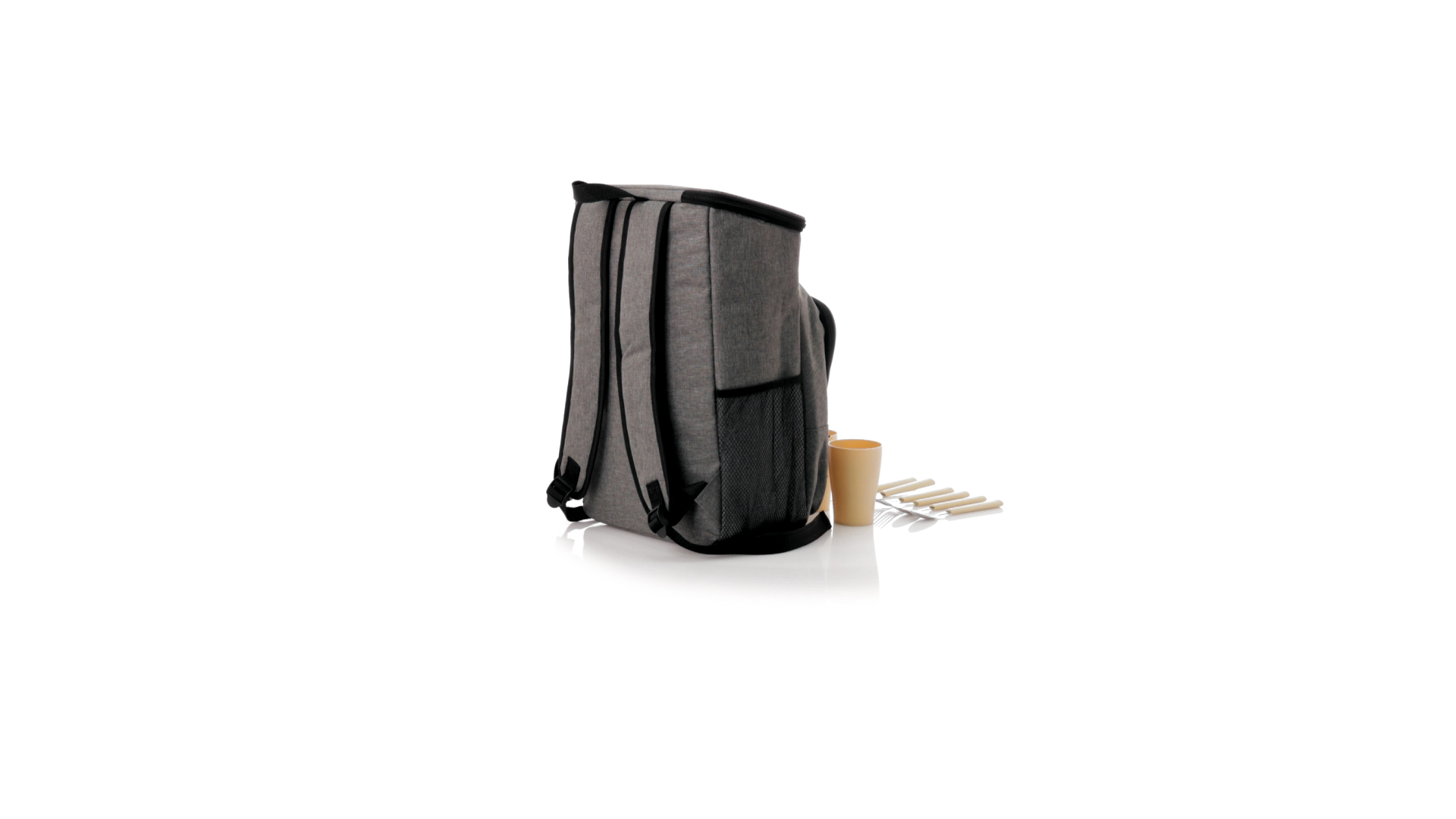 Picknick-Kühlrucksack aus strapazierfähigem, hochwertigem 600D RPET. Entworfen für 2 Personen, hat er eine separate Tasche für die sichere Lagerung. Enthält 2 Gläser, 2 Messer, 2 Löffel, 2 Gabeln und 2 Teller. Ausserdem verfügt er über eine schnell zugängliche Vordertasche und seitliche Netztaschen. Das Kühlfach ist mit PEVA ausgekleidet, und der Rucksack hat einen bequemen Tragegriff, gepolsterte Gurte und einen gepolsterten Rücken. RPET-Logo auf dem Etikett.Das RPET-Material wird aus recyceltem Kunststoff hergestellt, um die Wiederverwendung von Kunststoffabfällen zu fördern und einen Beitrag zur Nachhaltigkeit unseres Planeten zu leisten.