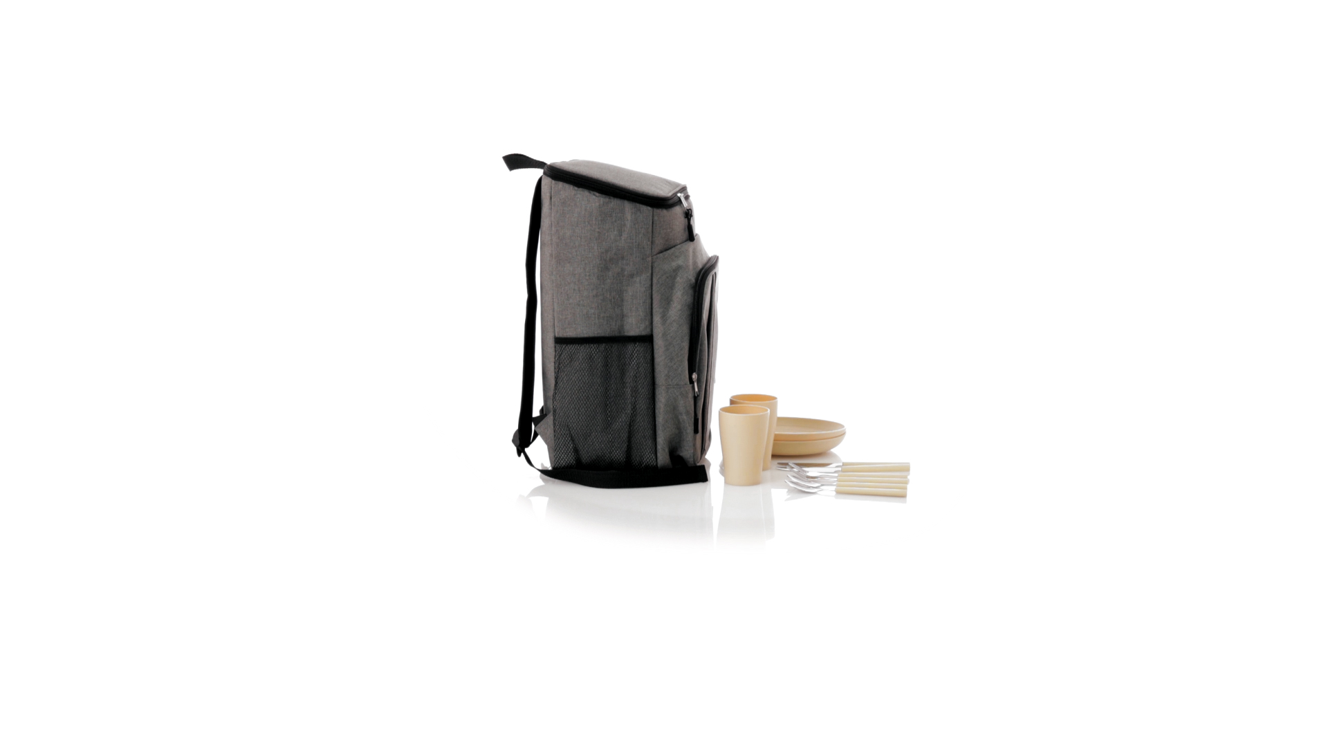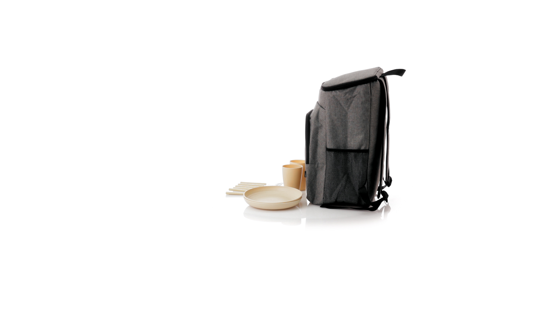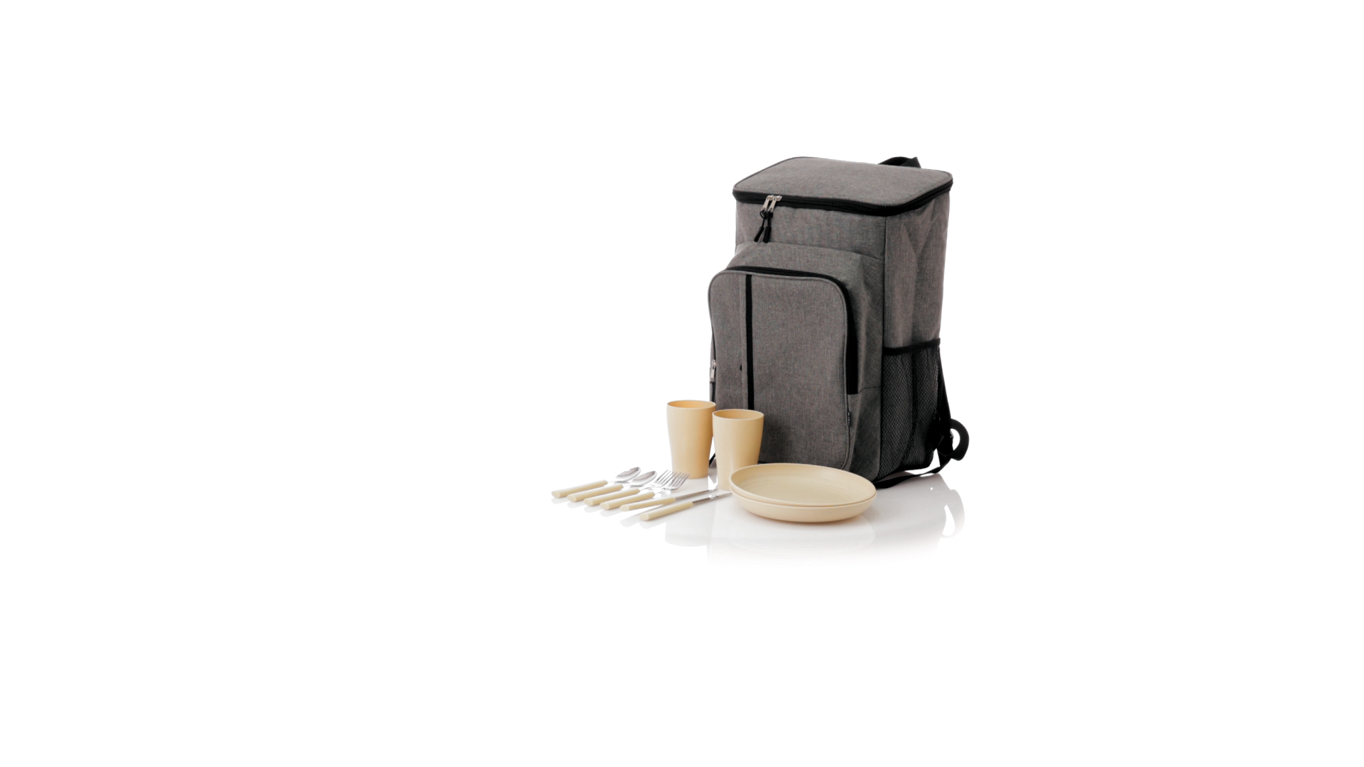 Picknick-Kühlrucksack aus strapazierfähigem, hochwertigem 600D RPET. Entworfen für 2 Personen, hat er eine separate Tasche für die sichere Lagerung. Enthält 2 Gläser, 2 Messer, 2 Löffel, 2 Gabeln und 2 Teller. Ausserdem verfügt er über eine schnell zugängliche Vordertasche und seitliche Netztaschen. Das Kühlfach ist mit PEVA ausgekleidet, und der Rucksack hat einen bequemen Tragegriff, gepolsterte Gurte und einen gepolsterten Rücken. RPET-Logo auf dem Etikett.Das RPET-Material wird aus recyceltem Kunststoff hergestellt, um die Wiederverwendung von Kunststoffabfällen zu fördern und einen Beitrag zur Nachhaltigkeit unseres Planeten zu leisten.