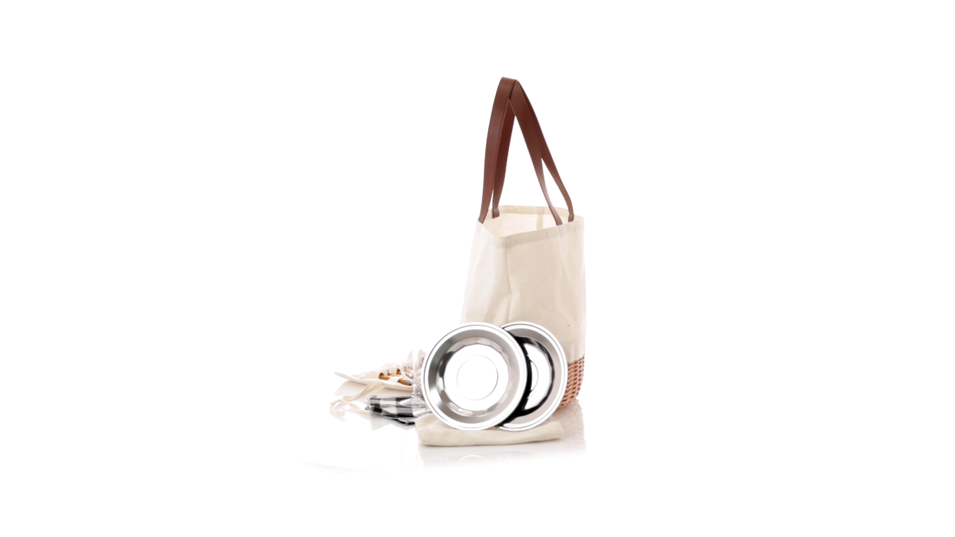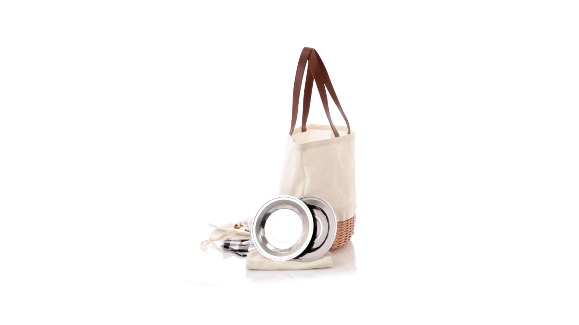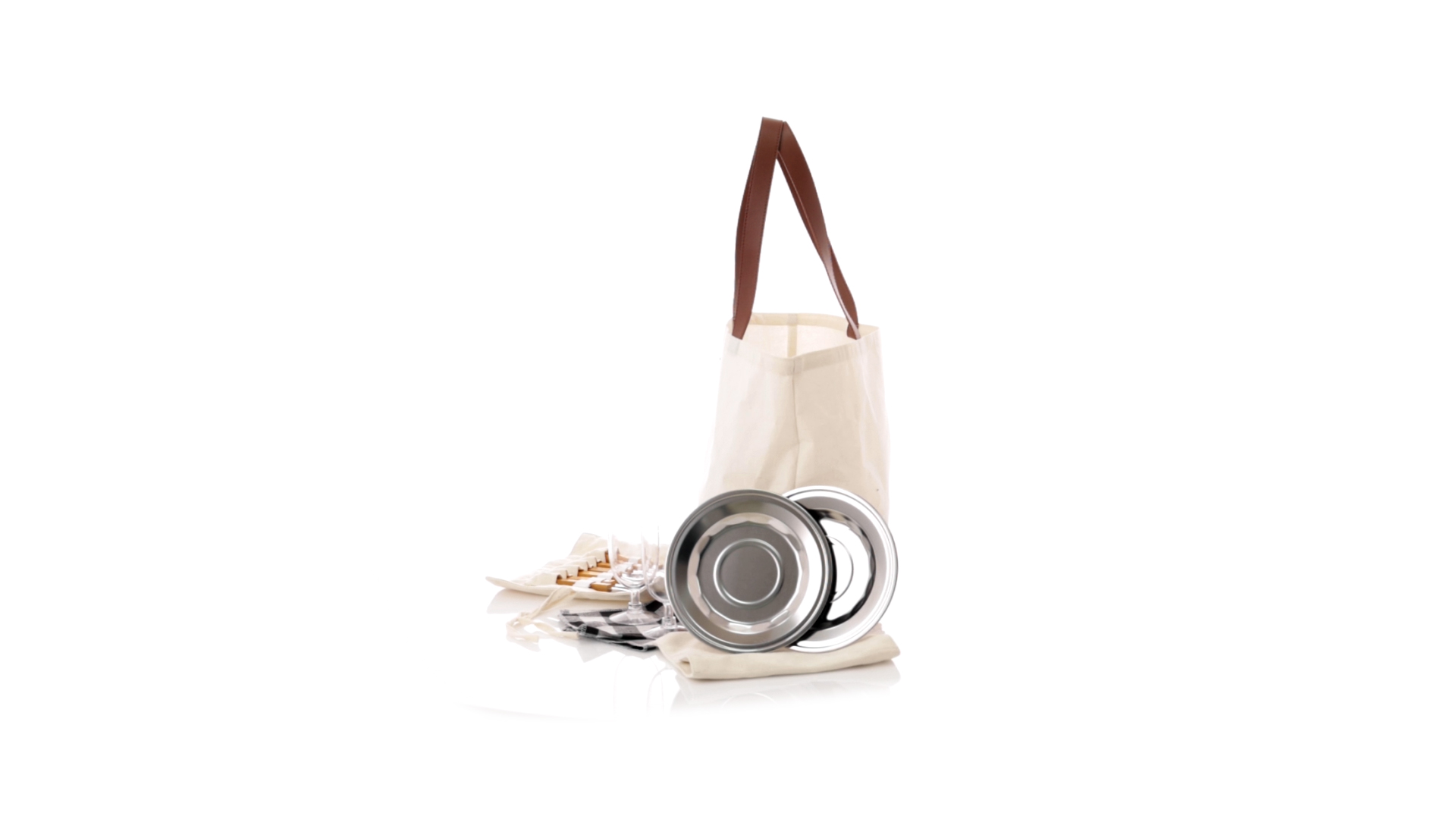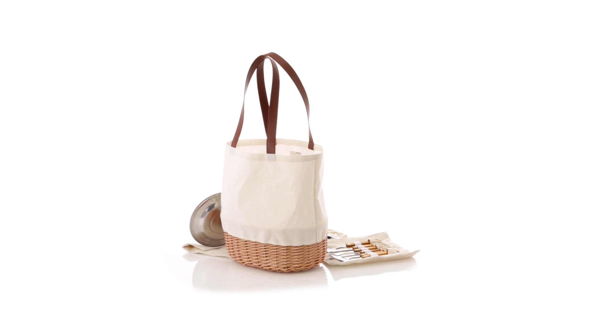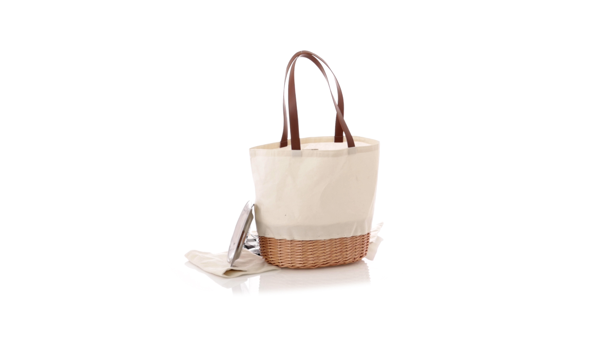 Werten Sie den Stil Ihres Picknicks mit diesem schicken Retro-Korb auf. Hergestellt aus Korbgeflecht und Baumwolle in natürlicher Ausführung, mit einem stabilen Tragegriff aus PU-Leder. Konzipiert für 2 Personen, inklusive 2 Gläser, 2 Messer, 2 Löffel, 2 Gabeln, 2 Schüsseln und 2 Stoffservietten. Präsentiert in einer einzelnen recycelten Tasche.