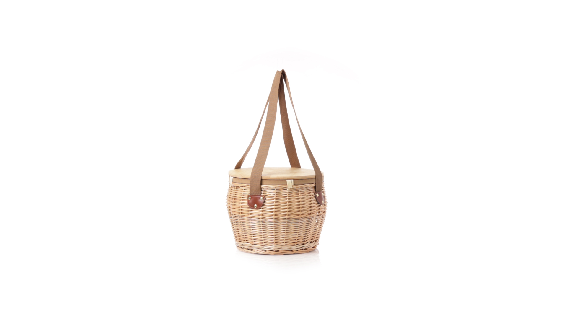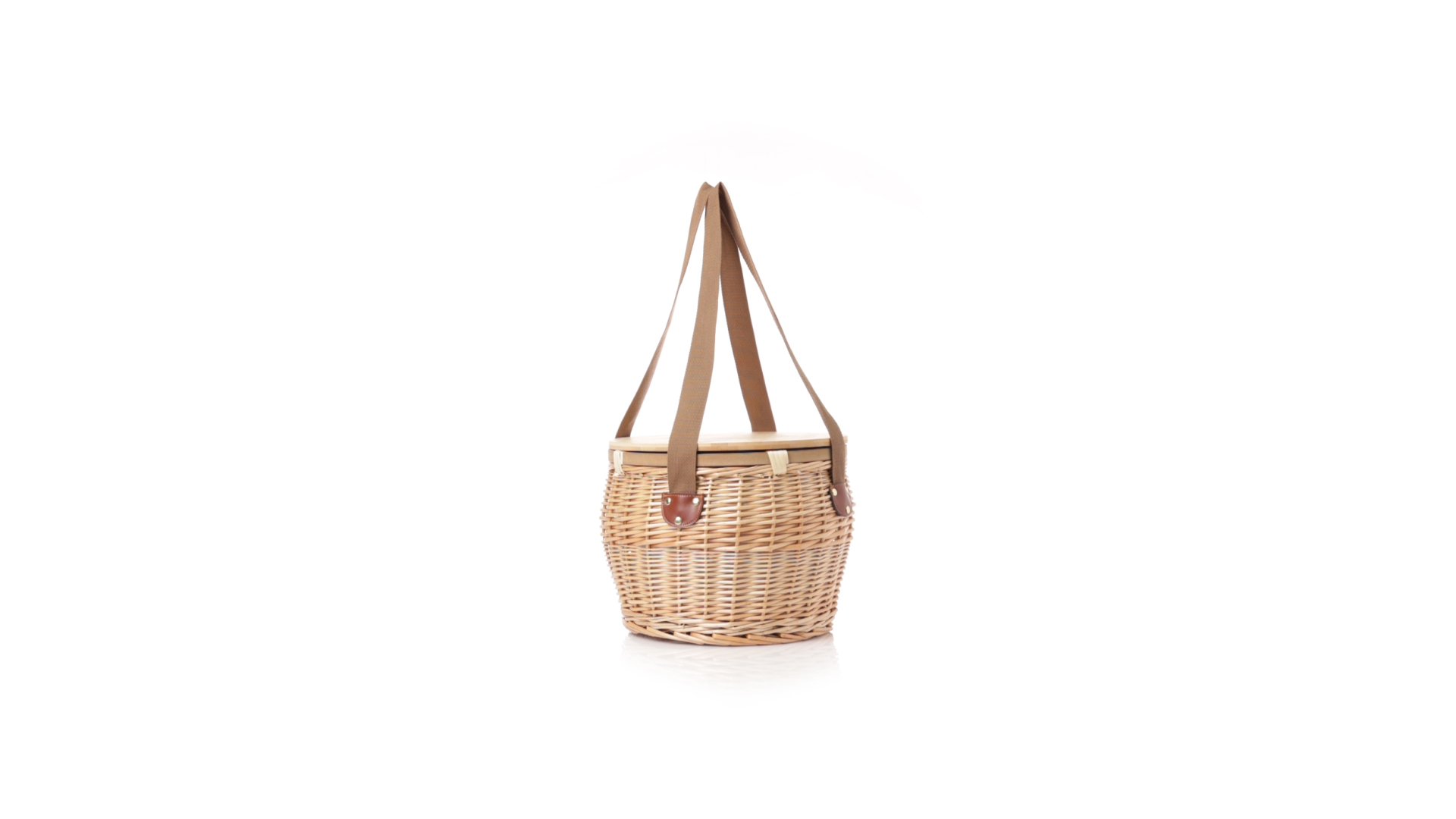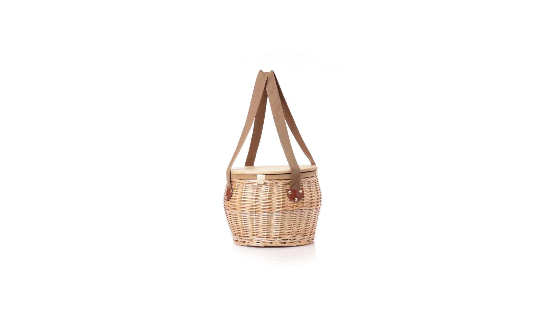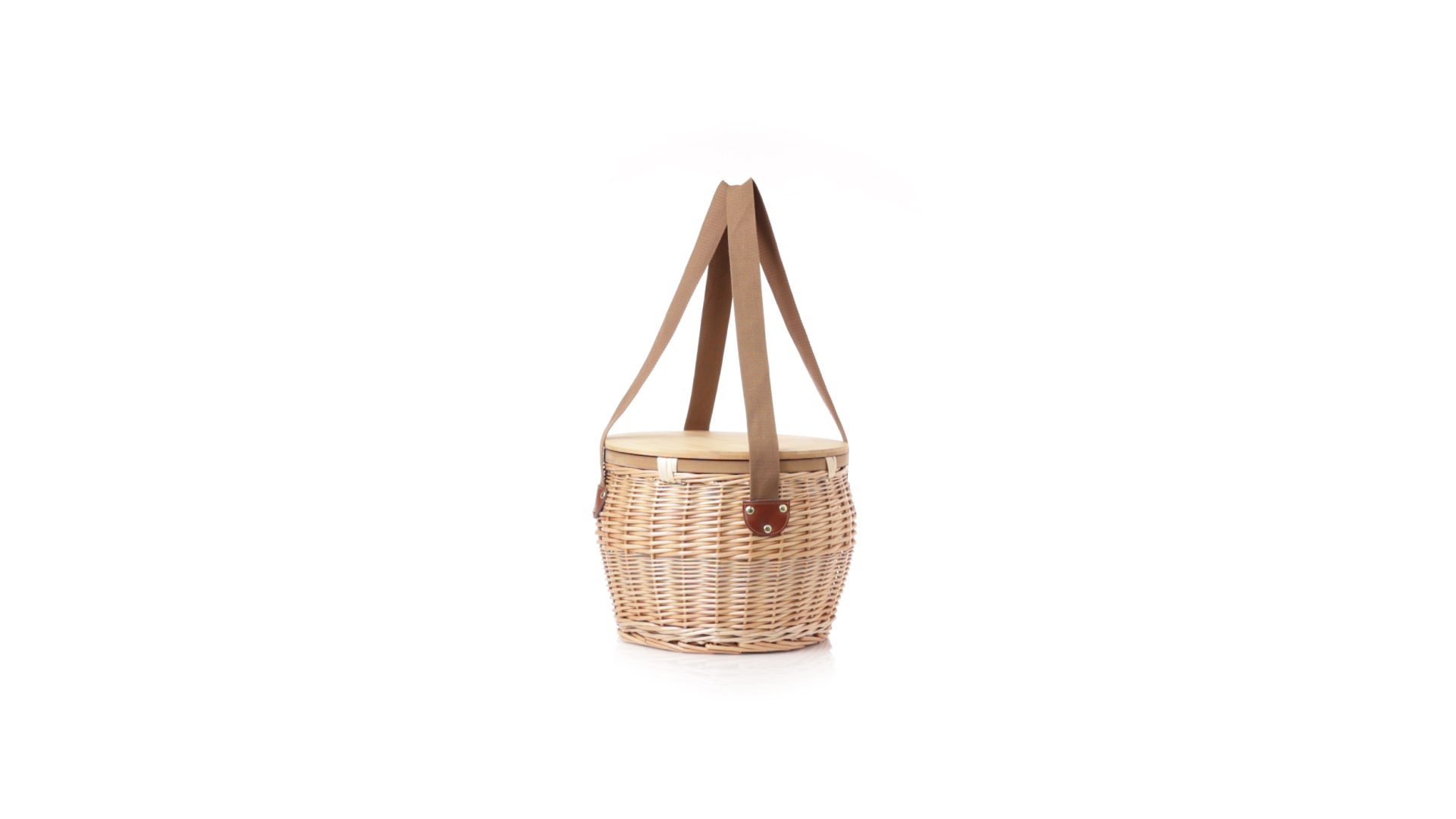 Bringen Sie Stil in Ihre Picknicks mit diesem coolen Retro-Kühlkorb. Aus naturfarbenem Weidengeflecht, mit braunem Schulterriemen. Stabiler Bambusdeckel/-tisch und isothermischer Aluminium-Innenraum.