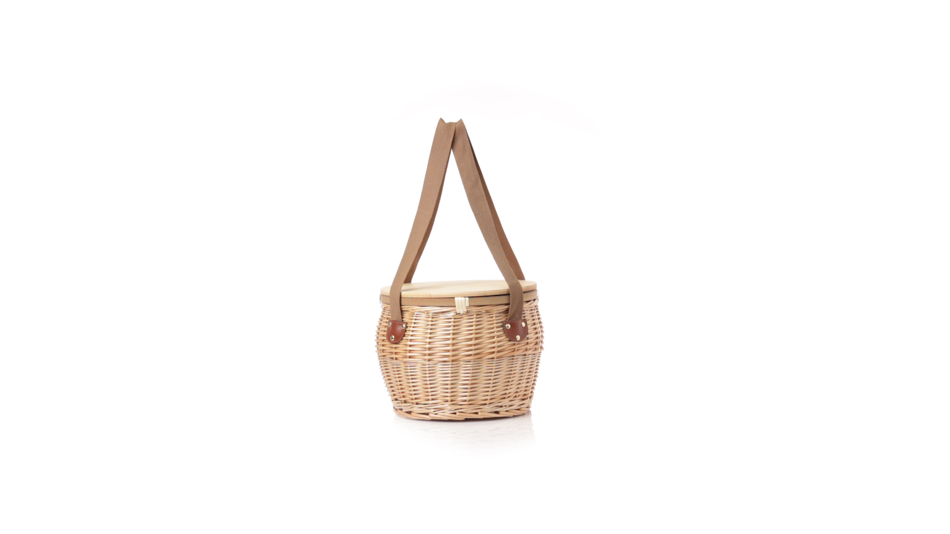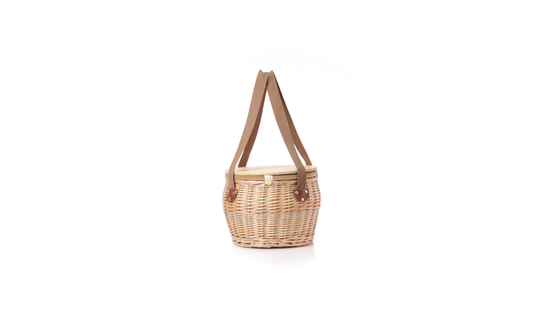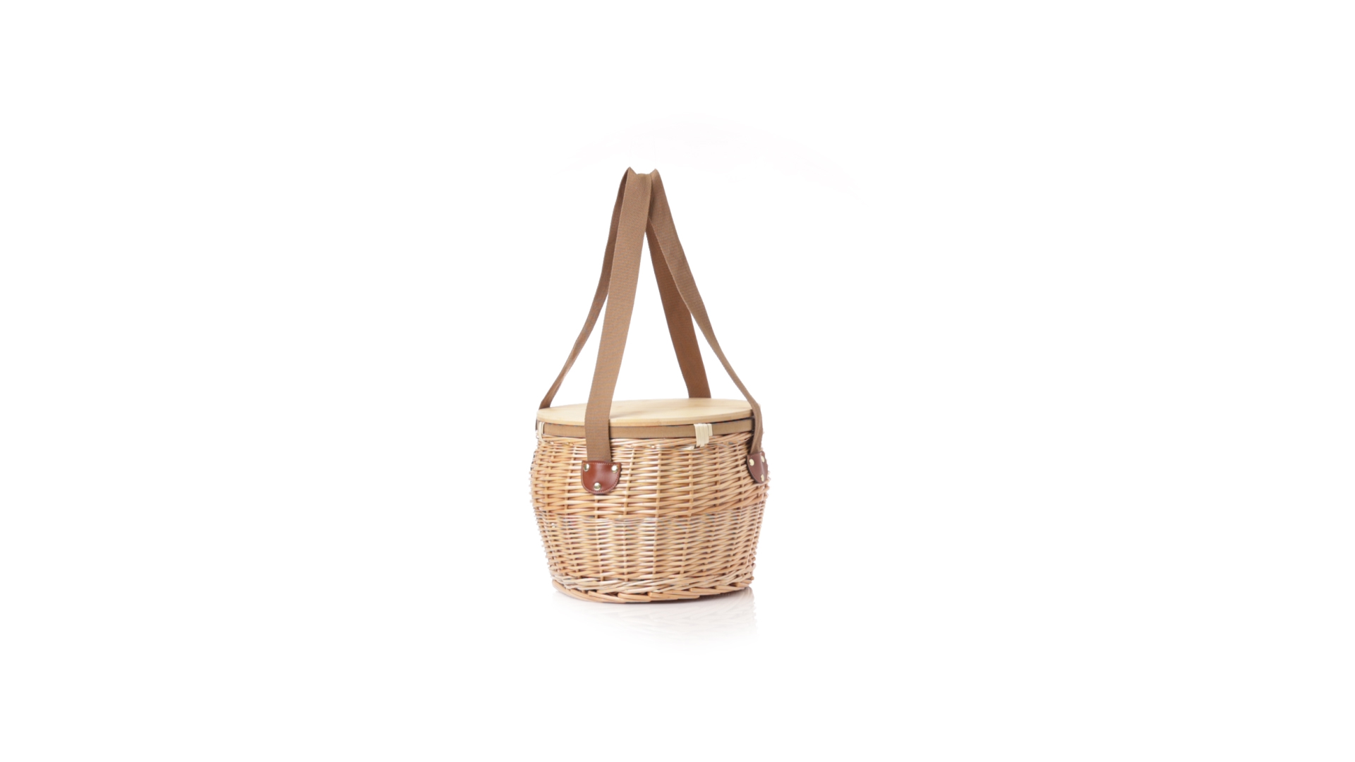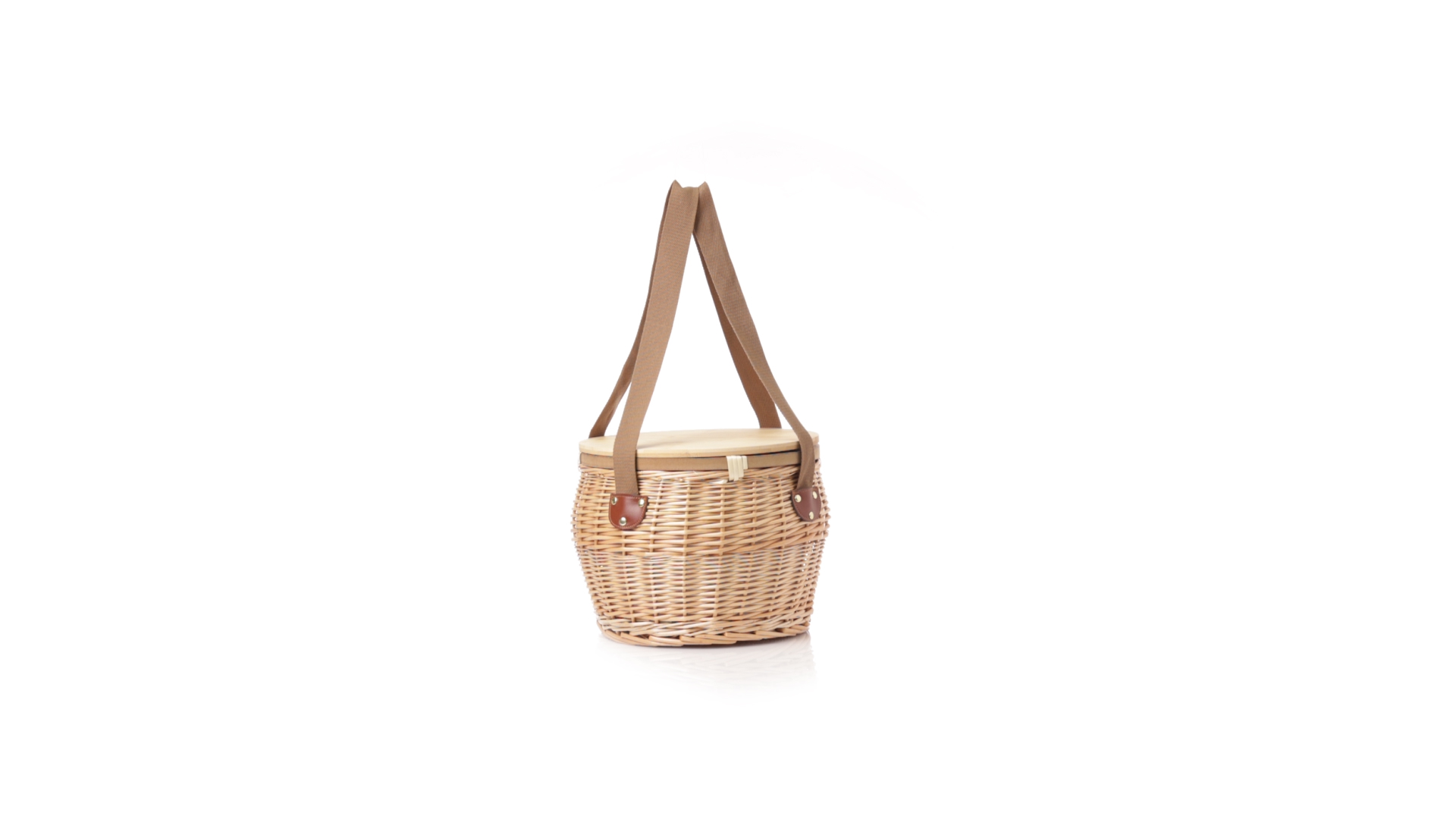 Bringen Sie Stil in Ihre Picknicks mit diesem coolen Retro-Kühlkorb. Aus naturfarbenem Weidengeflecht, mit braunem Schulterriemen. Stabiler Bambusdeckel/-tisch und isothermischer Aluminium-Innenraum.