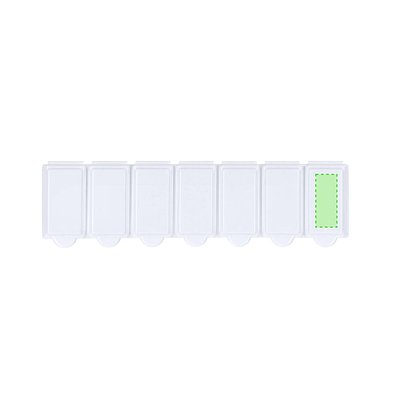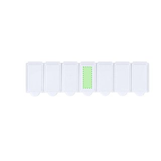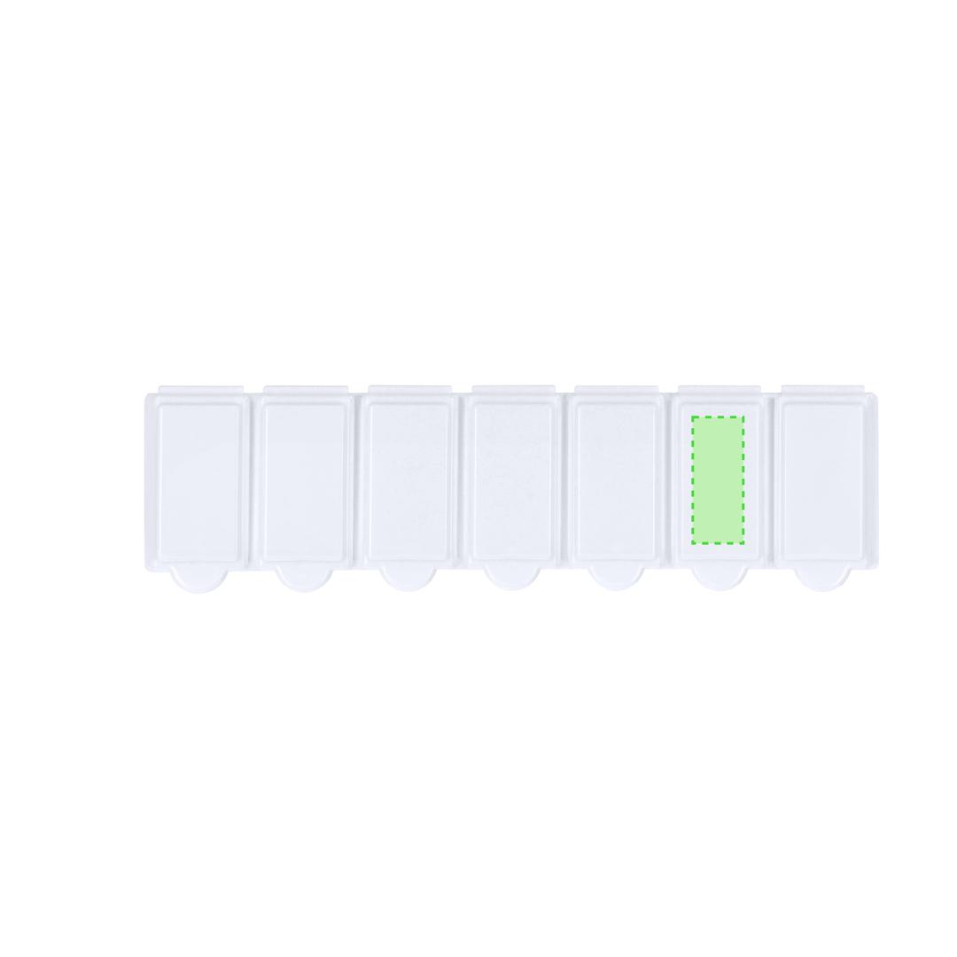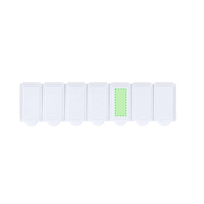 Wöchentlicher Pillenbehälter aus widerstandsfähigem PP in solider weisser Ausführung. Enthält 7 einzelne Fächer mit Sicherheitsverschluss. BPA-frei.
