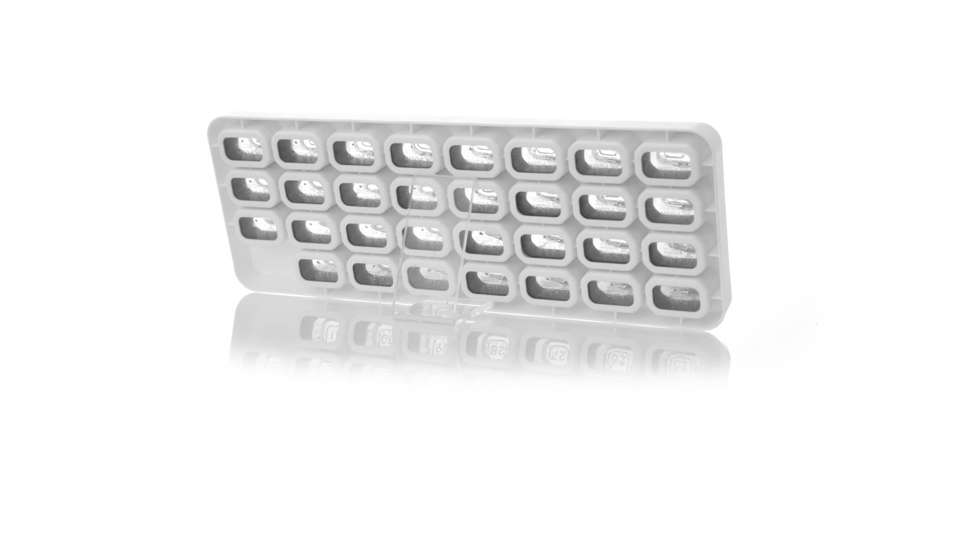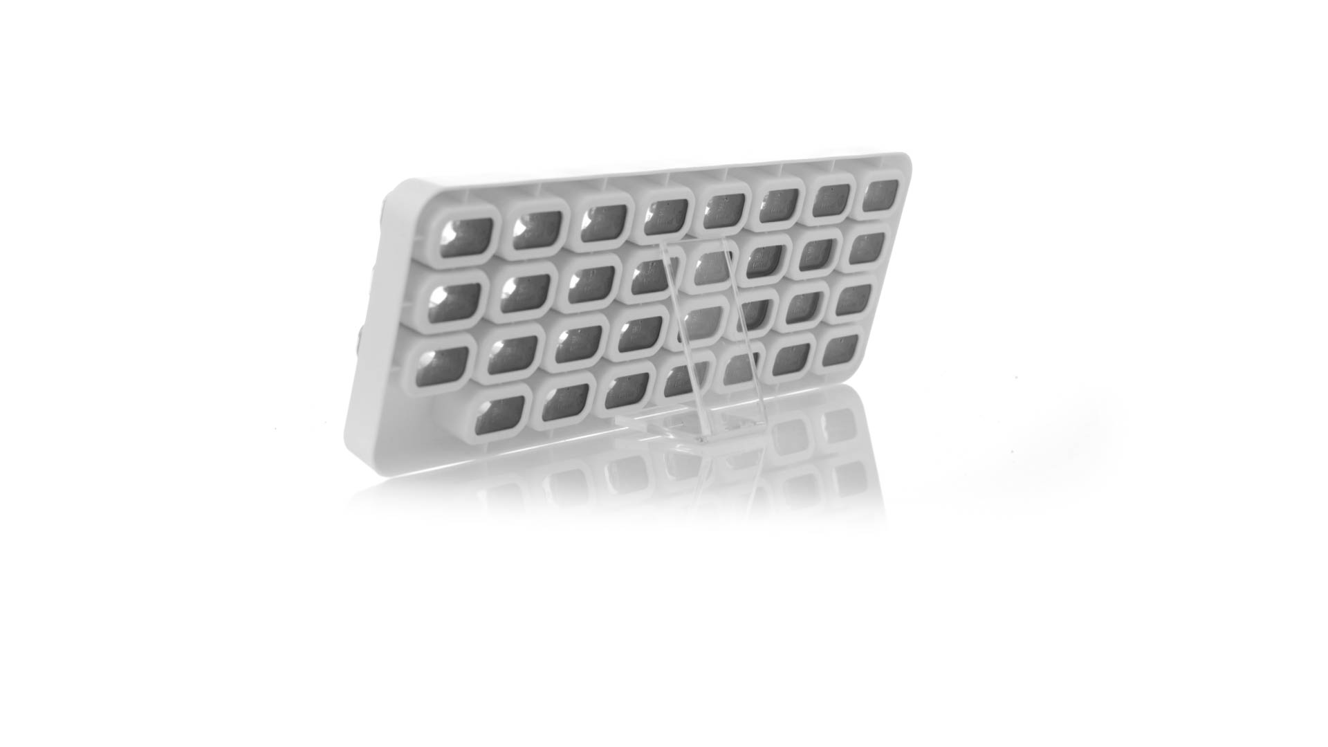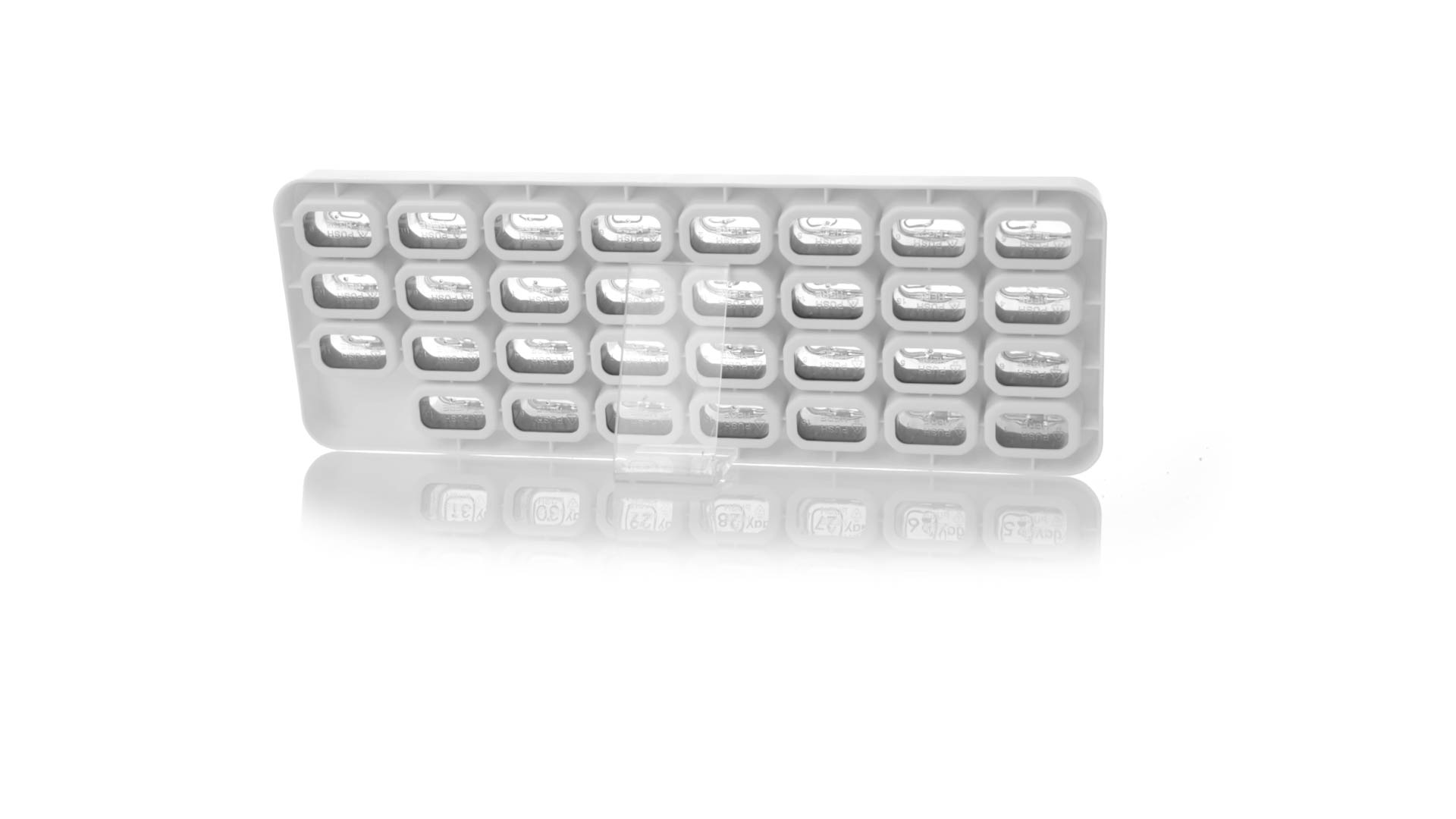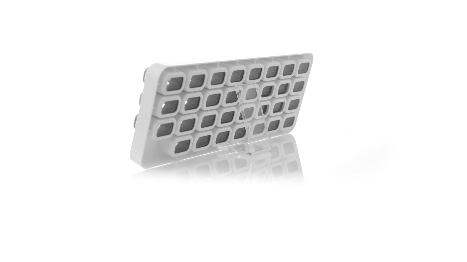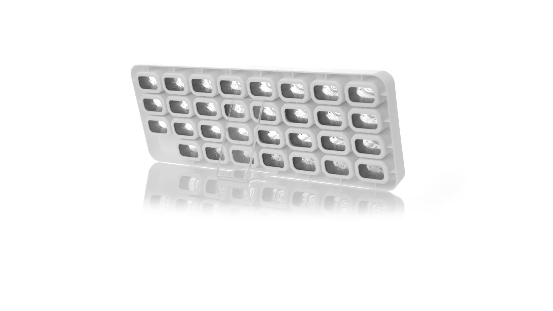 Original pastillero mensual, hergestellt aus widerstandsfähigem PP, mit 31 unabhängigen Behältern und Extras, um alle am Tag benötigten Pastillas zu schützen. Con base blanca y cajas greys impresas con el day del mes. Präsentiert in einer individuellen Tasche.
