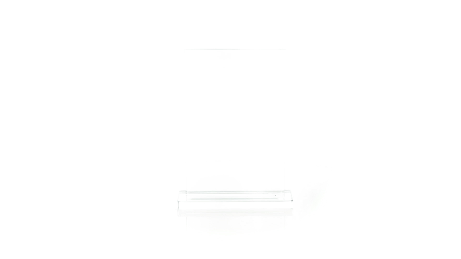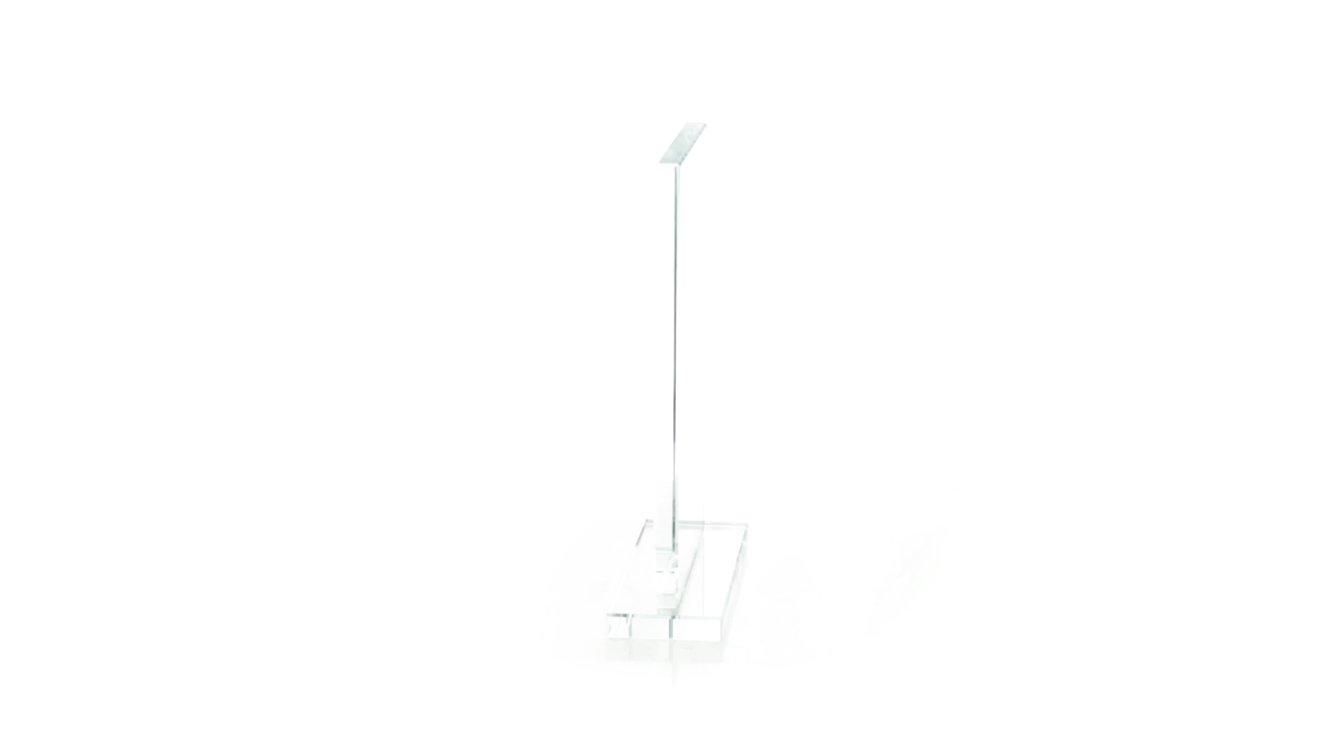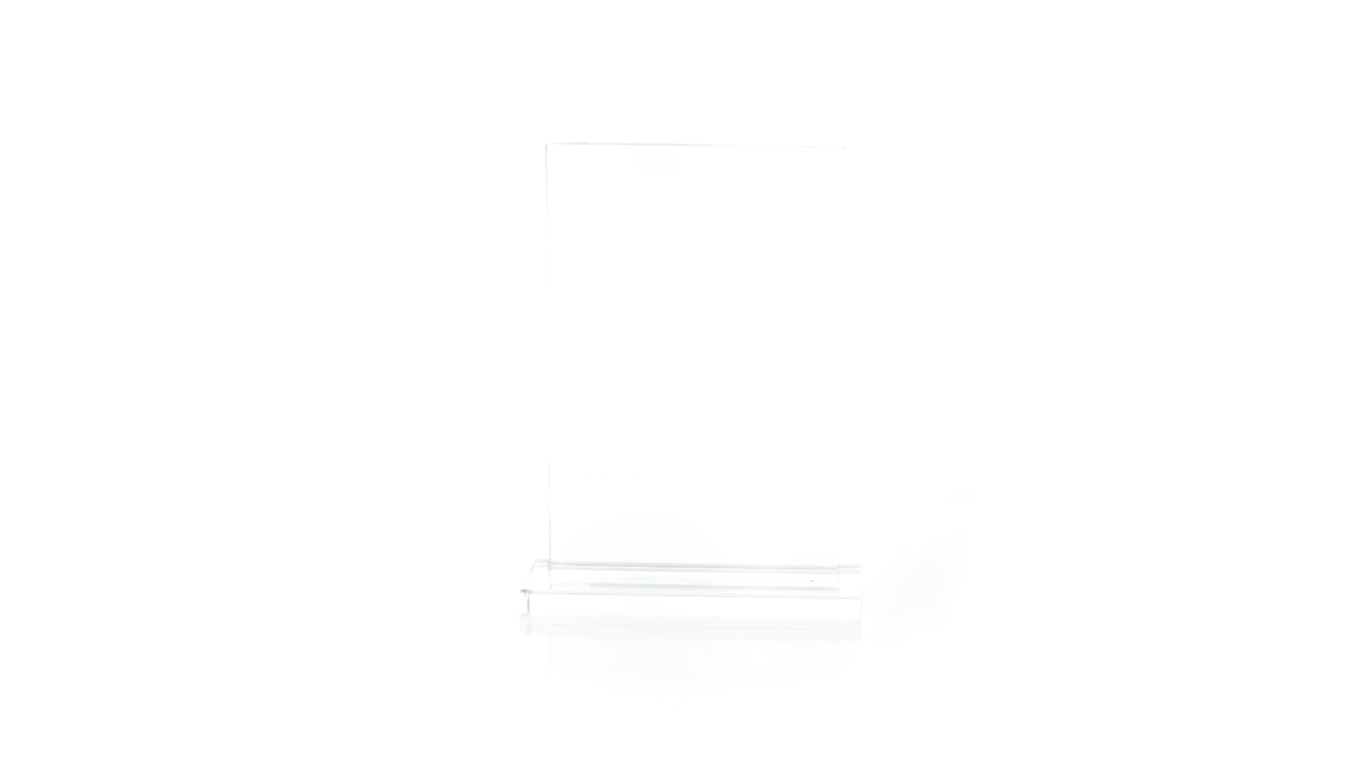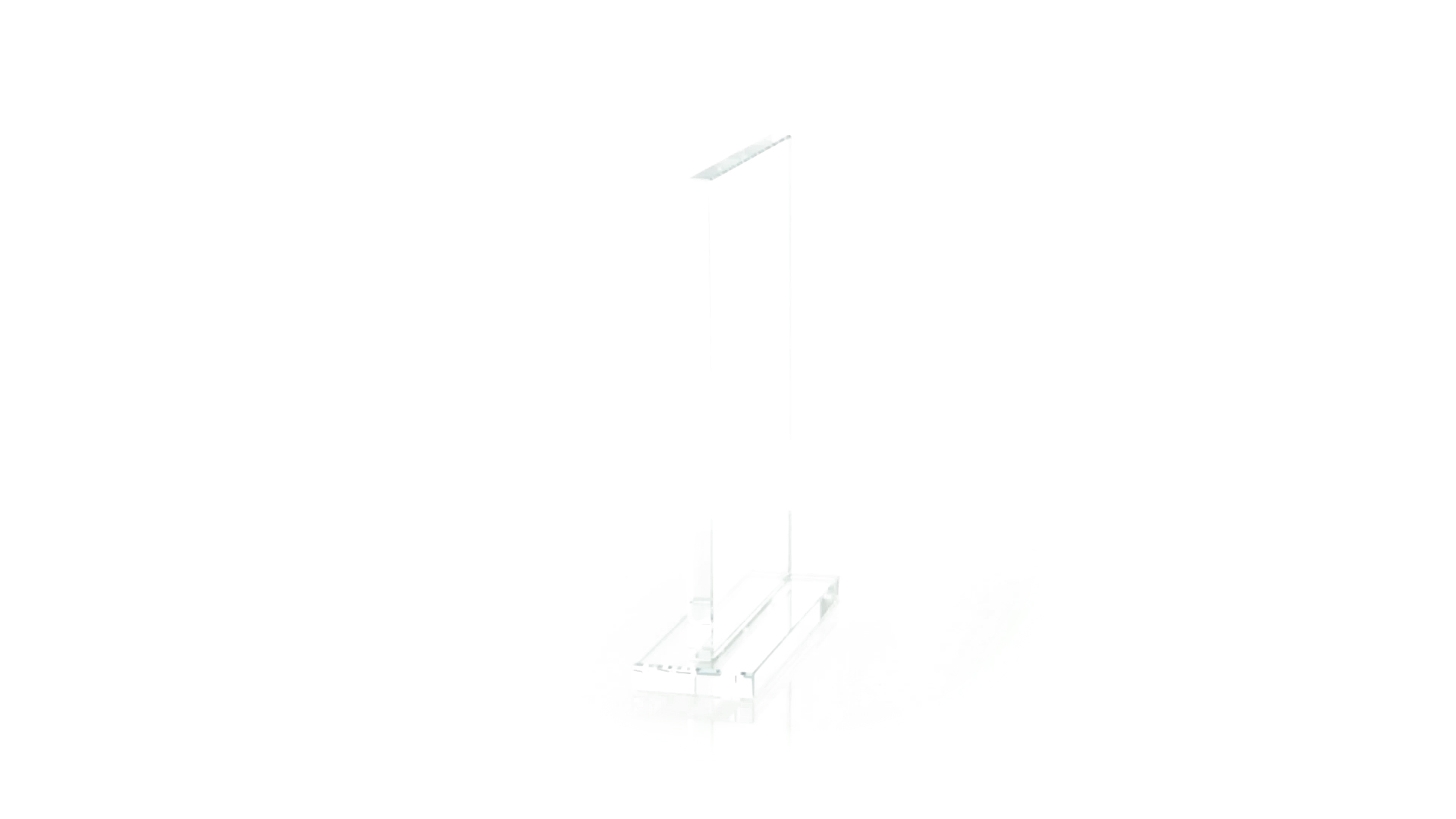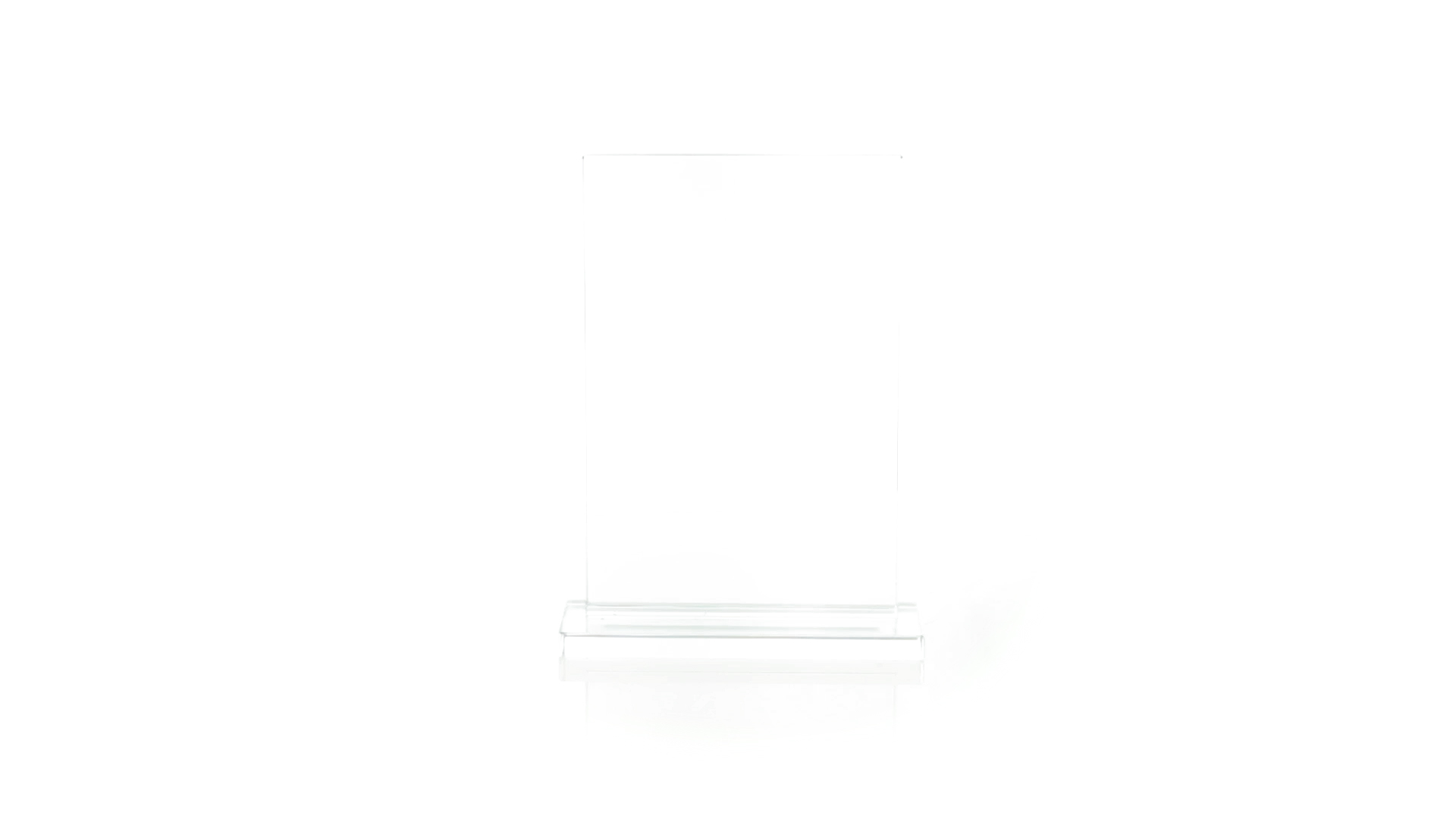 Trophäe aus dickem Glas mit elegantem rechteckigem Design und robustem Standbein. Speziell für den Laserdruck entwickelt. Präsentiert in einem individuellen Schutzcase.