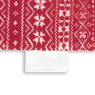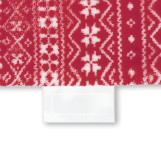 Polardecke (240 g/m²) mit samtiger Oberfläche und Anti-Pilling-Behandlung. Enthält einen mit Kordel verschliessbaren Beutel mit Weihnachtsmotiven aus demselben Material, Geliefert mit Karte zur Veredelung. Decke: 1200 x 1500 mm | Tasche: 310 x 435 mm | Karte: 30 x 50 mm