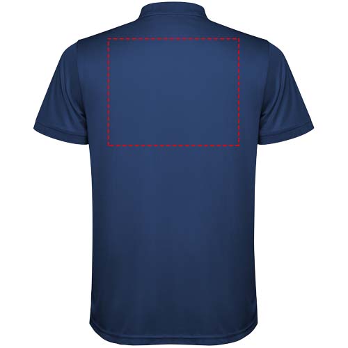 Kurzärmeliges Poloshirt für Herren. Verstärkte und verdeckte Nähte am Innenkragen. 1×1-Rippstrick an Bündchen und Kragen. Seitennähte. Knopfleiste mit 3 Knöpfen und Seitenschlitze.